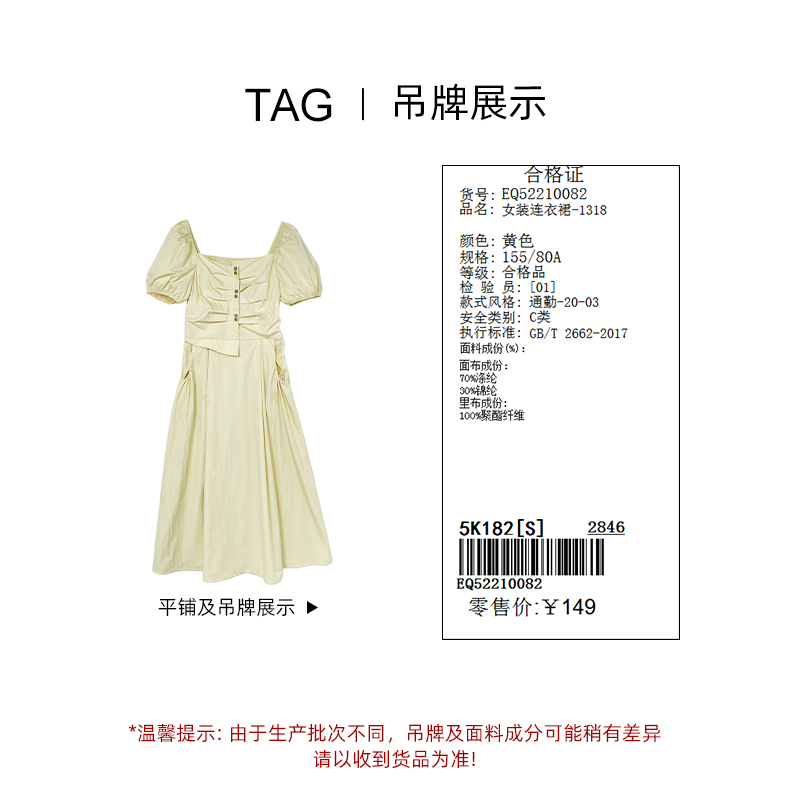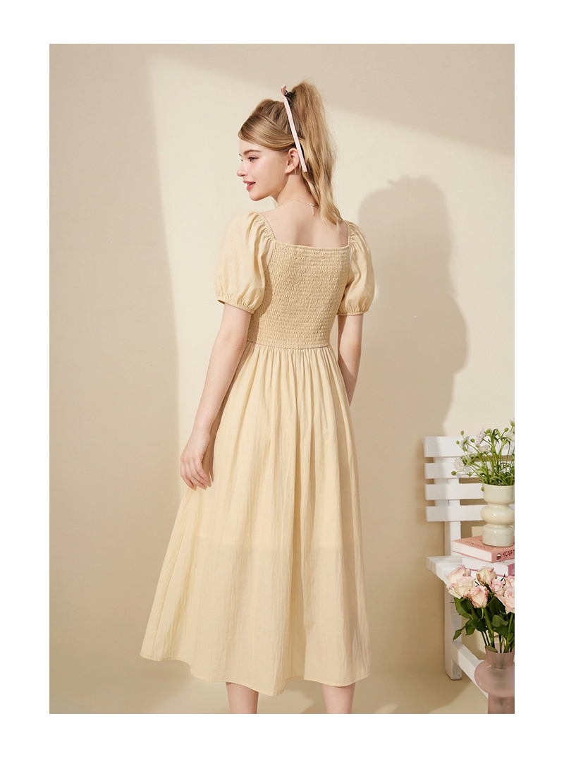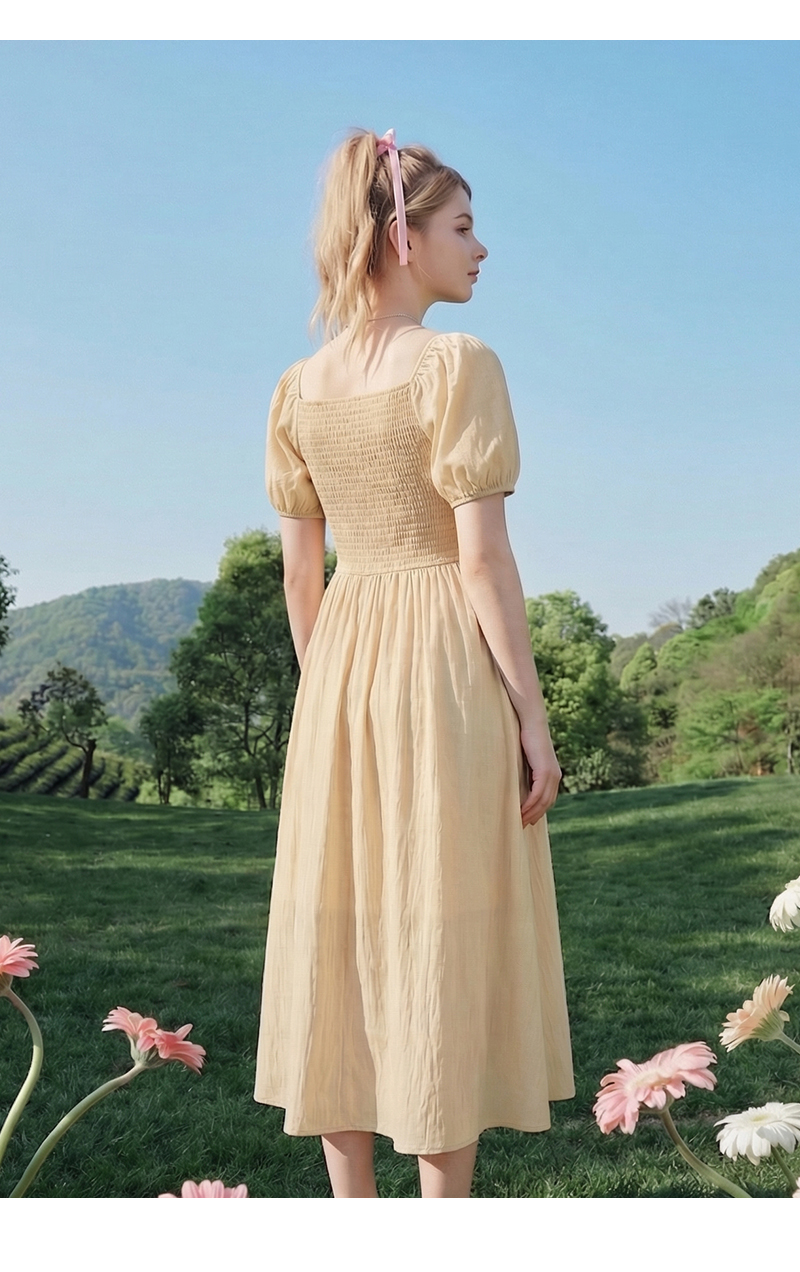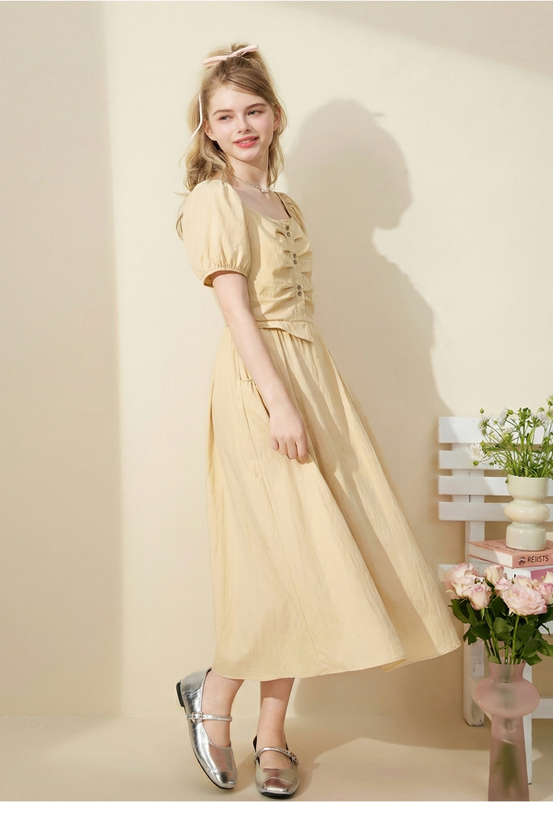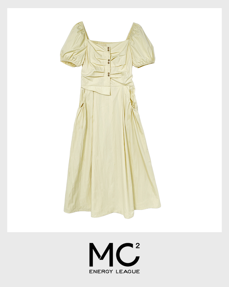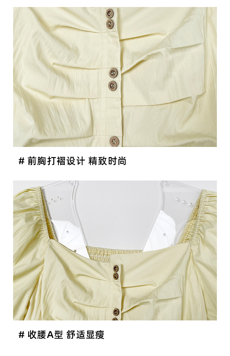 女装方领胸部打褶连衣裙-1318Q5221008