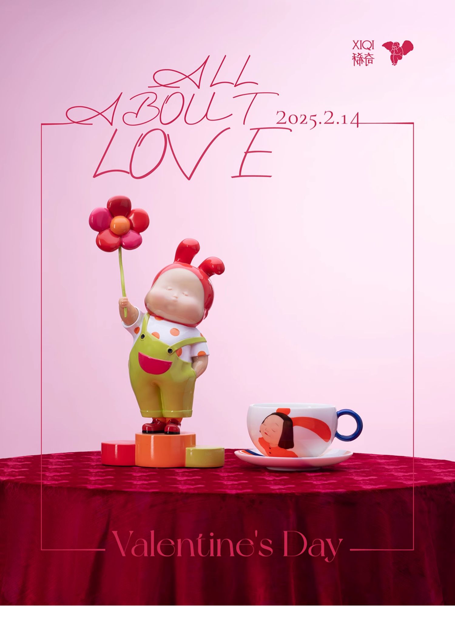 稀奇艺术情人节礼物优惠套组-幸福咖啡杯+送你一朵小红花雕塑艺术摆件(仅限顺丰包邮)