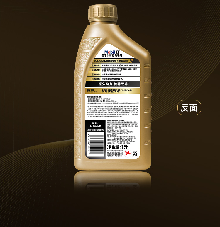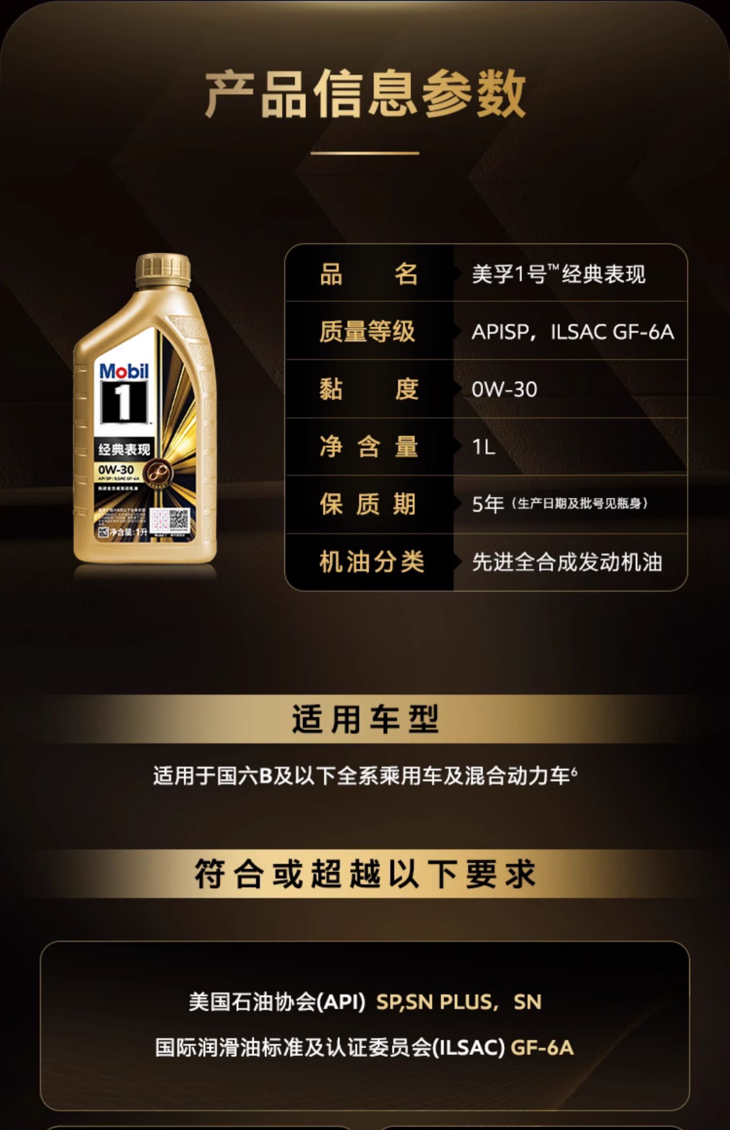 美孚1号经典表现金美孚0W-30 1L API SP ILSAC GF-6A 全合成机油