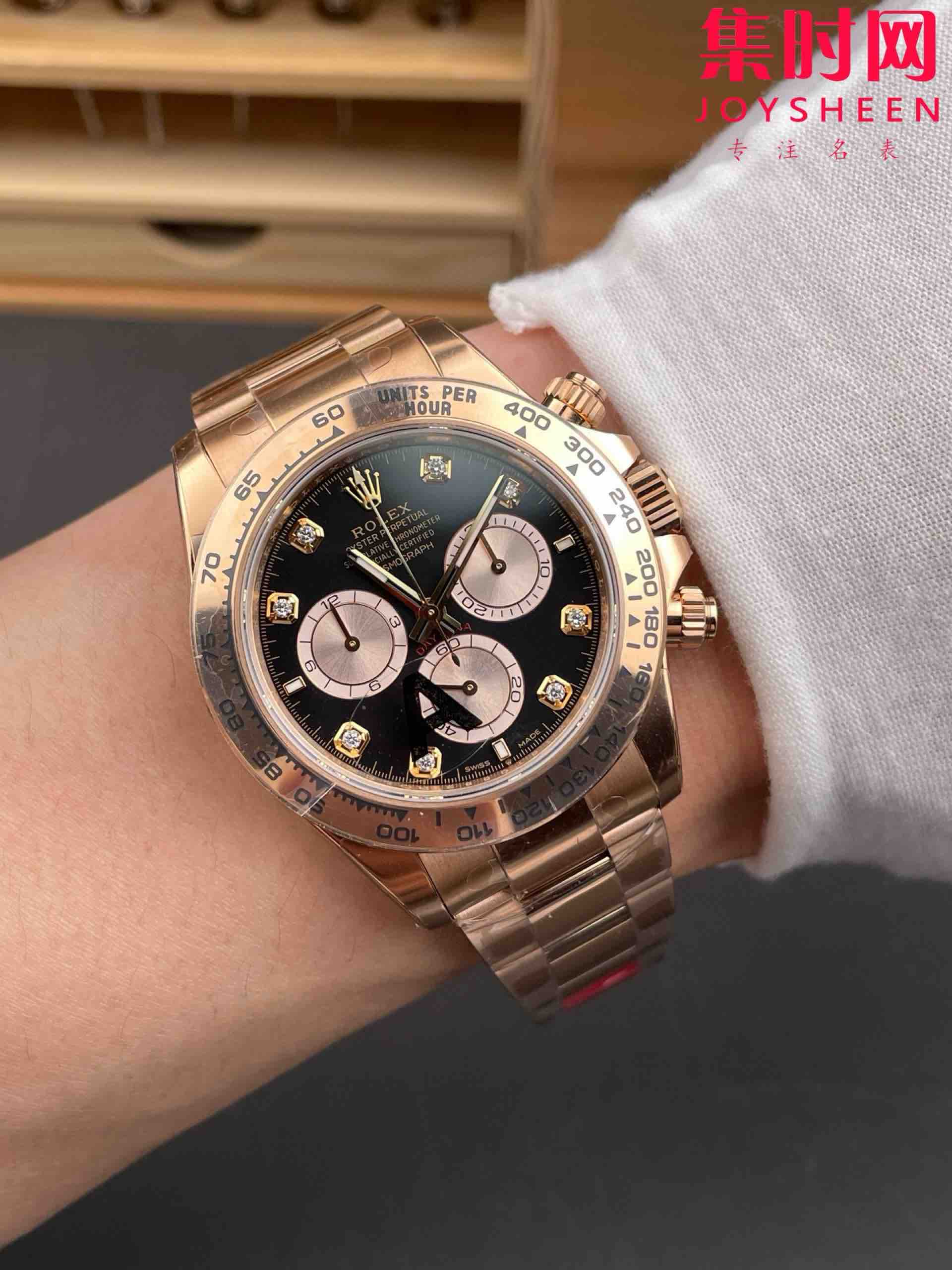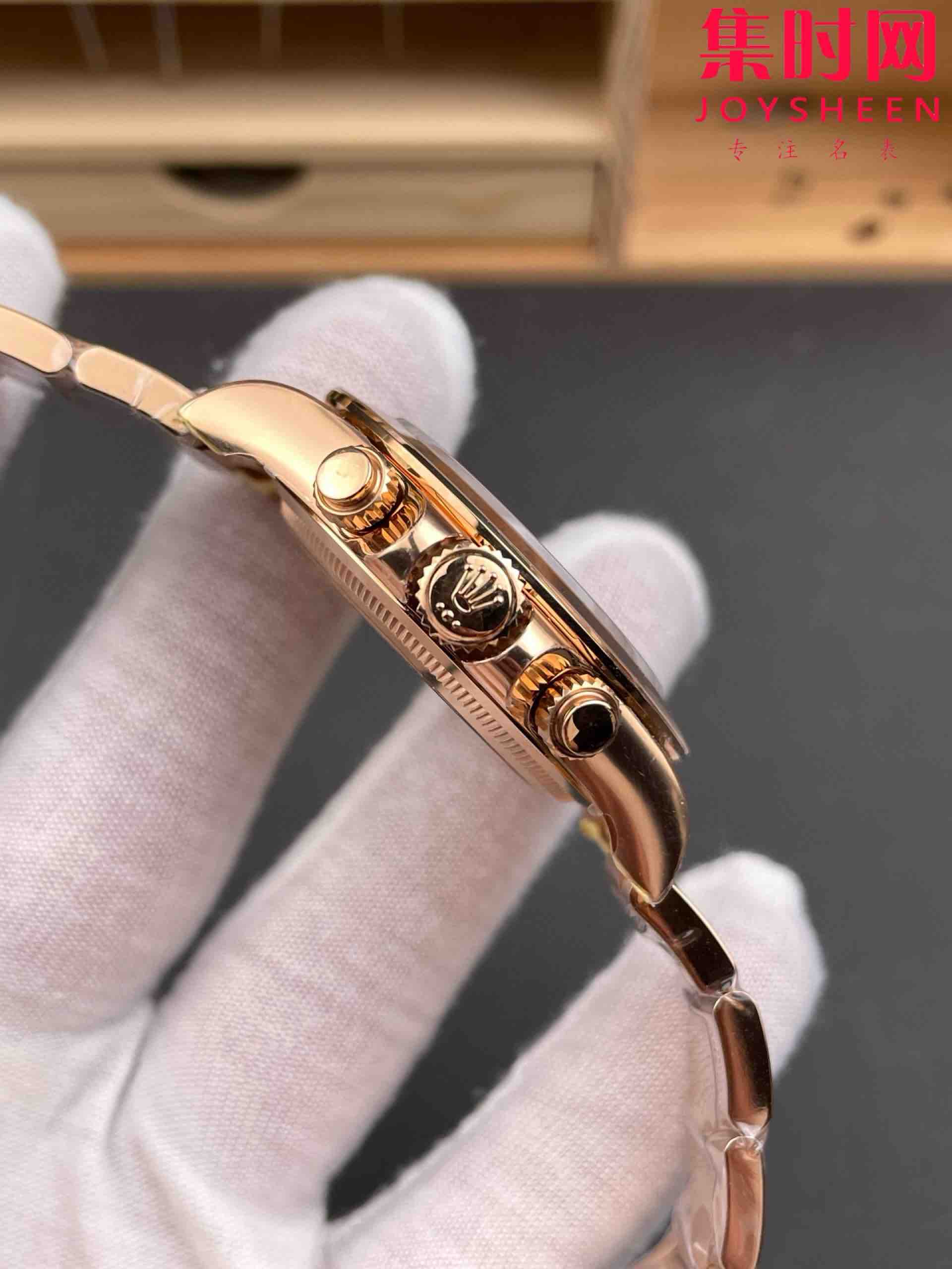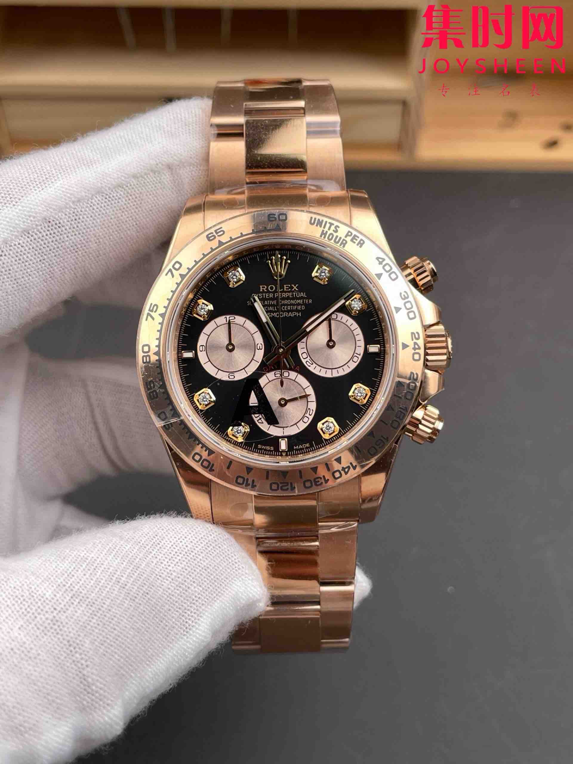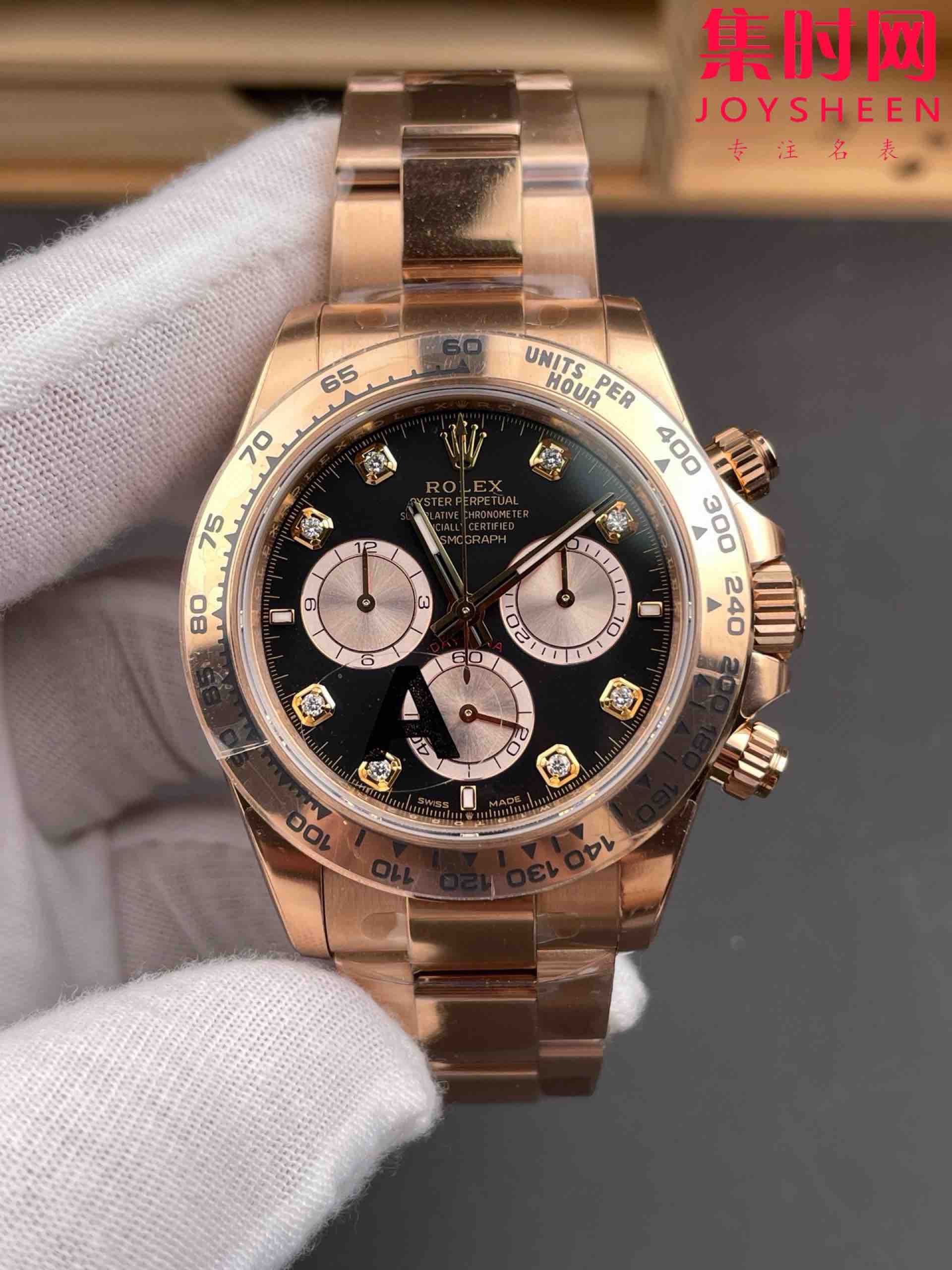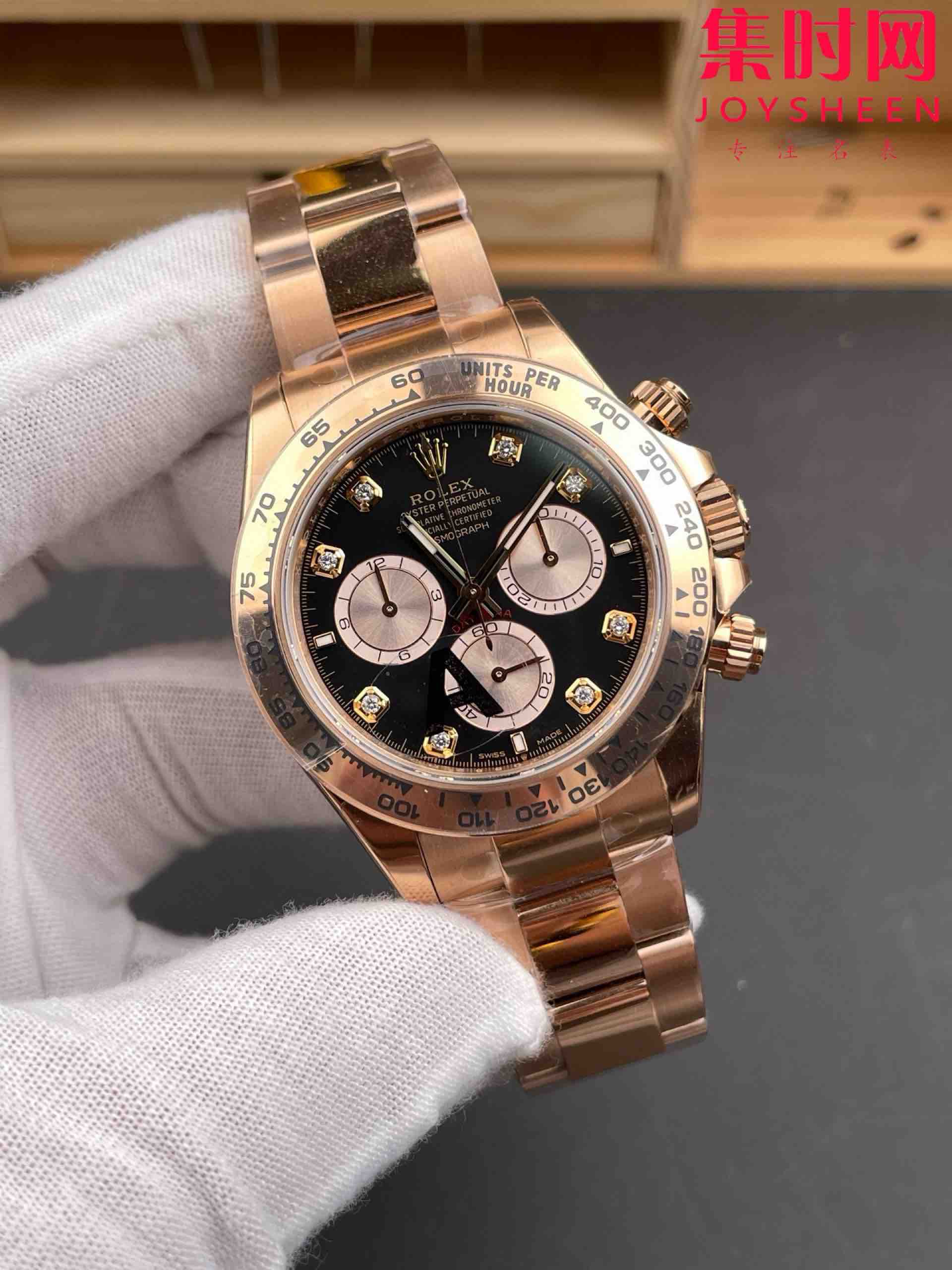 劳力士宇宙计型m126505 VS迪通拿4131配重版 VS配重版全玫金黑盘钻面 新款包边迪通拿 丹东4131一体机 男士腕表 表径40mm