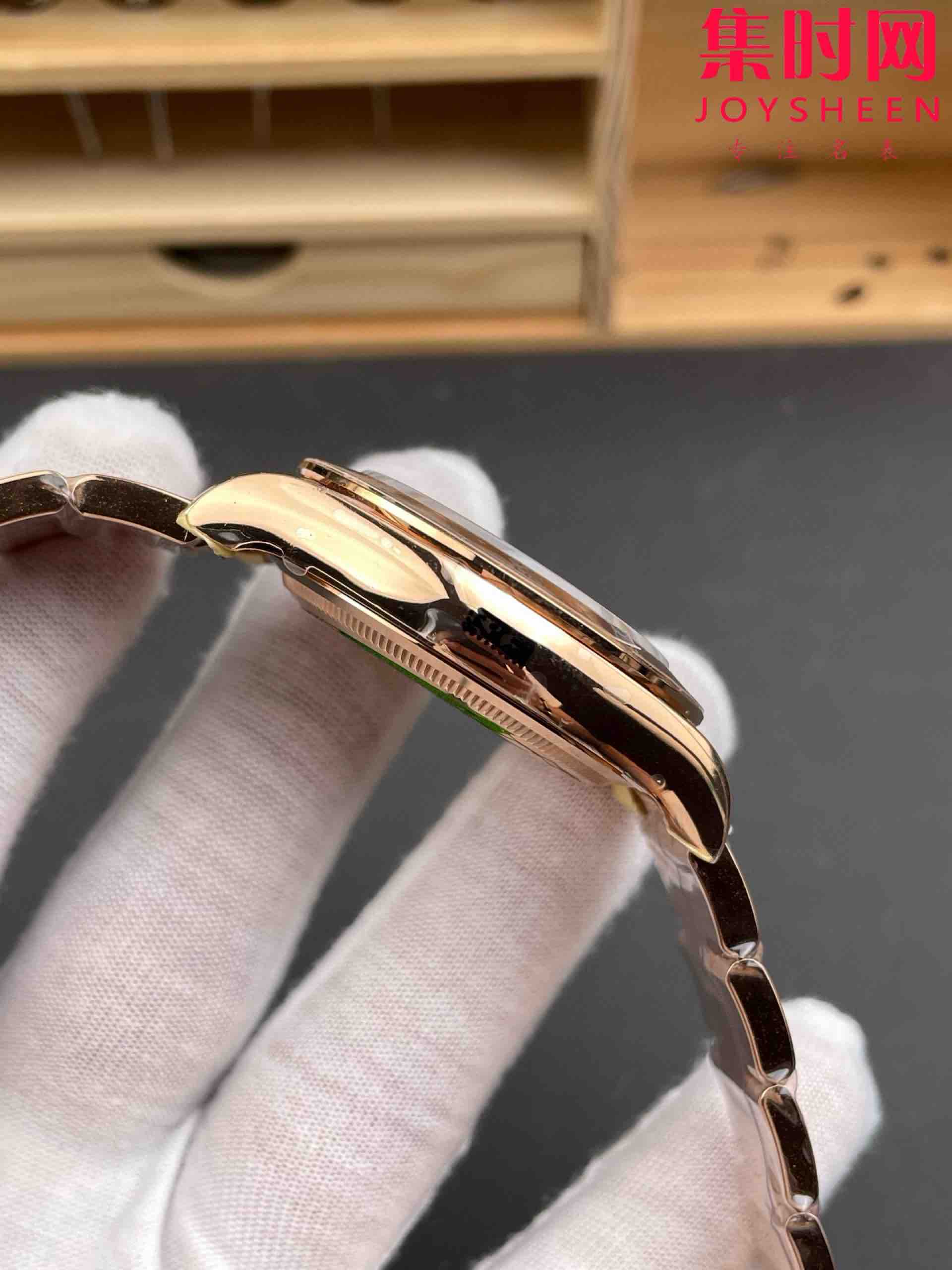 六点位增加皇冠标志,表壳与表带的工艺提升,表耳曲线优化,正品迪通拿的表壳设计以流畅线条著称(如蚝式表壳的狐形表耳)通过强化曲线效果,更接近原版的佩戴舒适度!