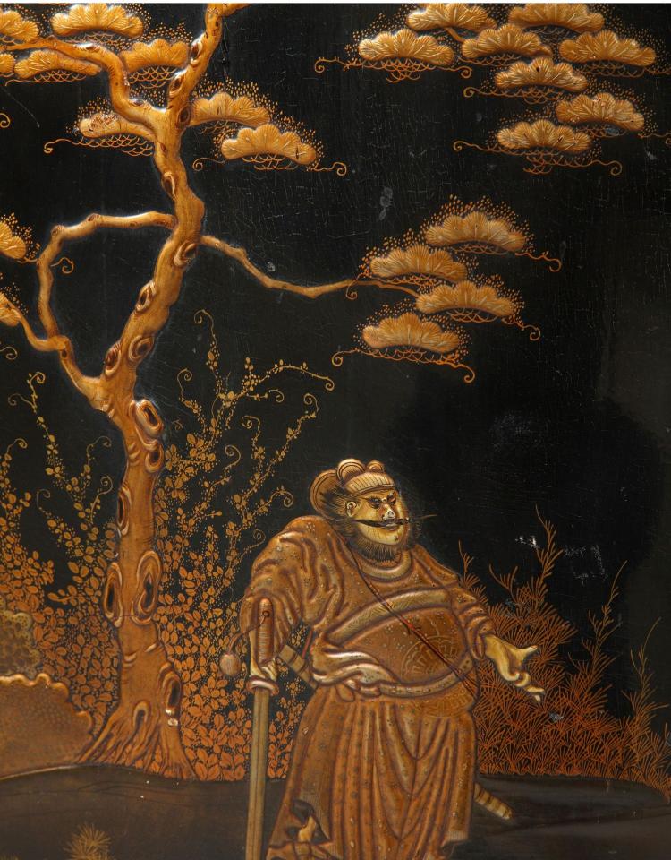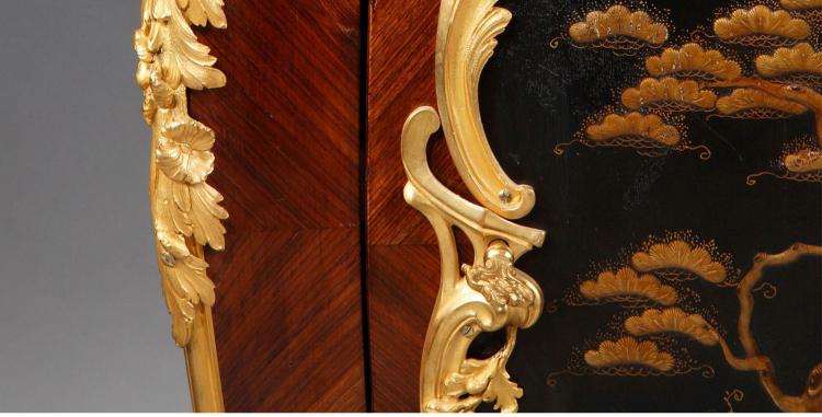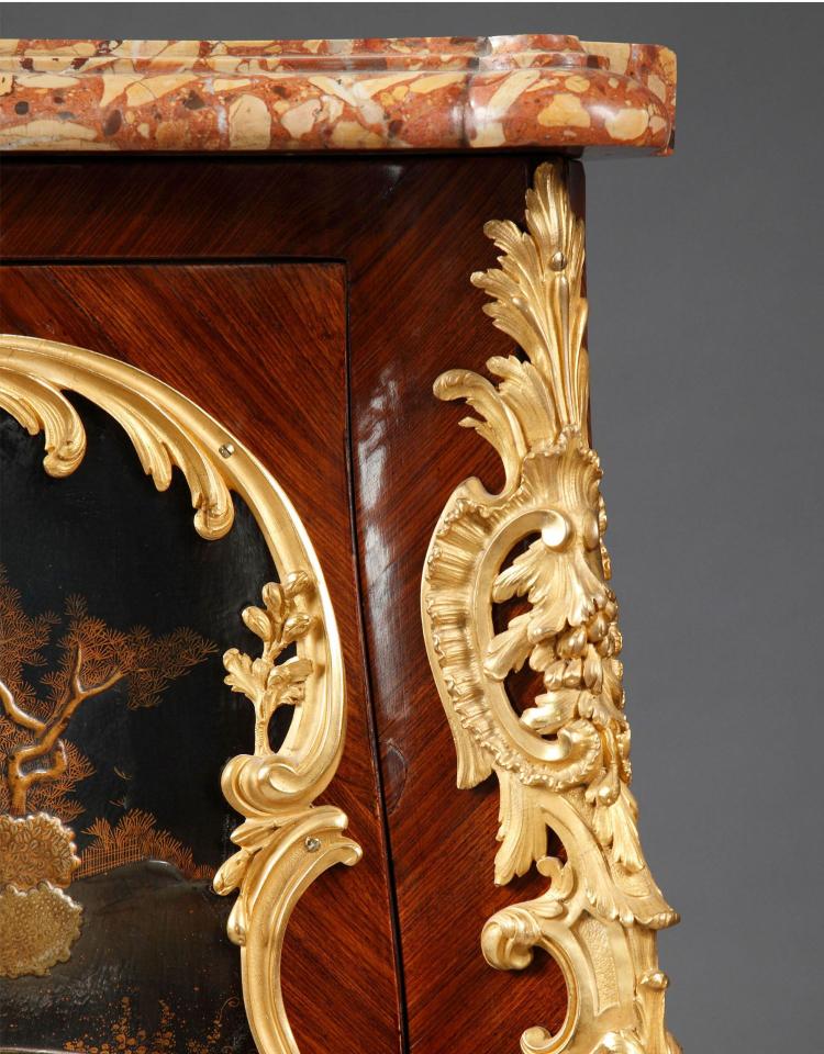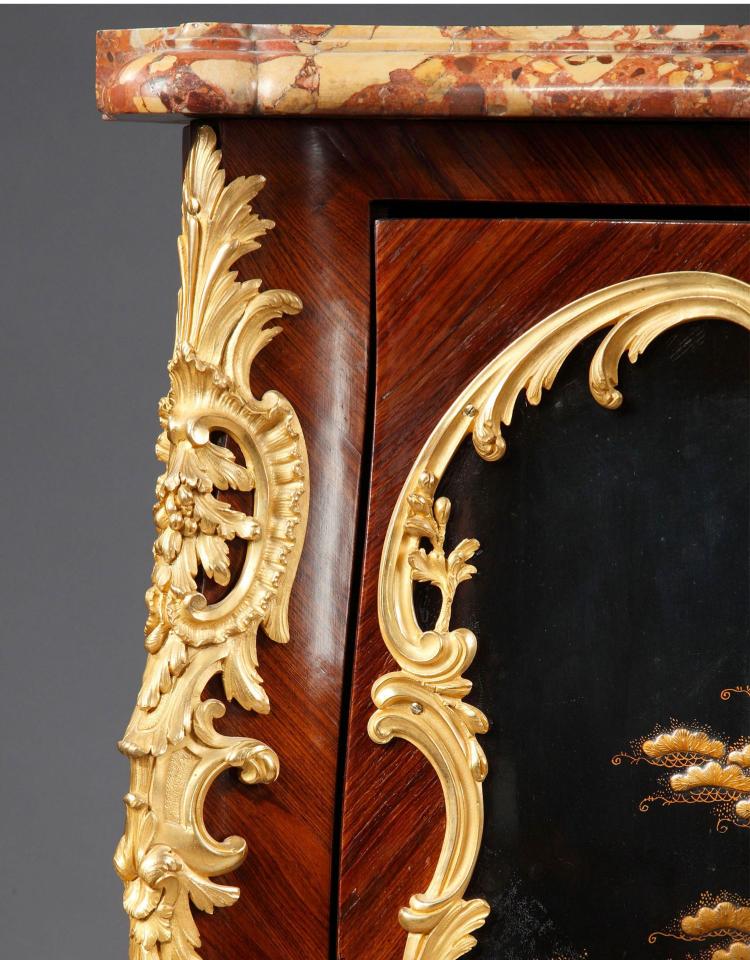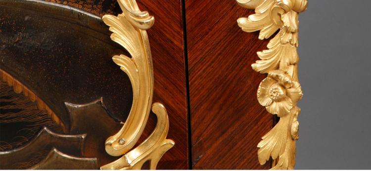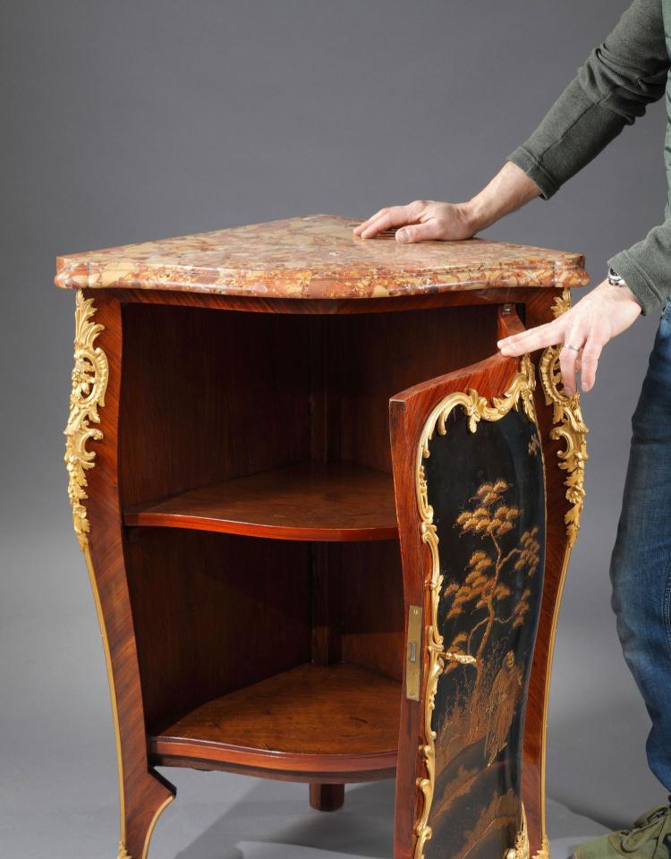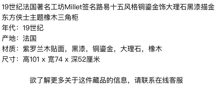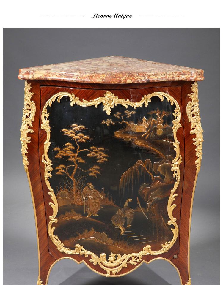 独角鹿西洋古董家具洛可可风铜鎏金大理石黑漆描金橡木三角柜边柜