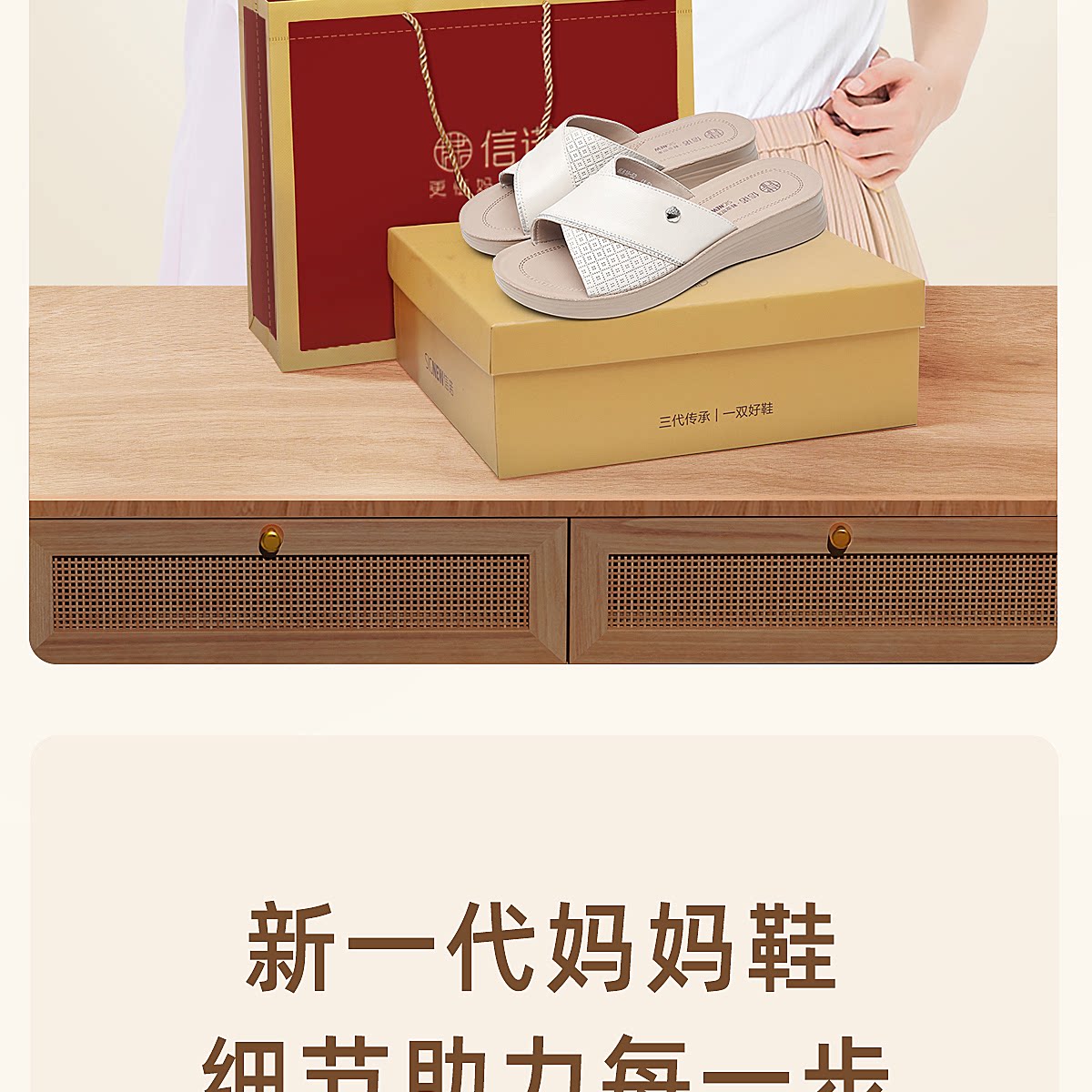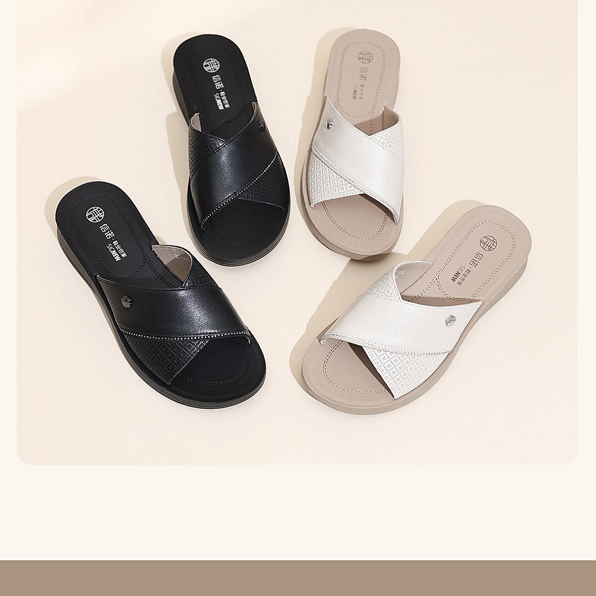 信诺真皮外穿妈妈拖鞋中老年女鞋厚底舒适休闲凉拖鞋2026夏季新款6L618-52