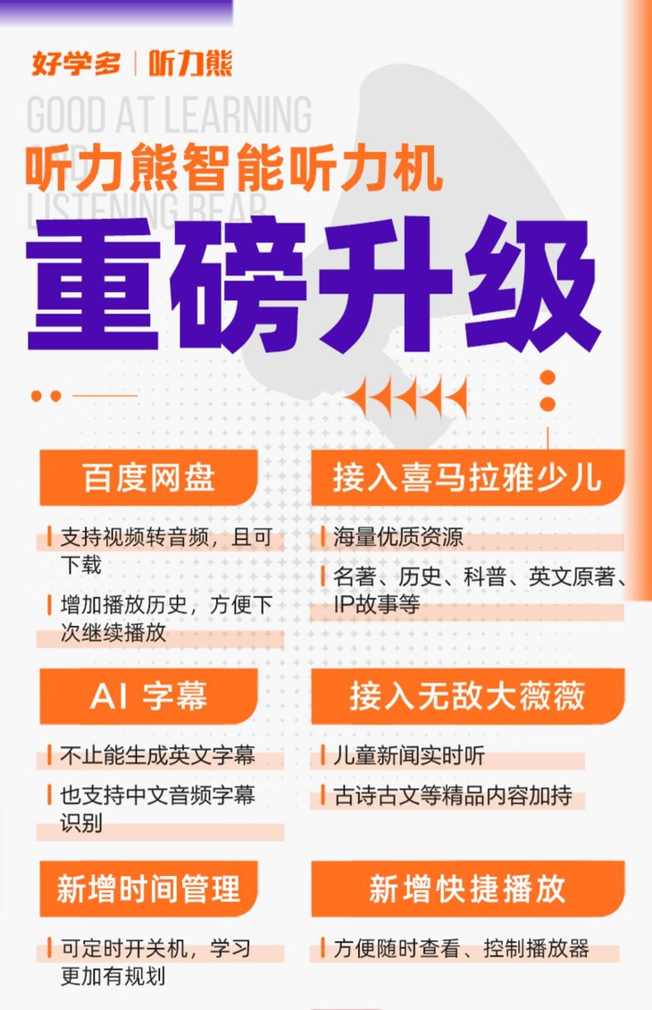 新款听力熊T4 | 自带蓝牙+32G内存+支持网盘下载,赠送近百G分龄分级听力资源