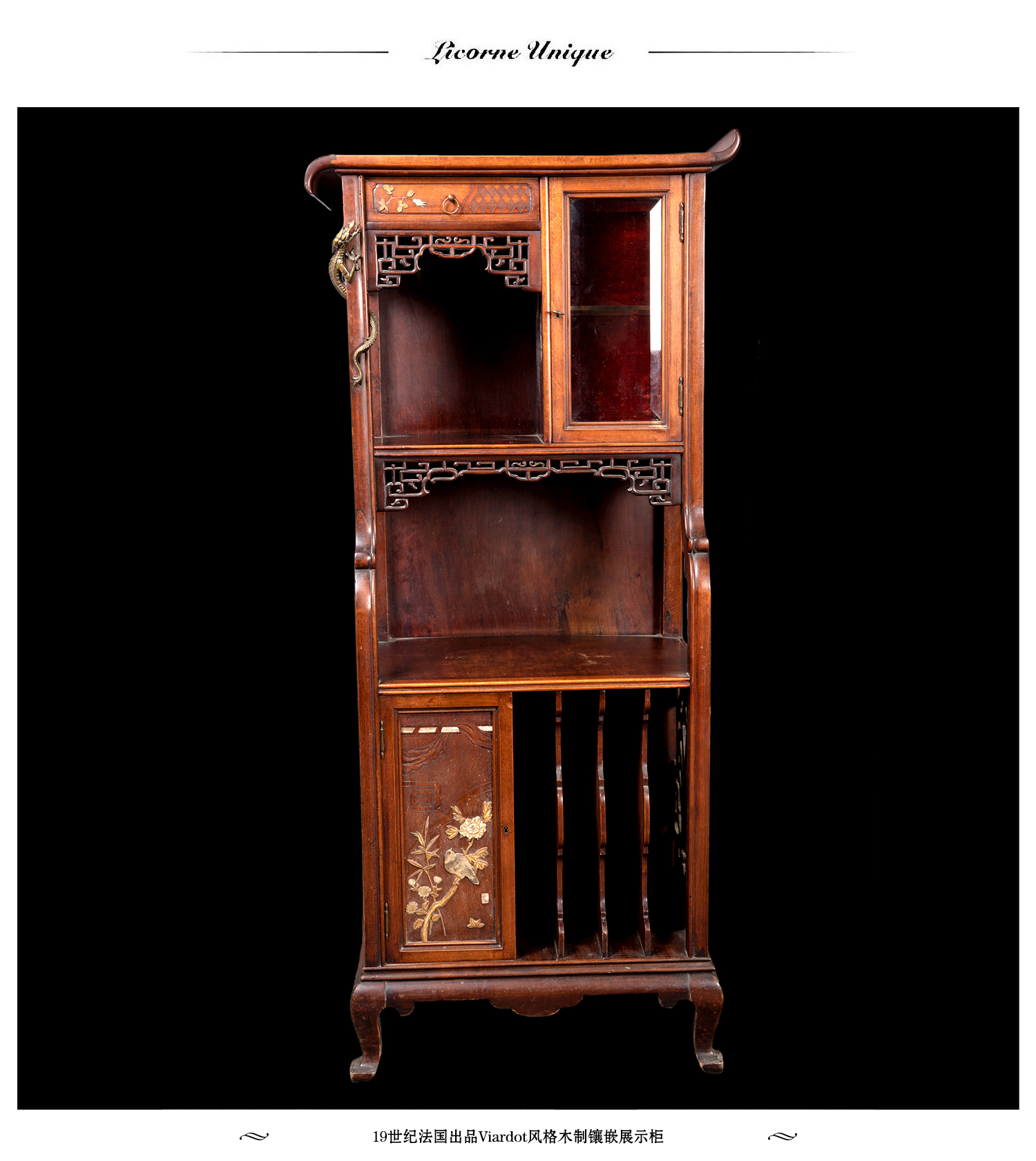独角鹿西洋古董家具19世纪法国出品Viardot风格木制镶嵌展示柜