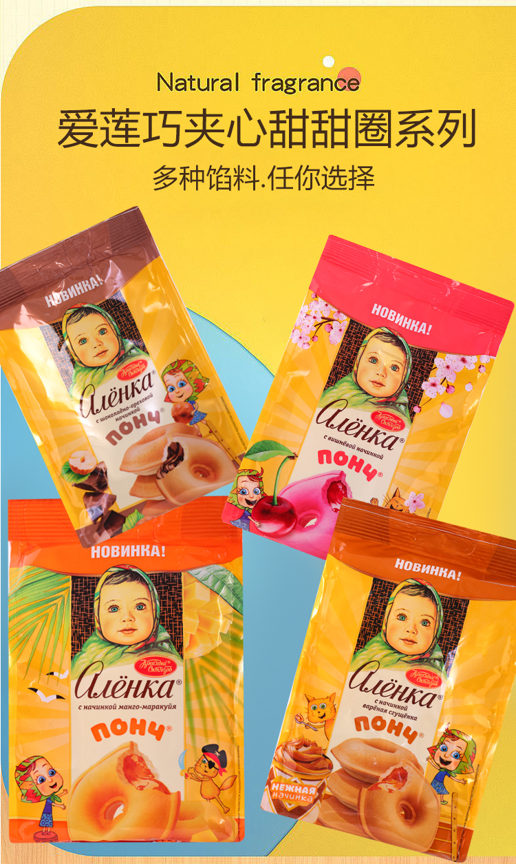 俄罗斯原装进口爱莲巧牌夹心炼乳巧克力樱桃坚果味甜甜圈