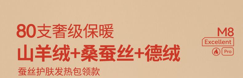 里层:聚酯纤维80.9% 氨纶7.8% 粘胶纤维5.2% 腈纶3.2% 山羊绒1.5% 桑蚕丝1.4%