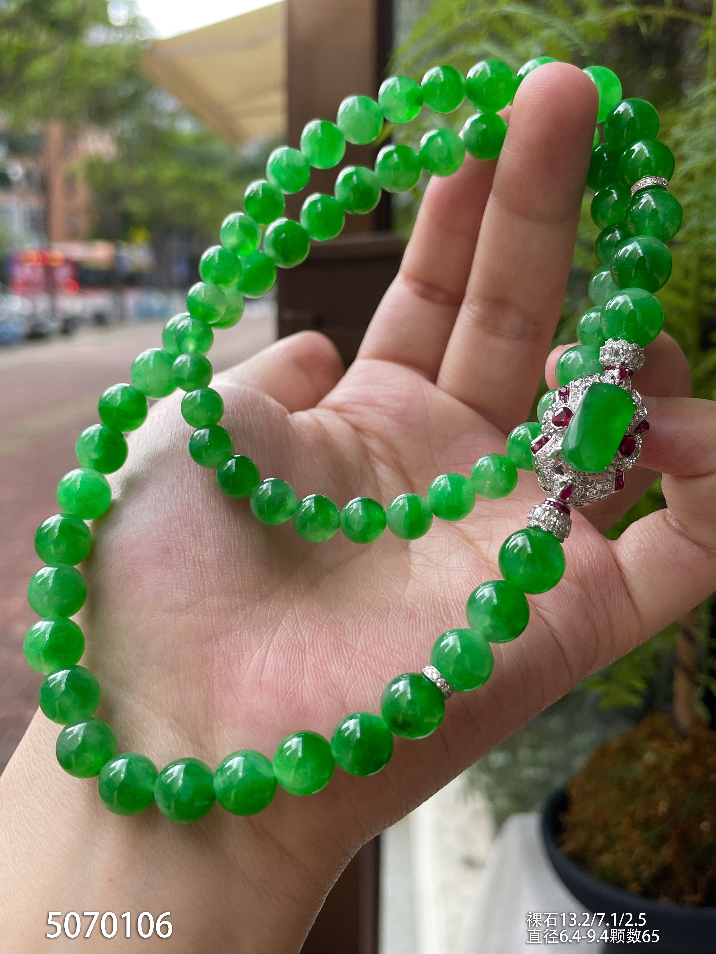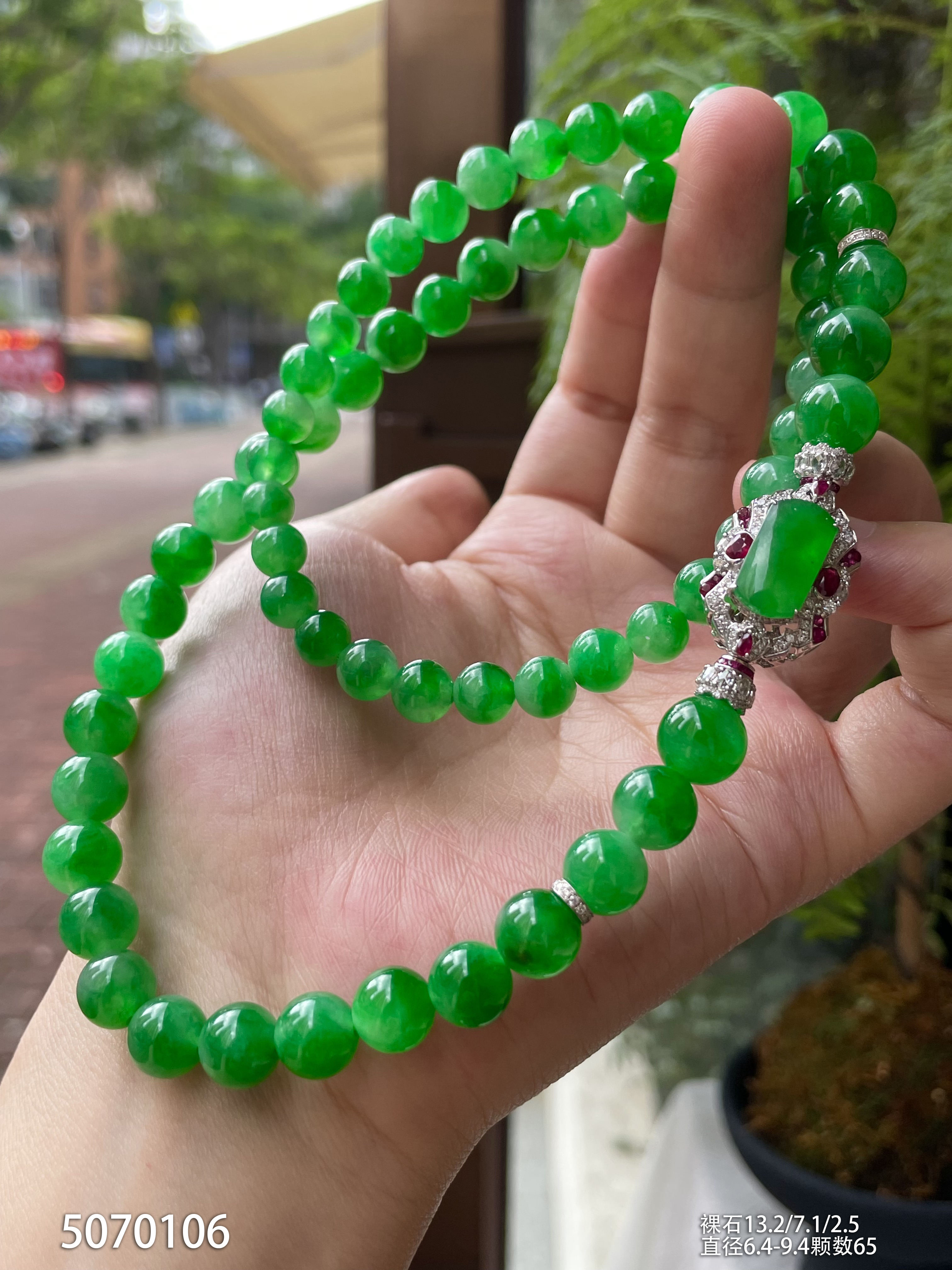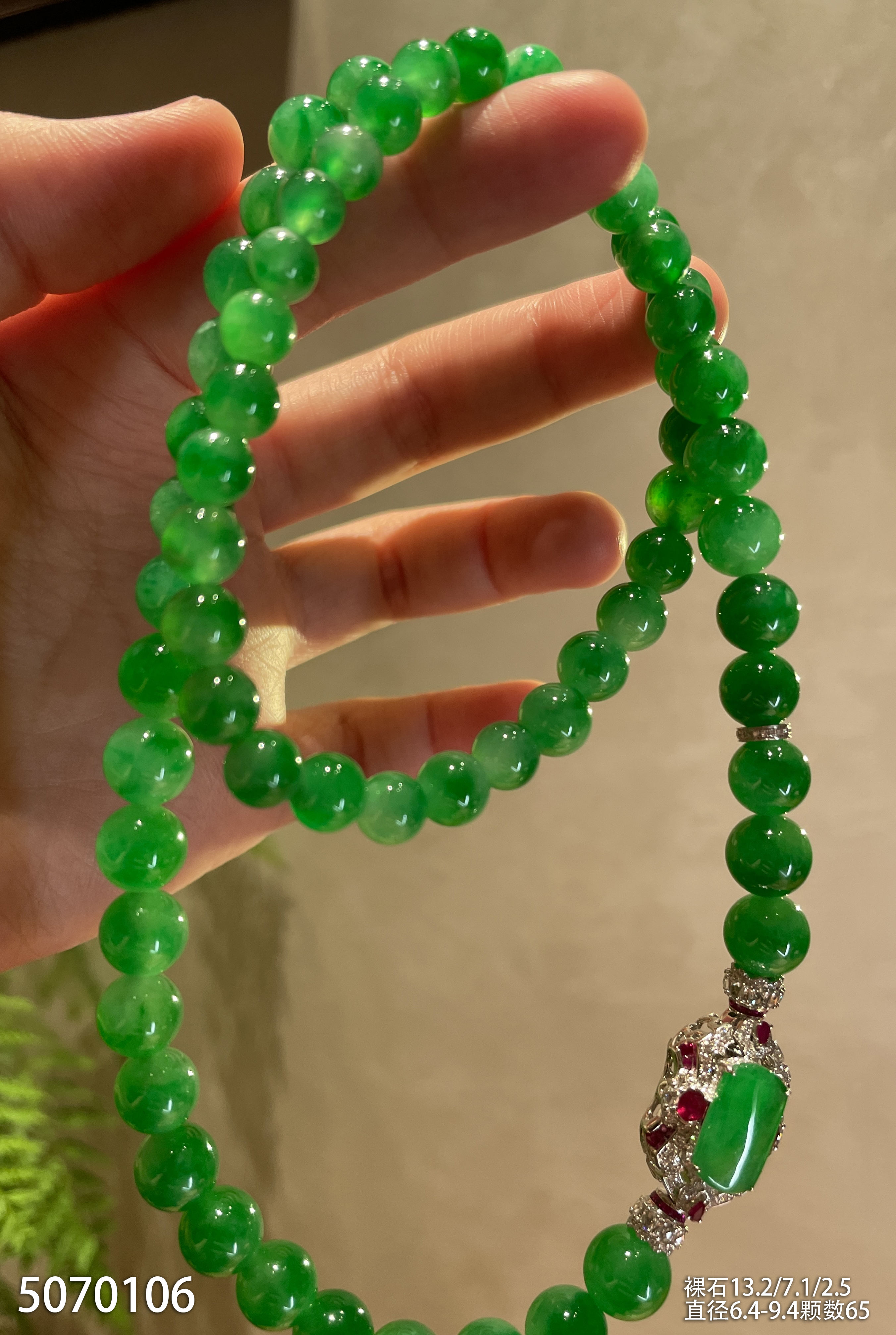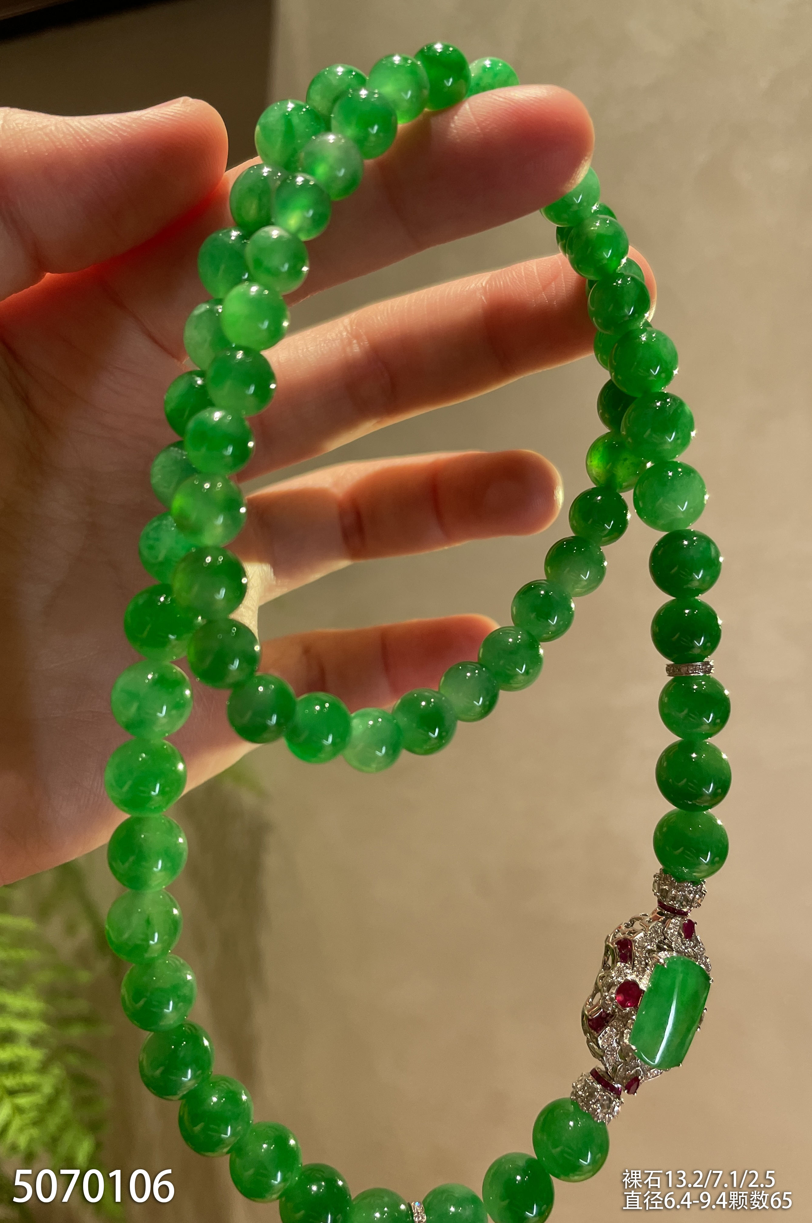 老坑艳绿长珠链【5070106】具体价格微信咨询