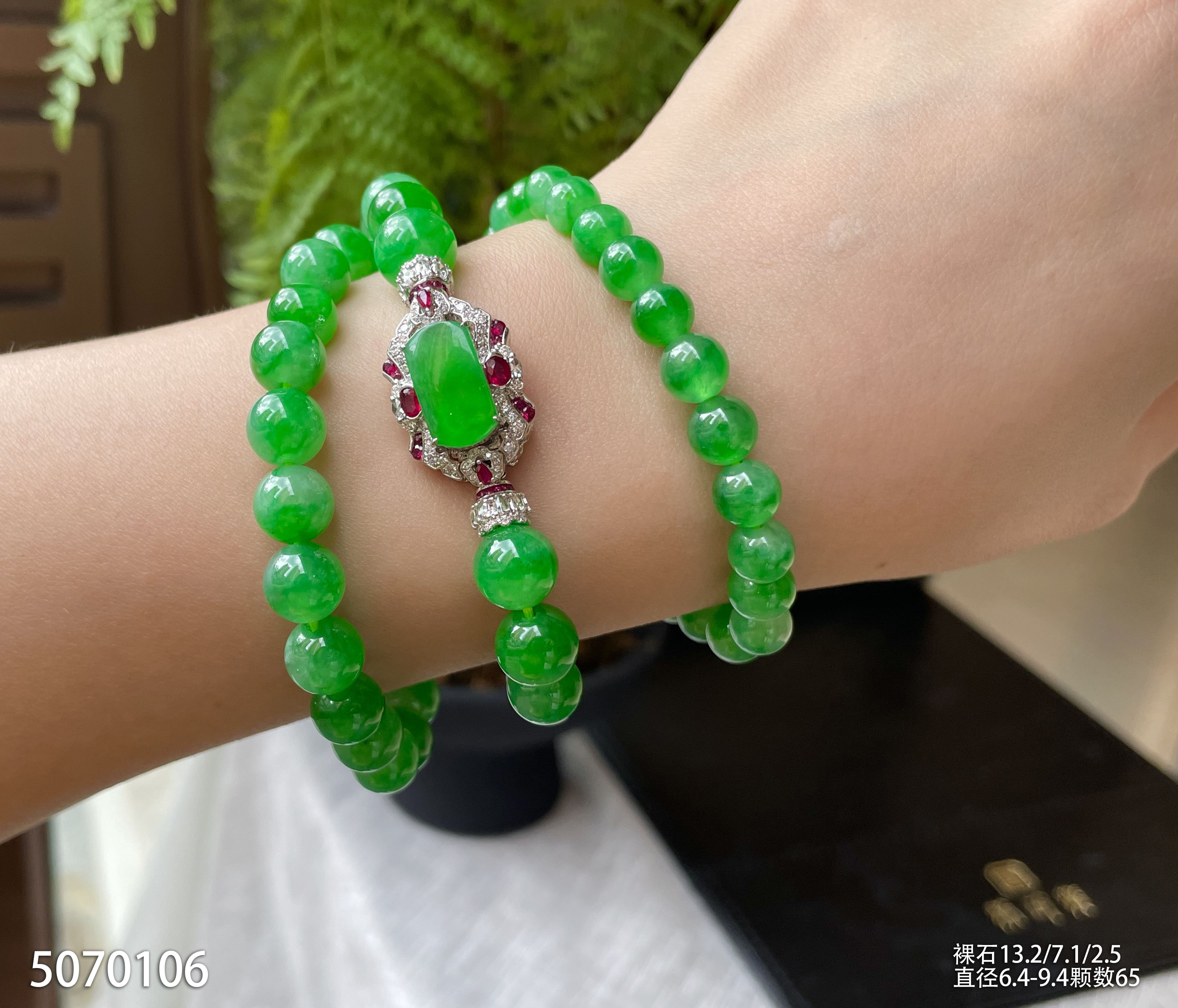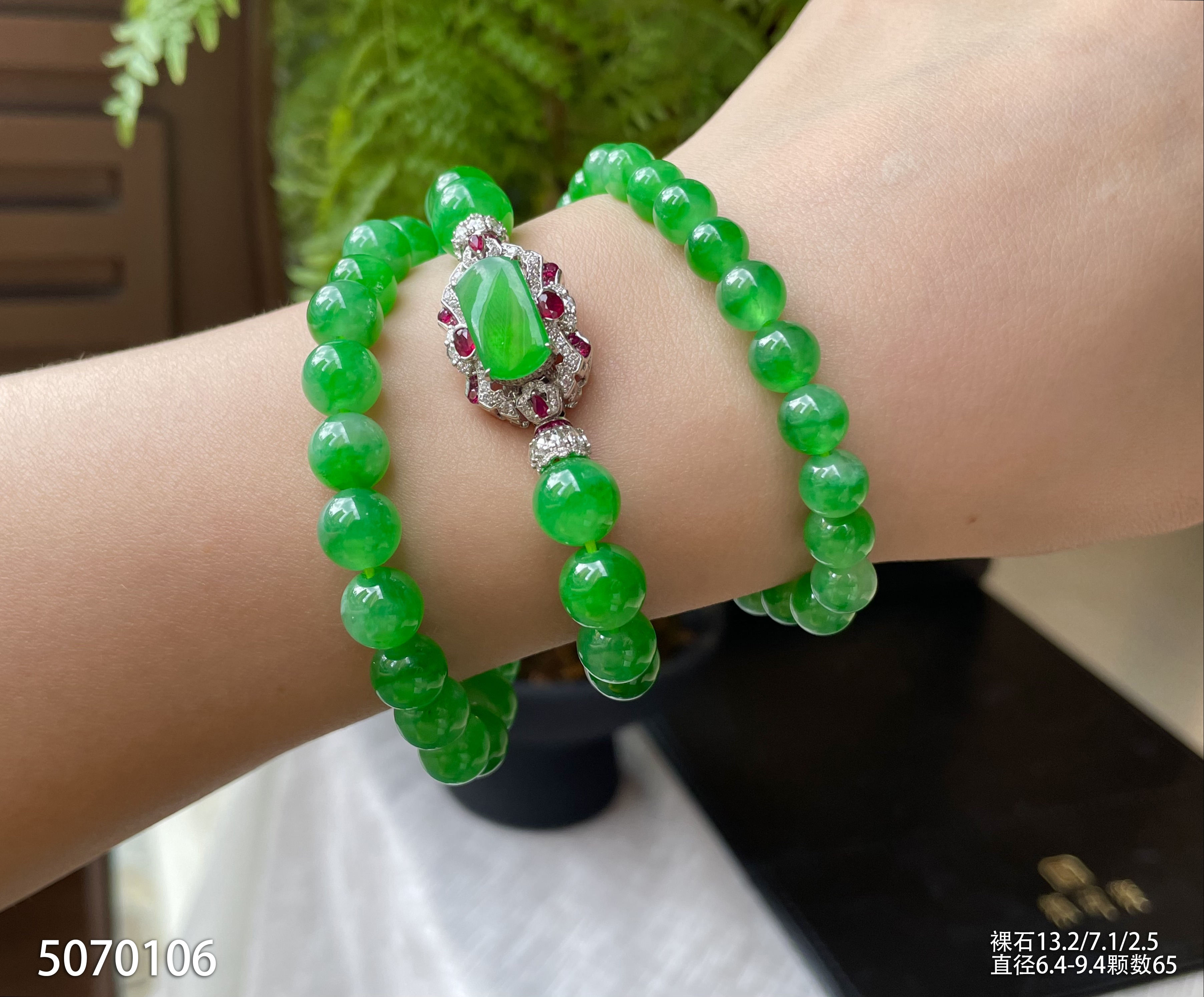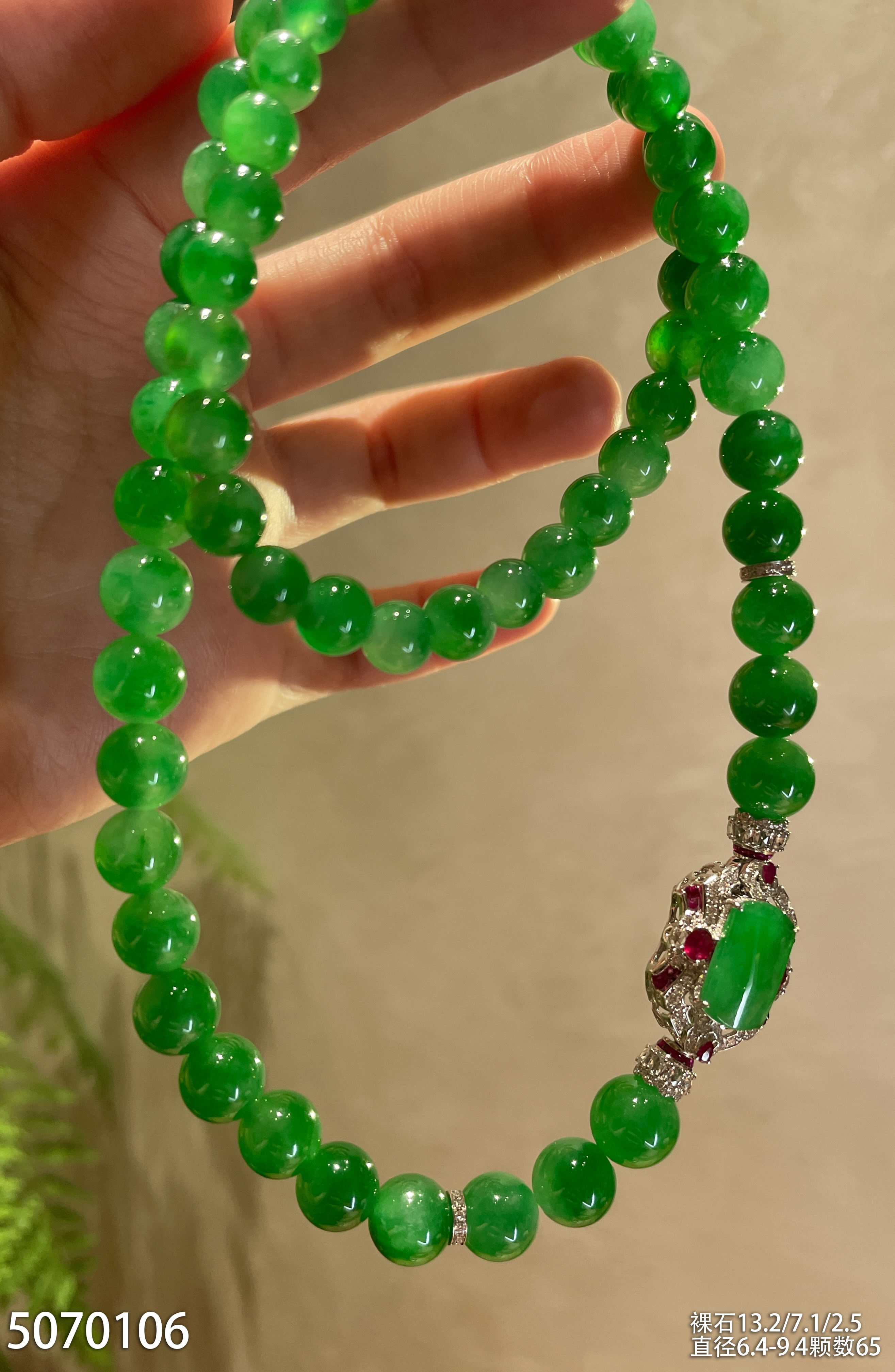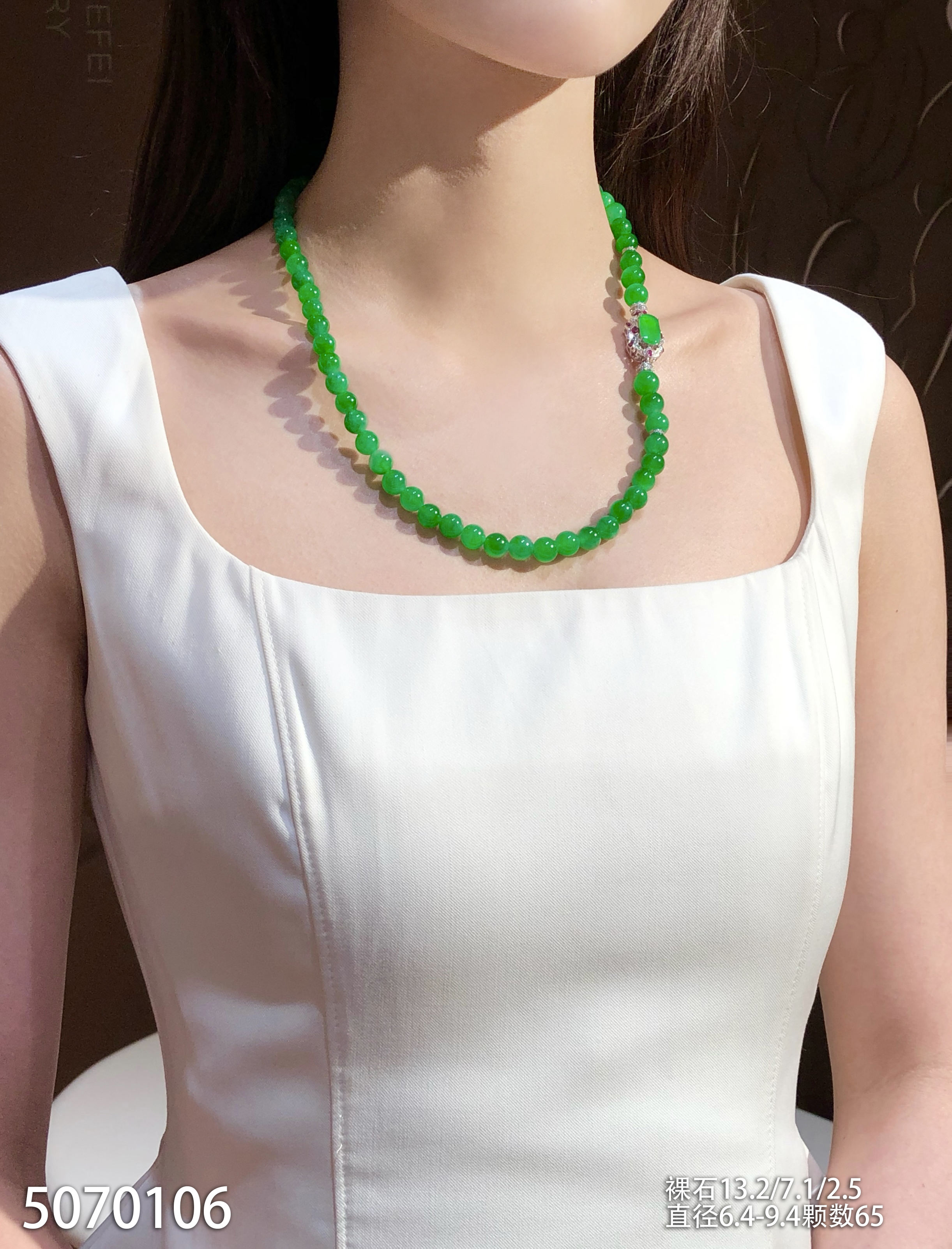 老坑艳绿长珠链【5070106】具体价格微信咨询