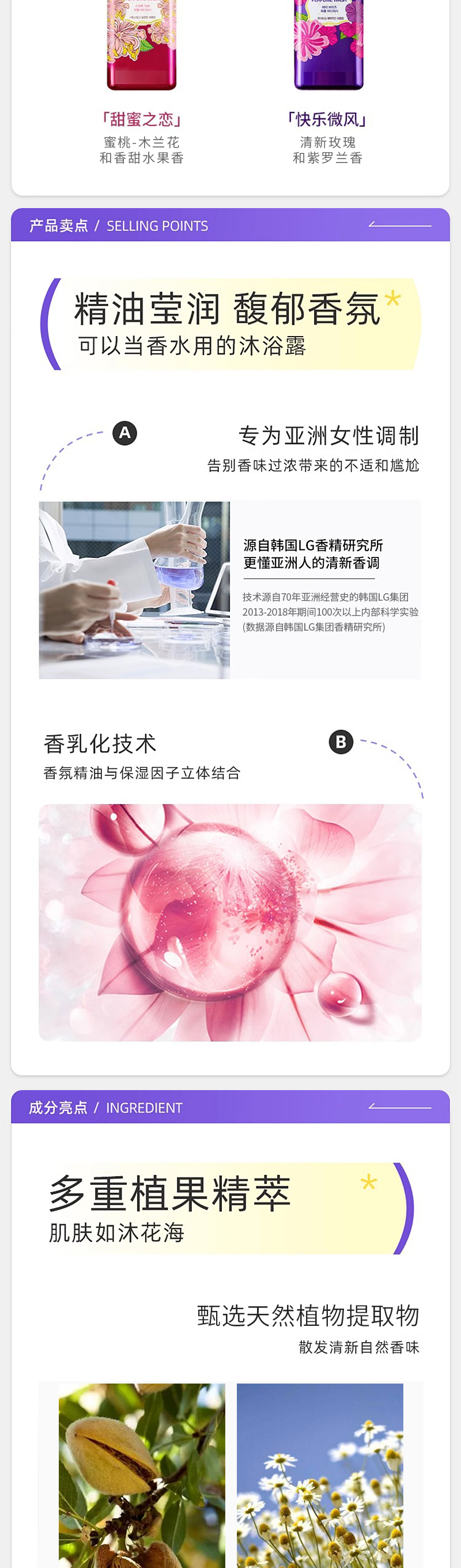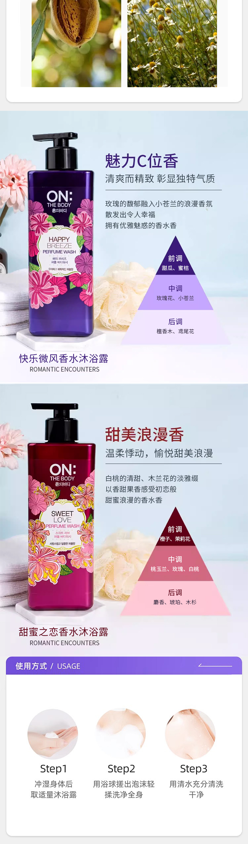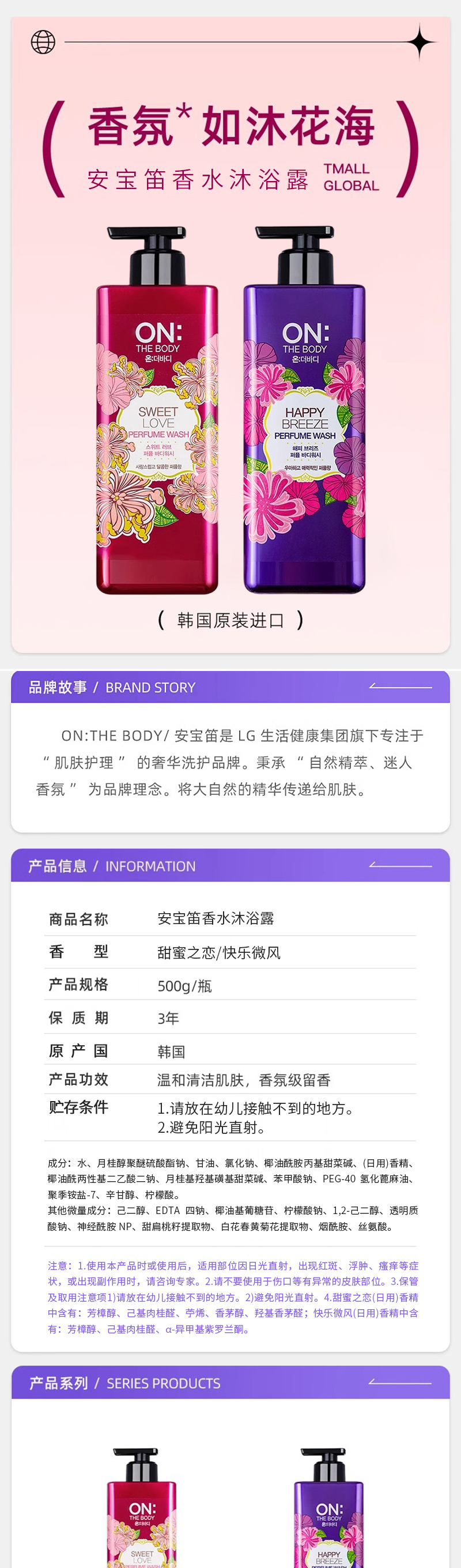 韩国进口安宝笛香水沐浴露500g 【 甜蜜之恋I 快乐微风系列】