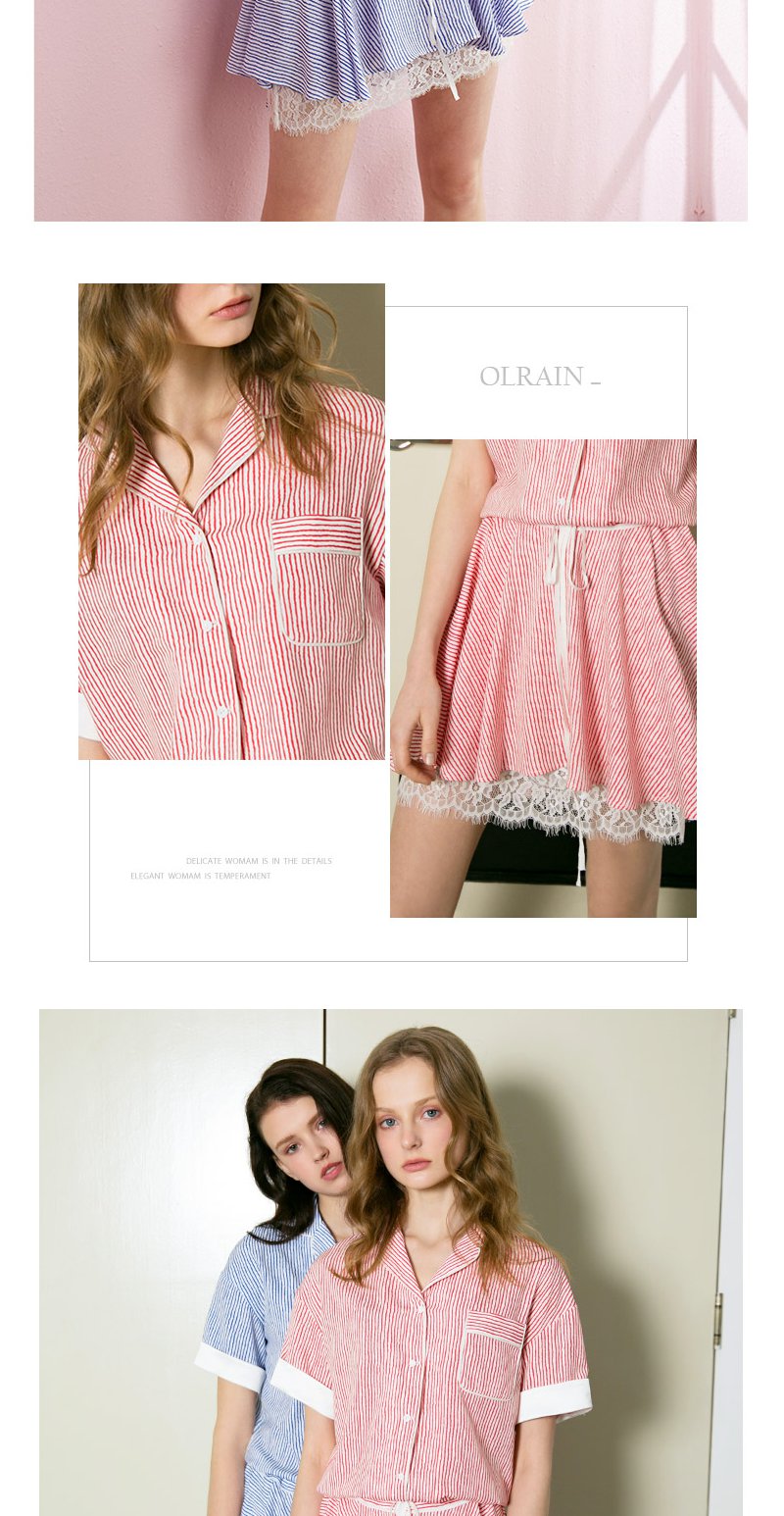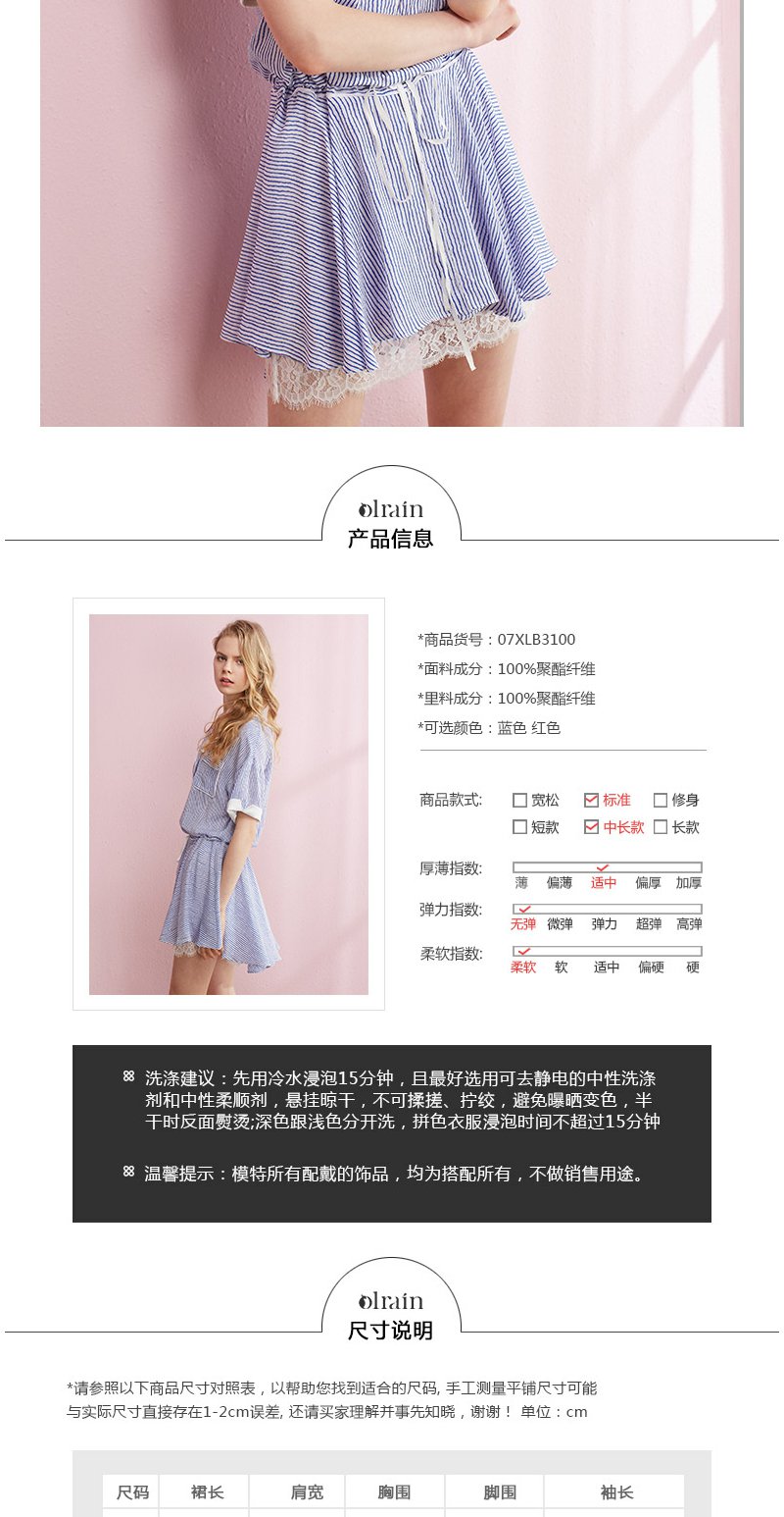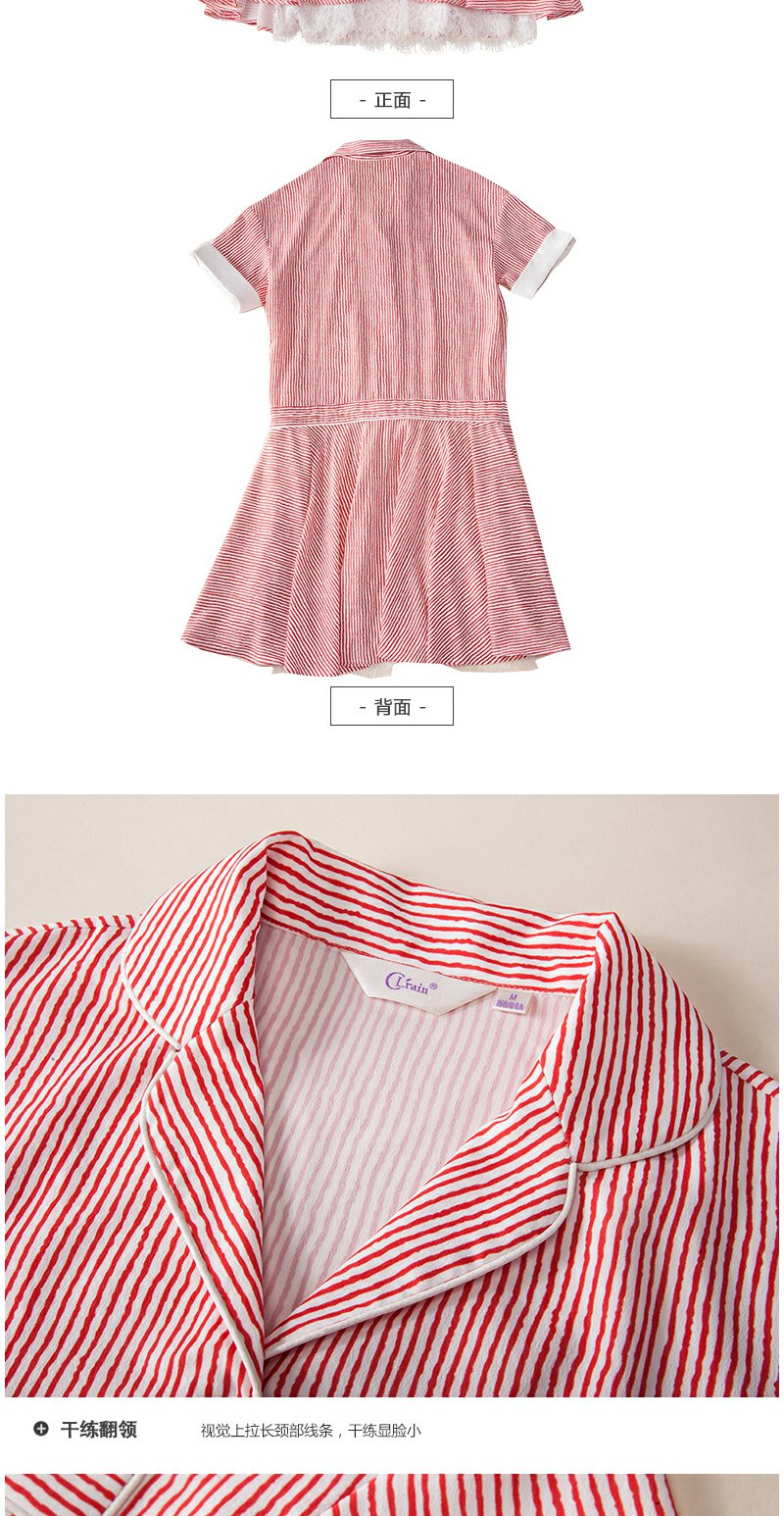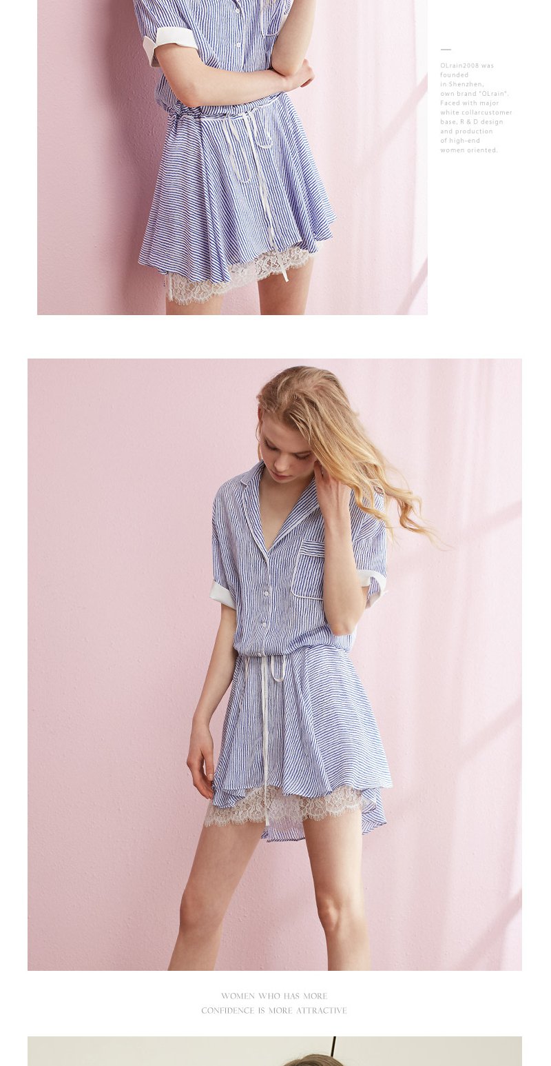 欧芮儿条纹衬衫裙女蕾丝系带收腰连衣裙女夏中长07XLB3100