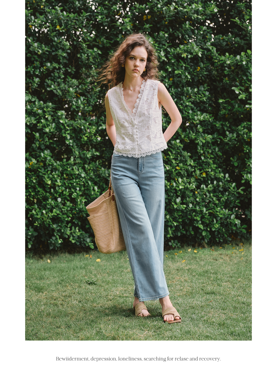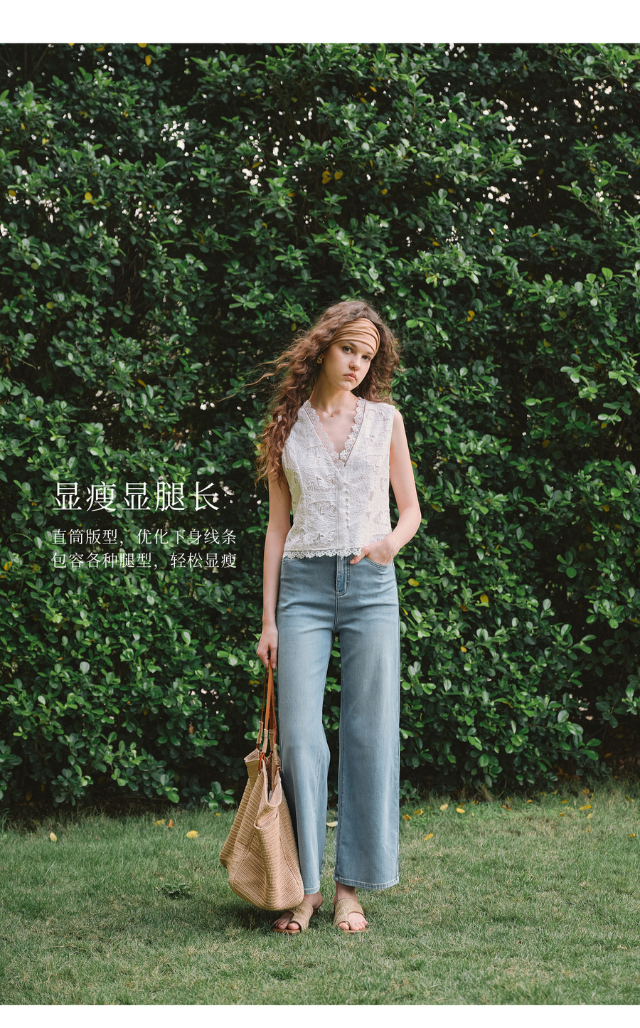 OLrain欧芮儿2025春夏新款蓝色直筒牛仔裤显腿长时尚百搭长裤女