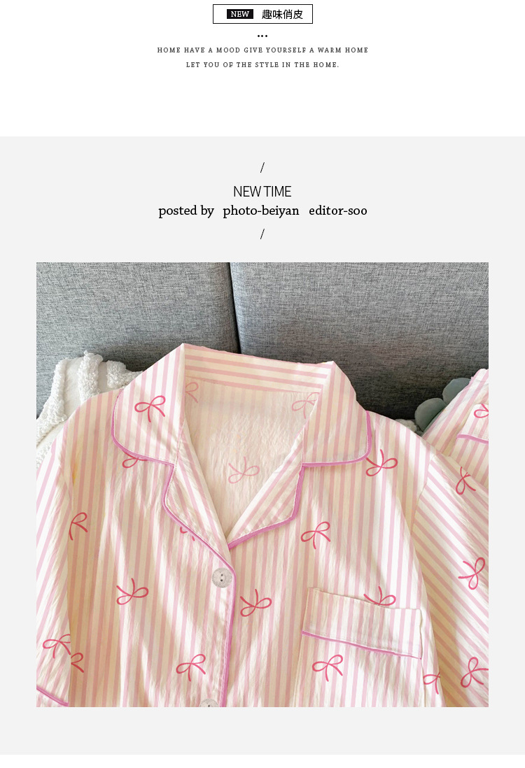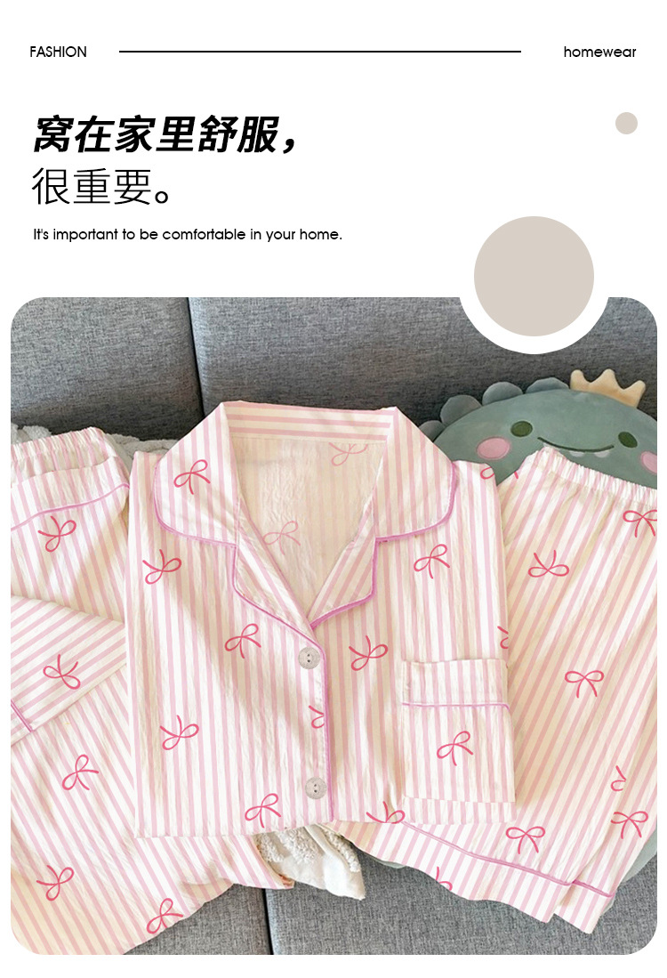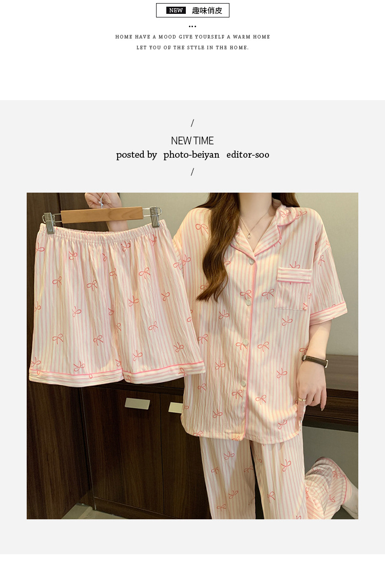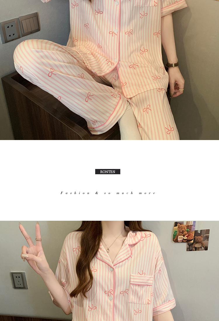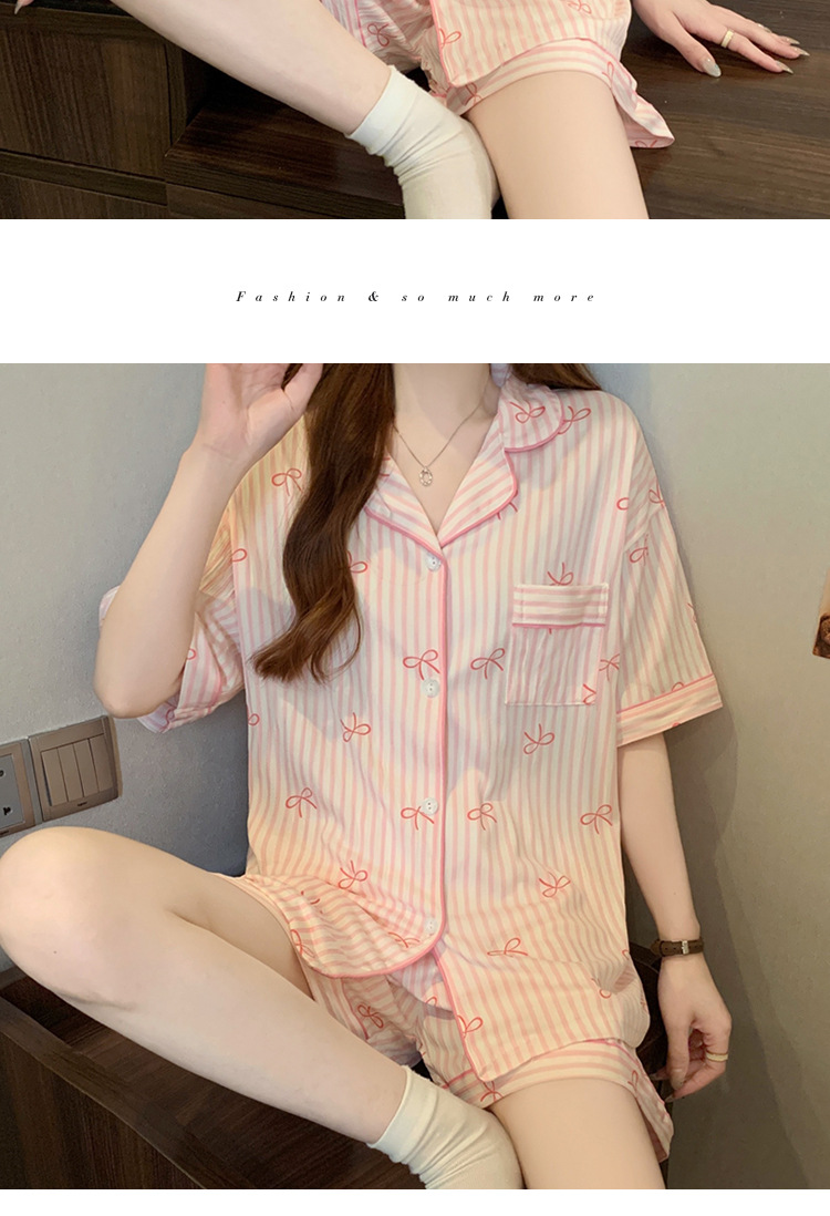 【59元1套起】春夏新品❗️超甜美家居服套装柔软细腻,宅家舒眠系,上身就不想脱下来!蝴蝶结条纹ins韩系印花皱布睡衣女短袖三件套