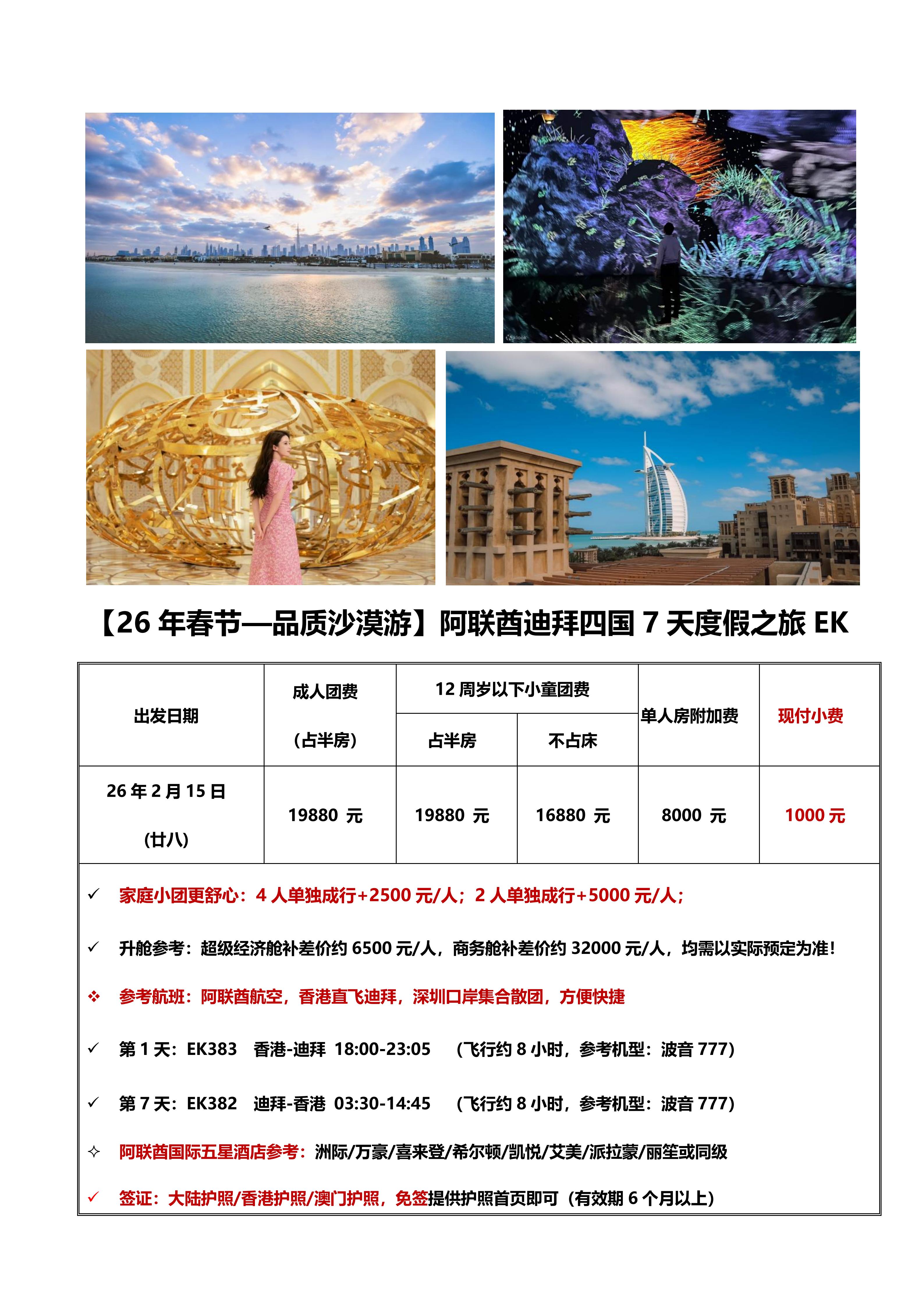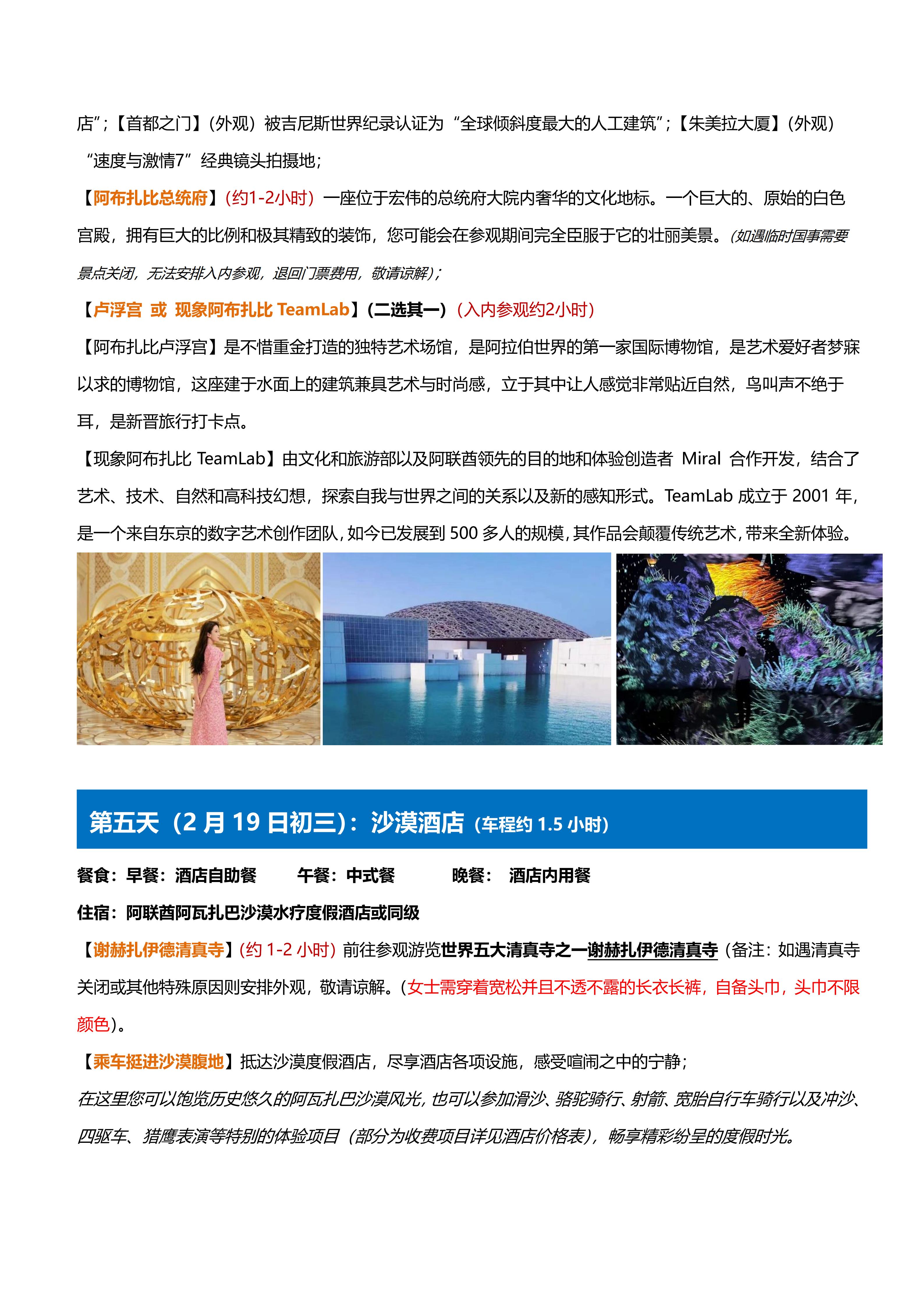 【春节】<阿联酋迪拜+阿布扎比+沙迦+阿治曼四国7天-深圳起止>1晚沙漠水疗度假酒店、沙迦博物馆、棕榈岛52层登塔、阿布扎比总统府、卢浮宫或现象阿布扎比TeamLab(二选一)、谢赫扎伊德清真寺