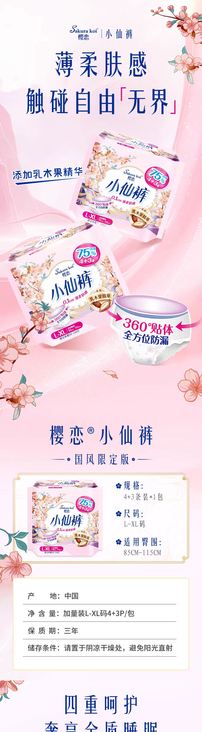 樱恋小仙裤女性卫生裤【 加量4+3条装】