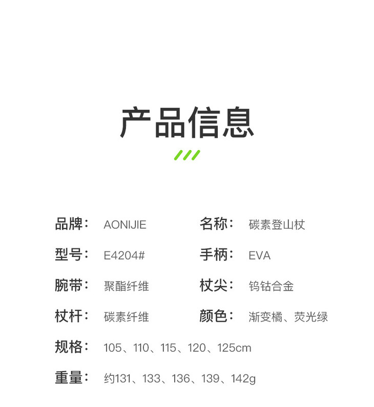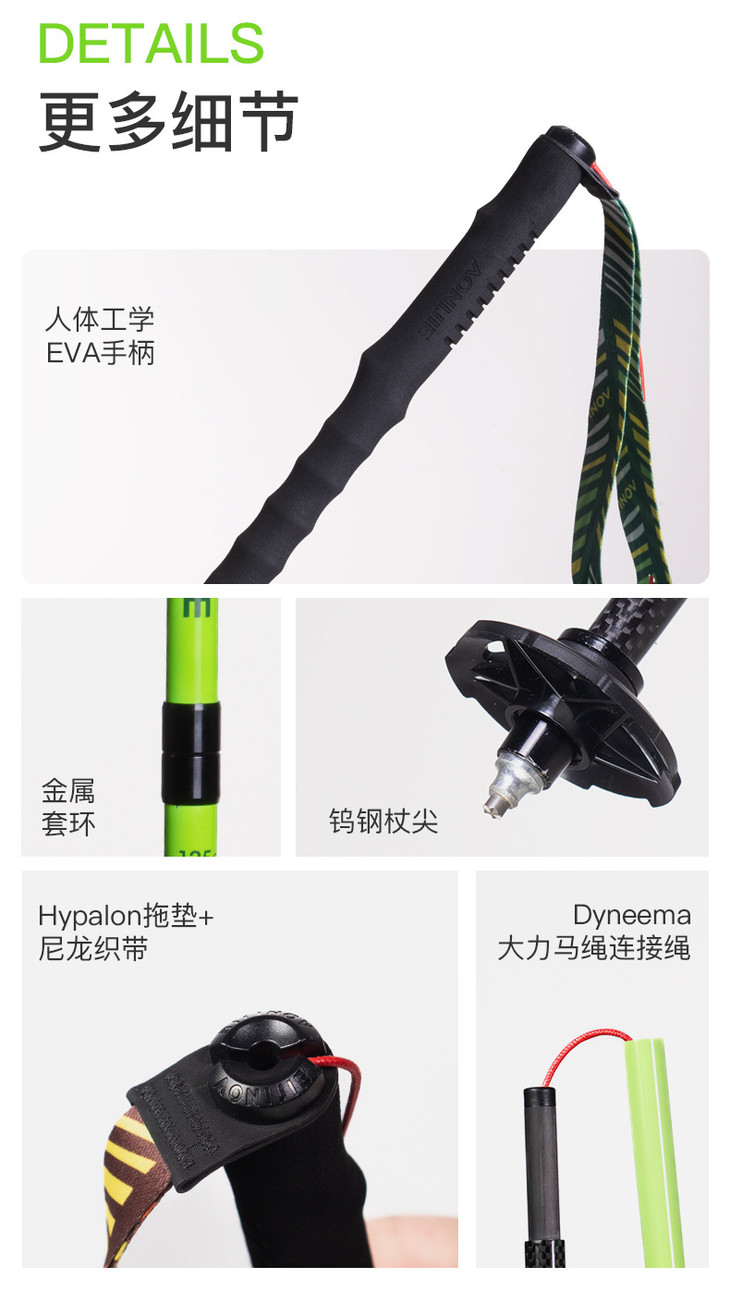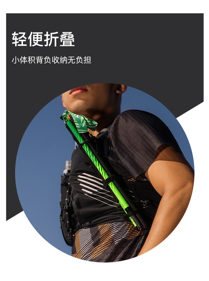 奥尼捷超轻碳素彩色折叠登山杖跑步手杖越野跑爬山徒步装备行山杖E4204-D