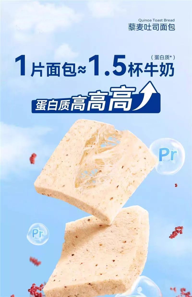 【早餐新搭档!藜麦无边吐司面包】甄选优质食材原料,美味健康又营养,1片面包=1.5杯牛奶,松软Q弹有嚼劲,代餐新伙伴,下午茶抗饿饱腹零食L