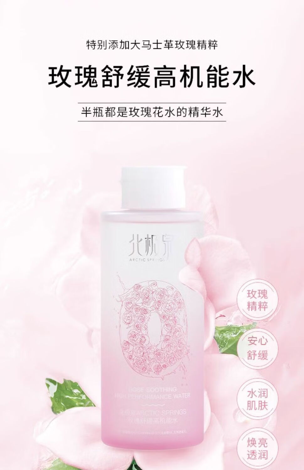 北极泉玫瑰舒缓高机能水 400ml 保湿爽肤水 清爽奢养 肌肤补水