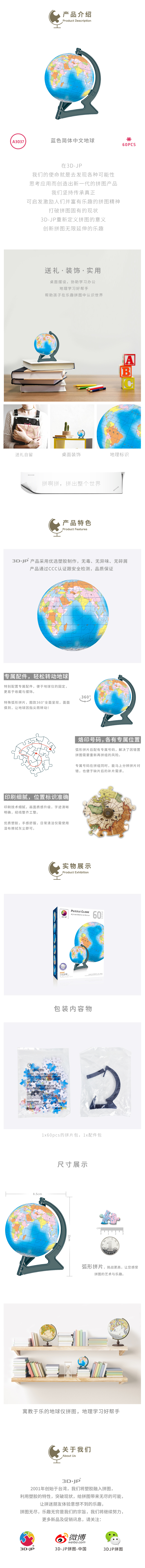 【折扣商品 不退不换】3寸 地球仪拼图 塑料拼图 A3037 蓝色简体中文