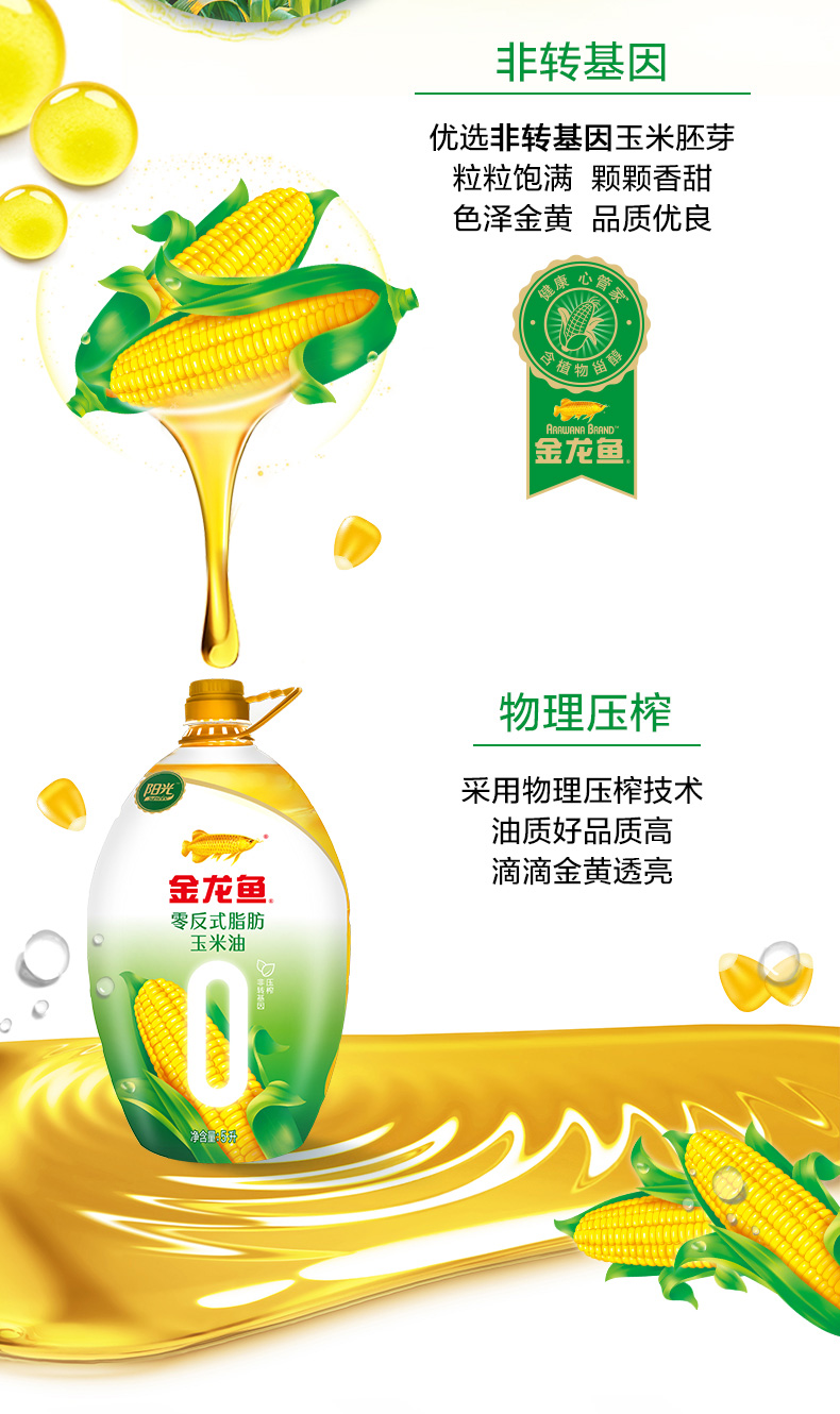 金龙鱼 阳光 零反式脂肪 玉米油 5L/桶 非转基因 物理 压榨 营养 食用油 包邮