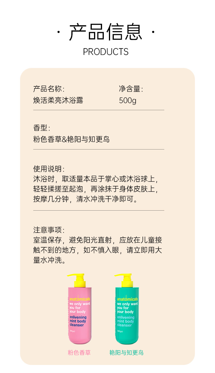 安娜魅纳 焕活薄荷沐浴露300g(粉色香草/艳阳与知更鸟)