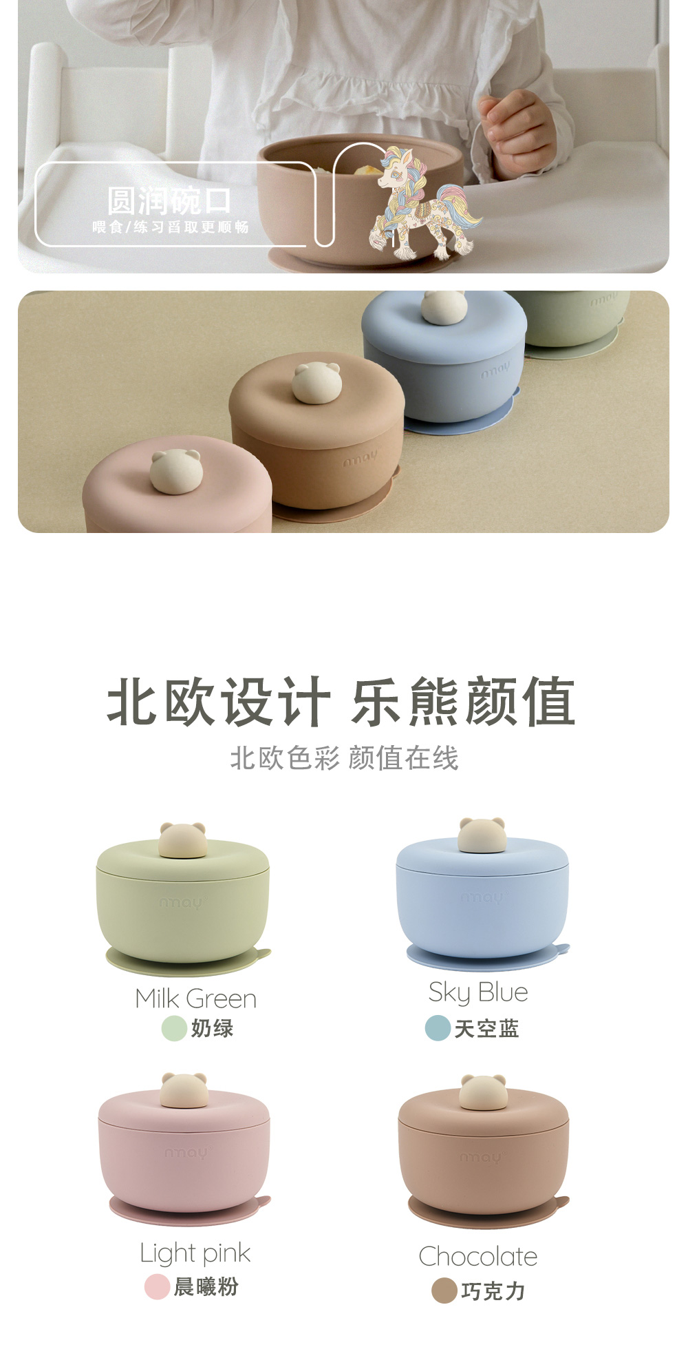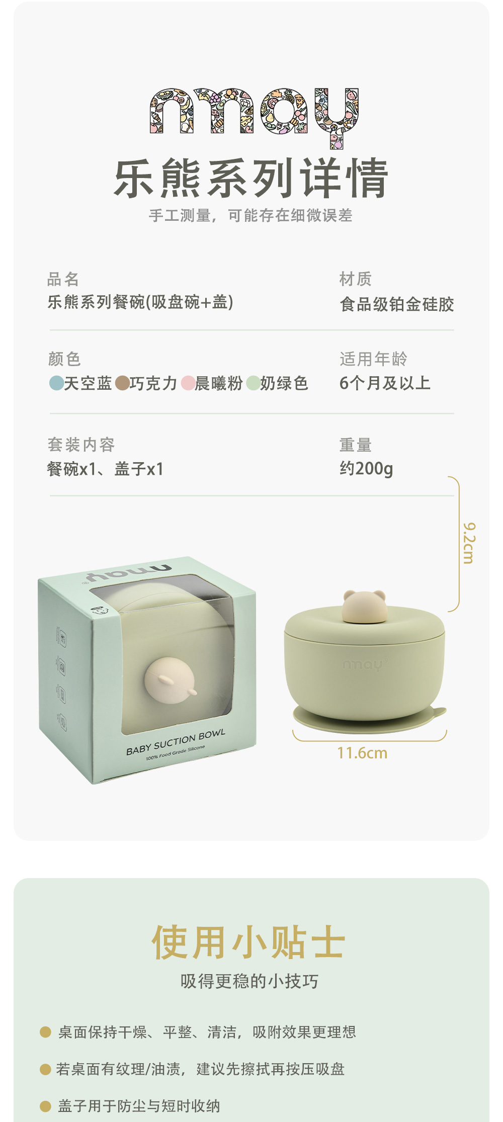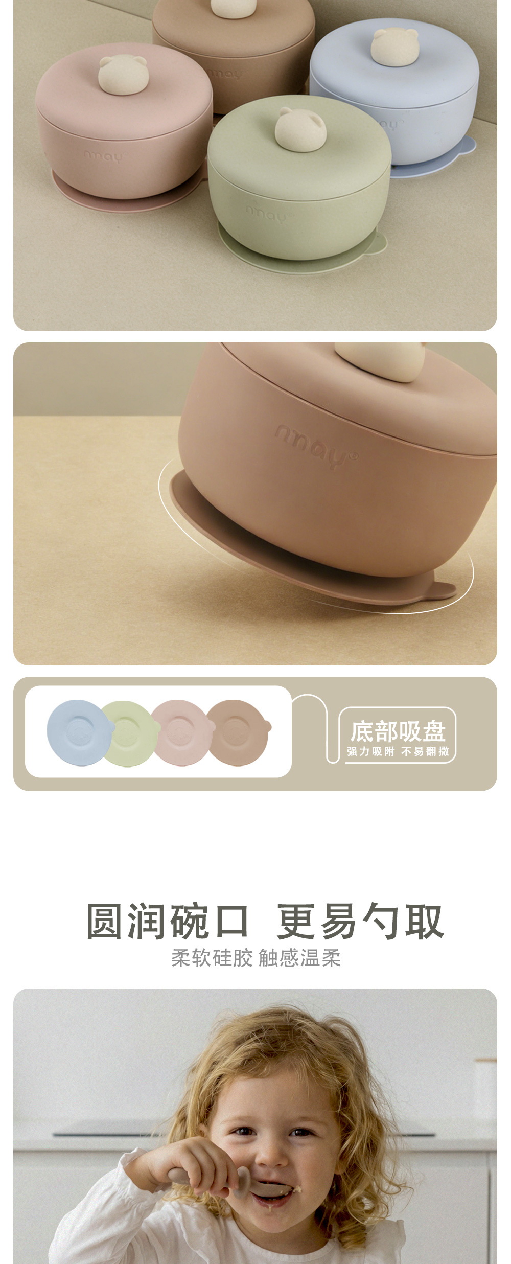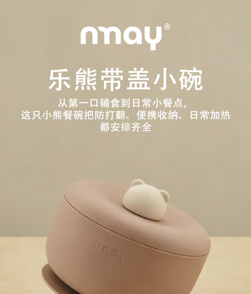 nmay 乐熊系列 硅胶辅食碗 餐具儿童宝宝吃饭带盖婴儿专用吸盘式饭碗6月+