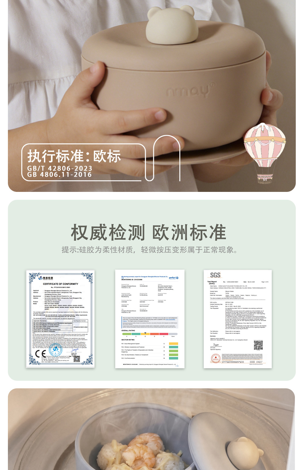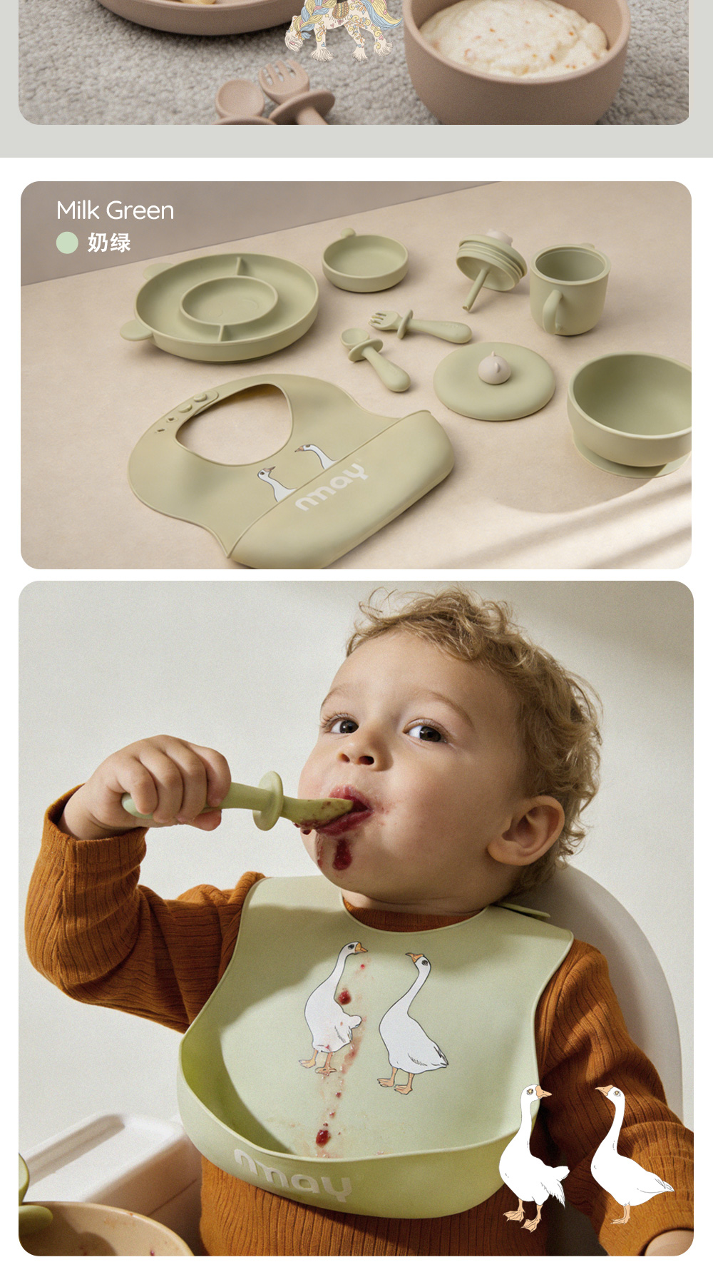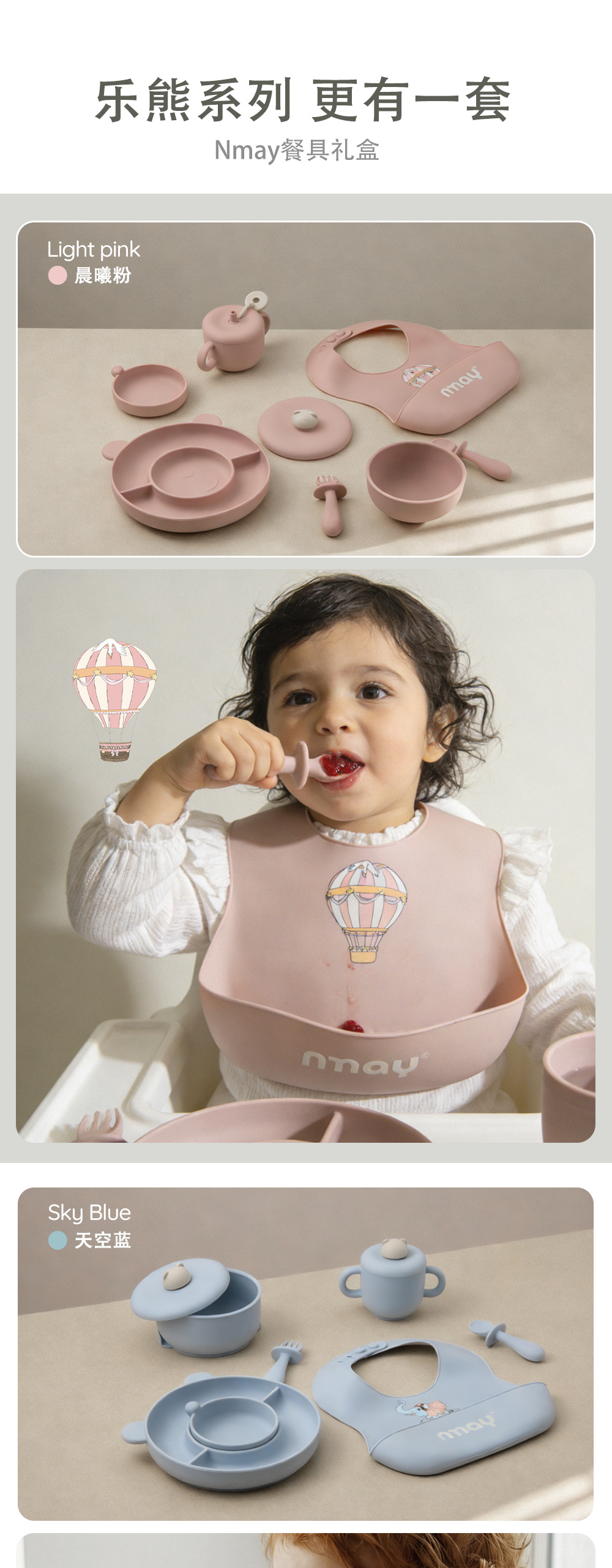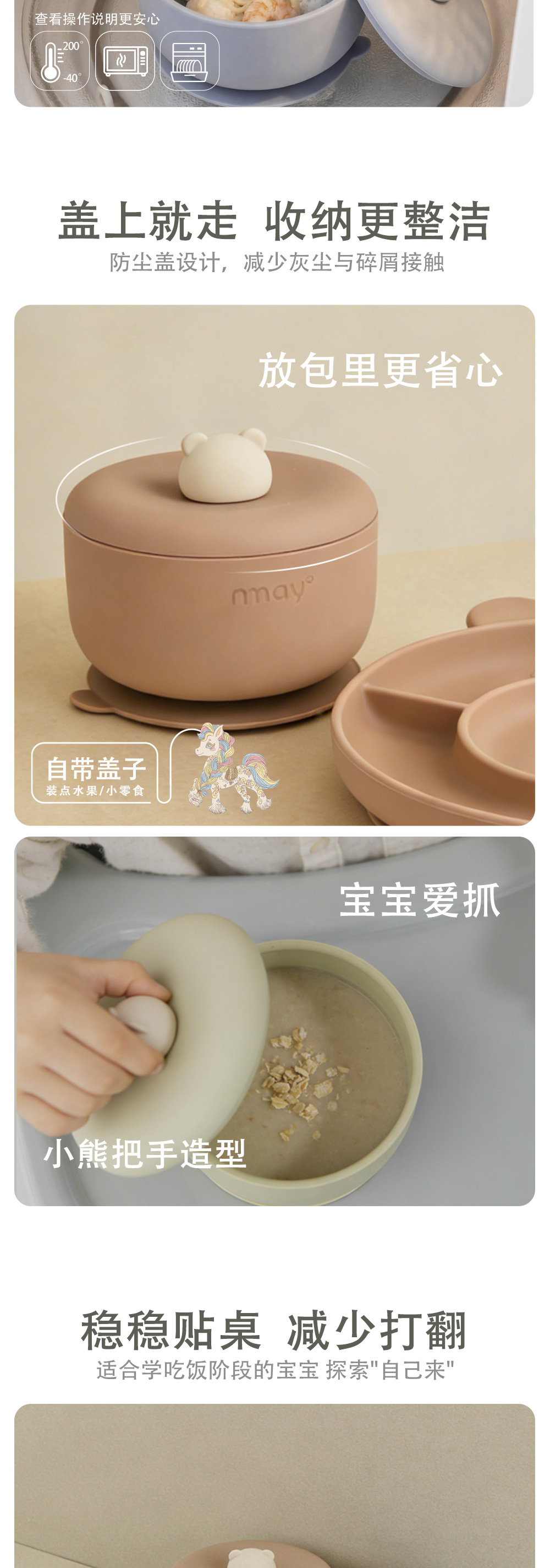nmay 乐熊系列 硅胶辅食碗 餐具儿童宝宝吃饭带盖婴儿专用吸盘式饭碗6月+