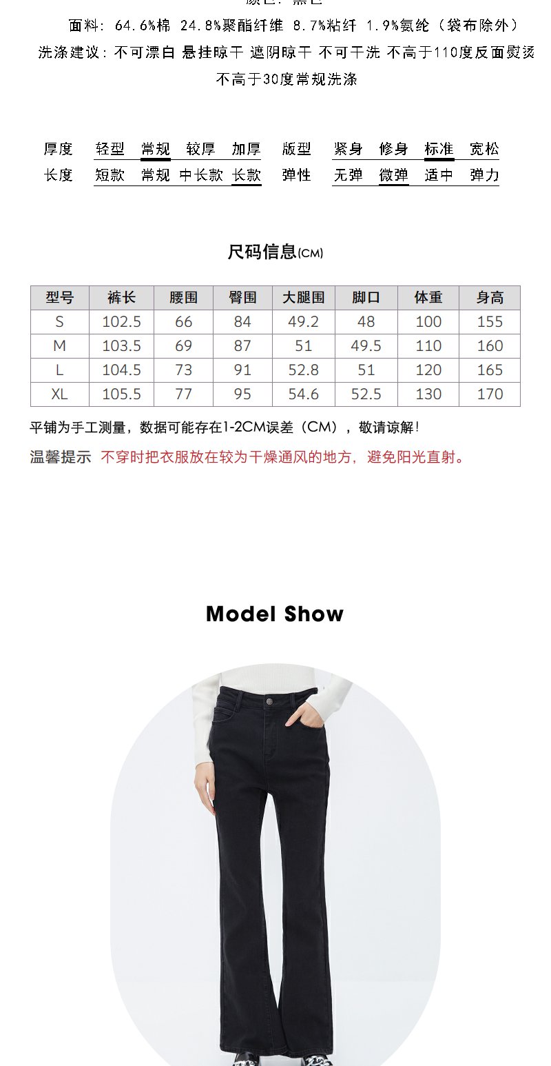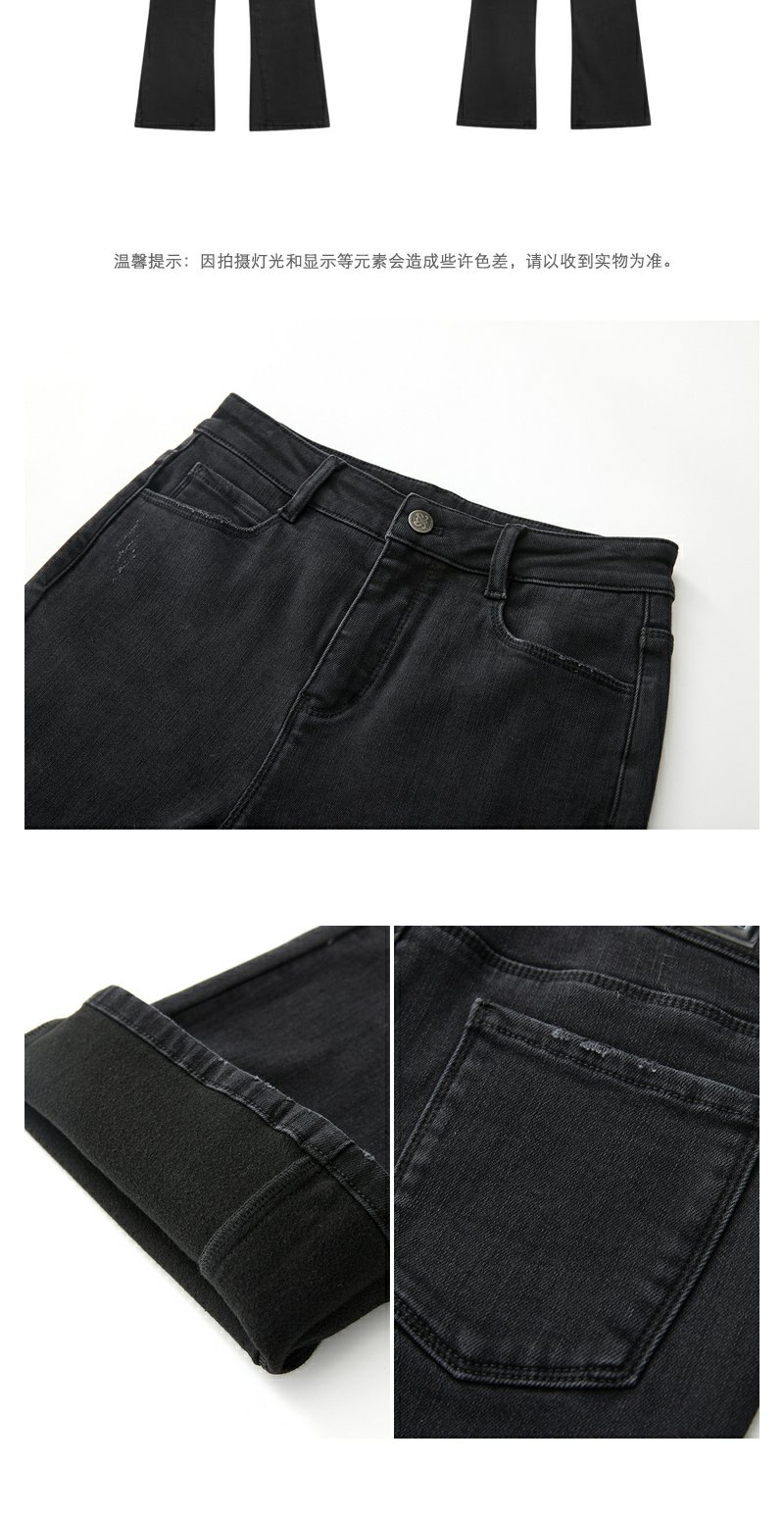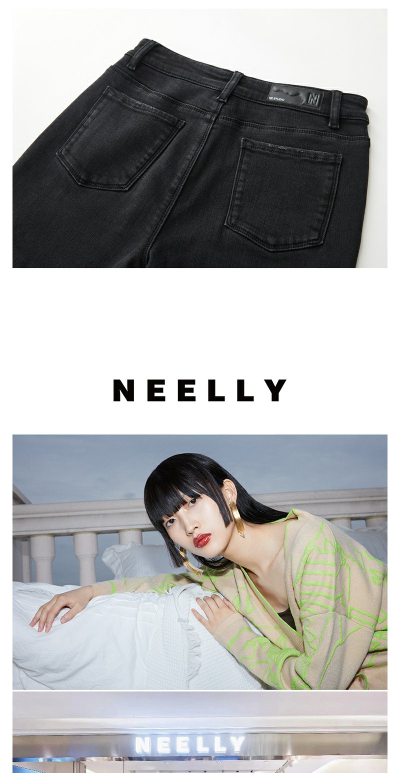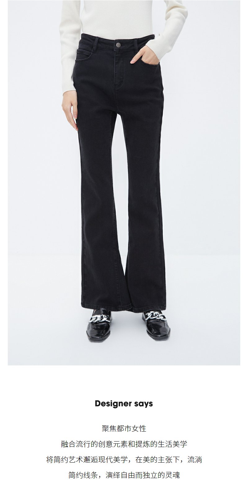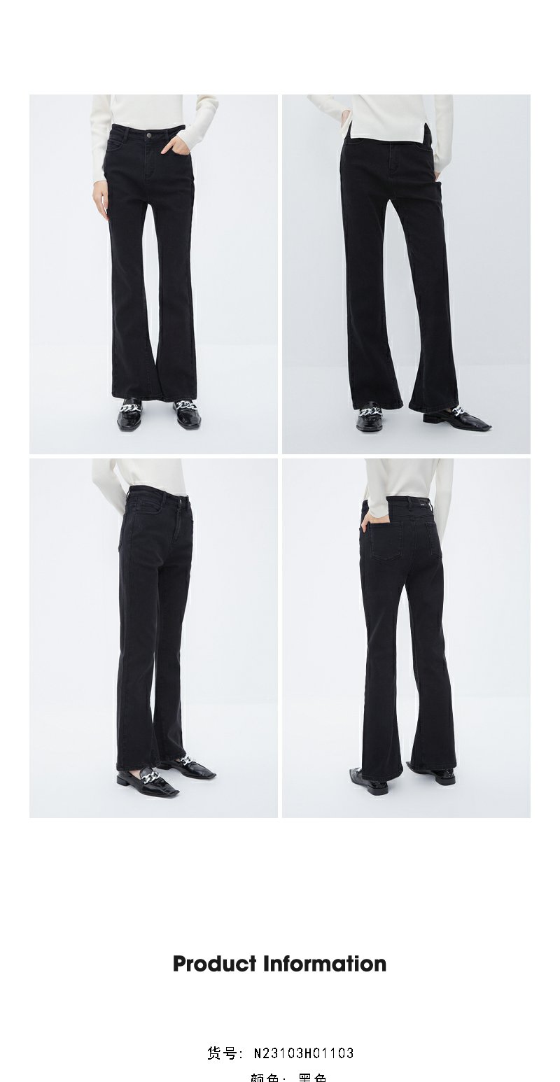 NEELLY纳俪商场同款高腰磨毛微喇裤女冬季百搭显瘦黑色弹力牛仔裤N23103H01103