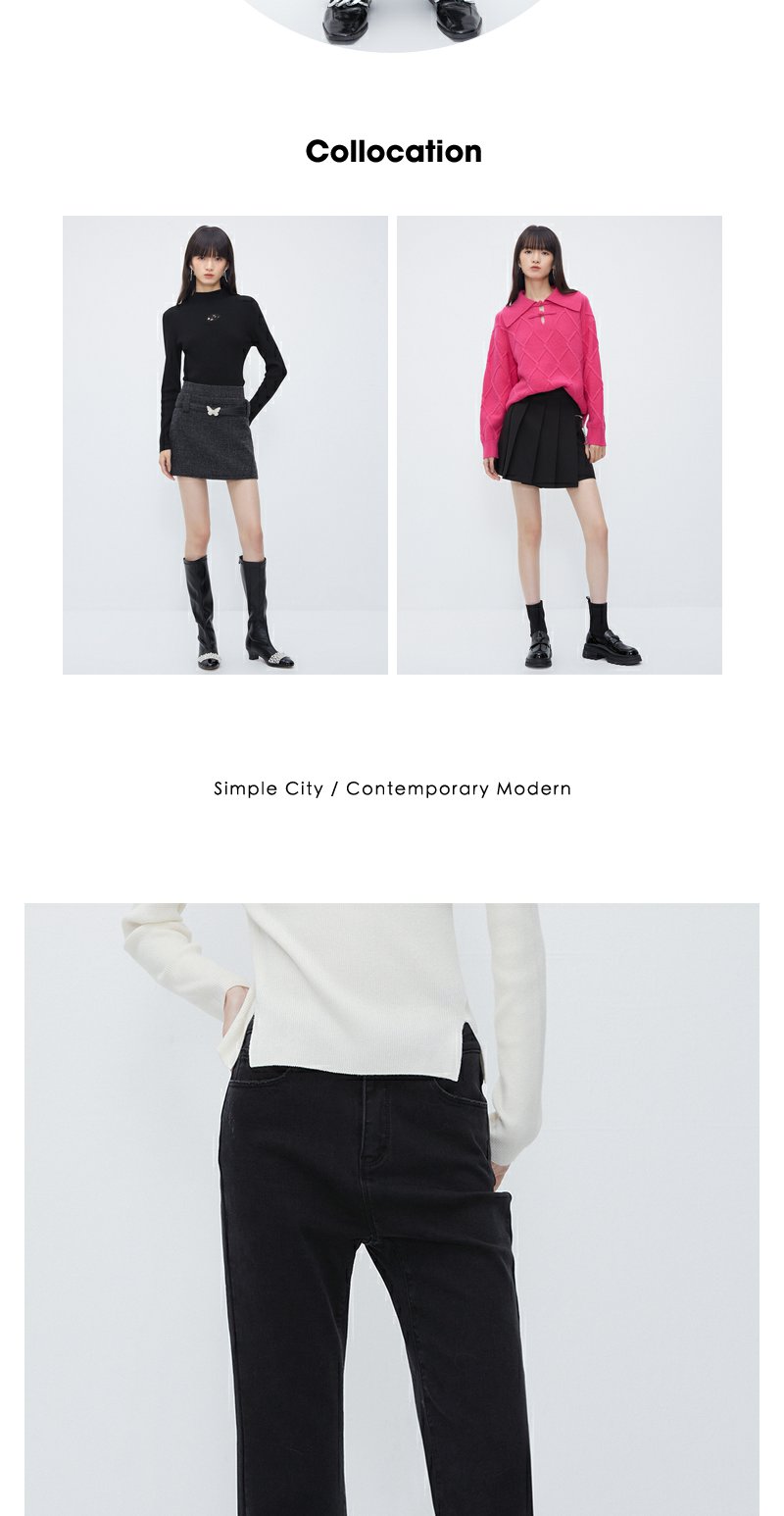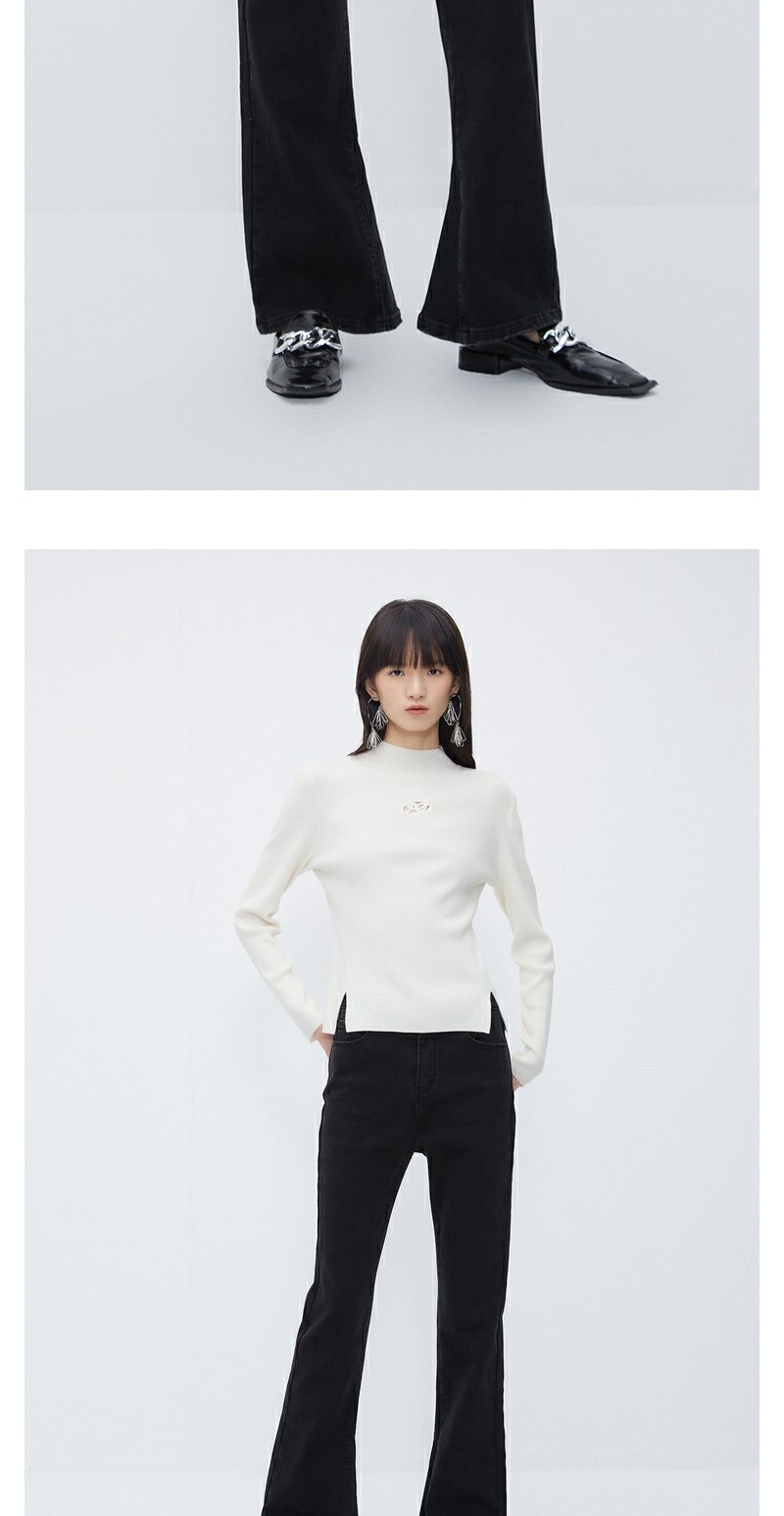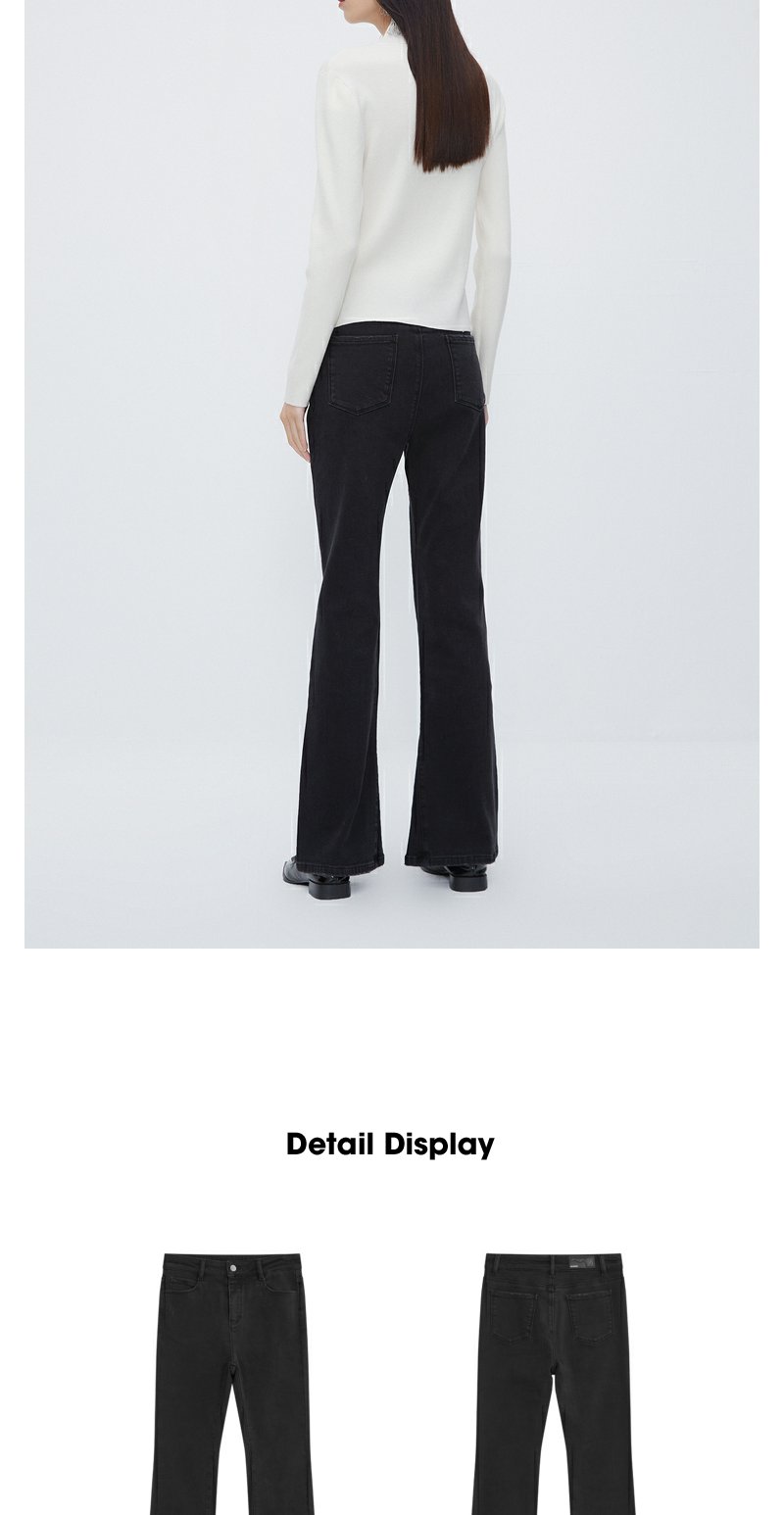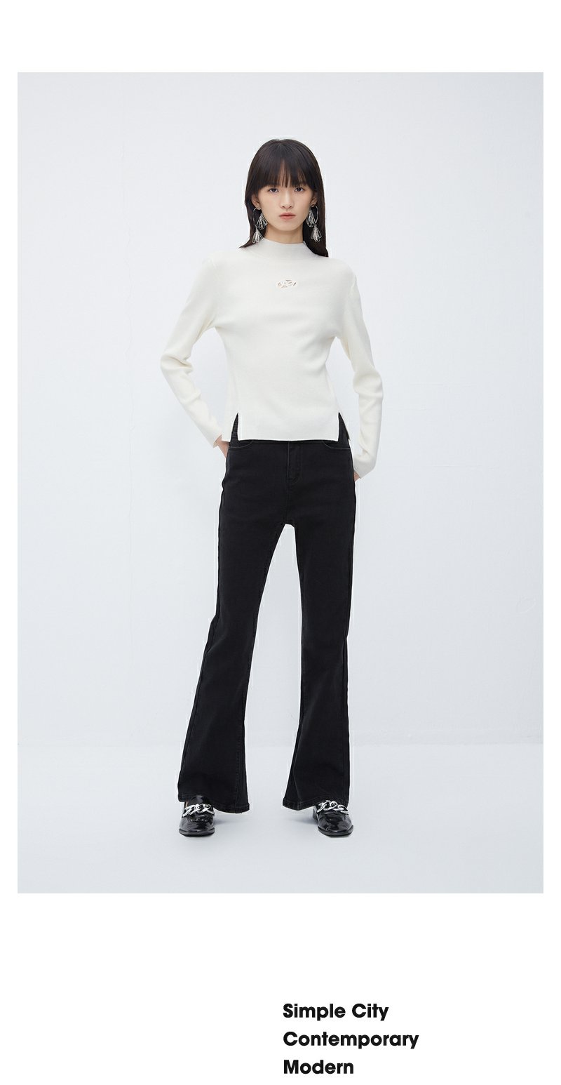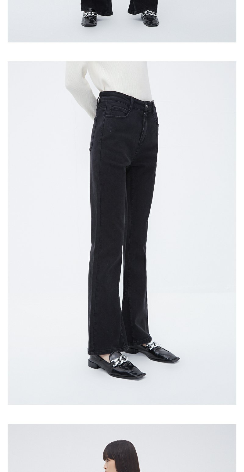 NEELLY纳俪商场同款高腰磨毛微喇裤女冬季百搭显瘦黑色弹力牛仔裤N23103H01103