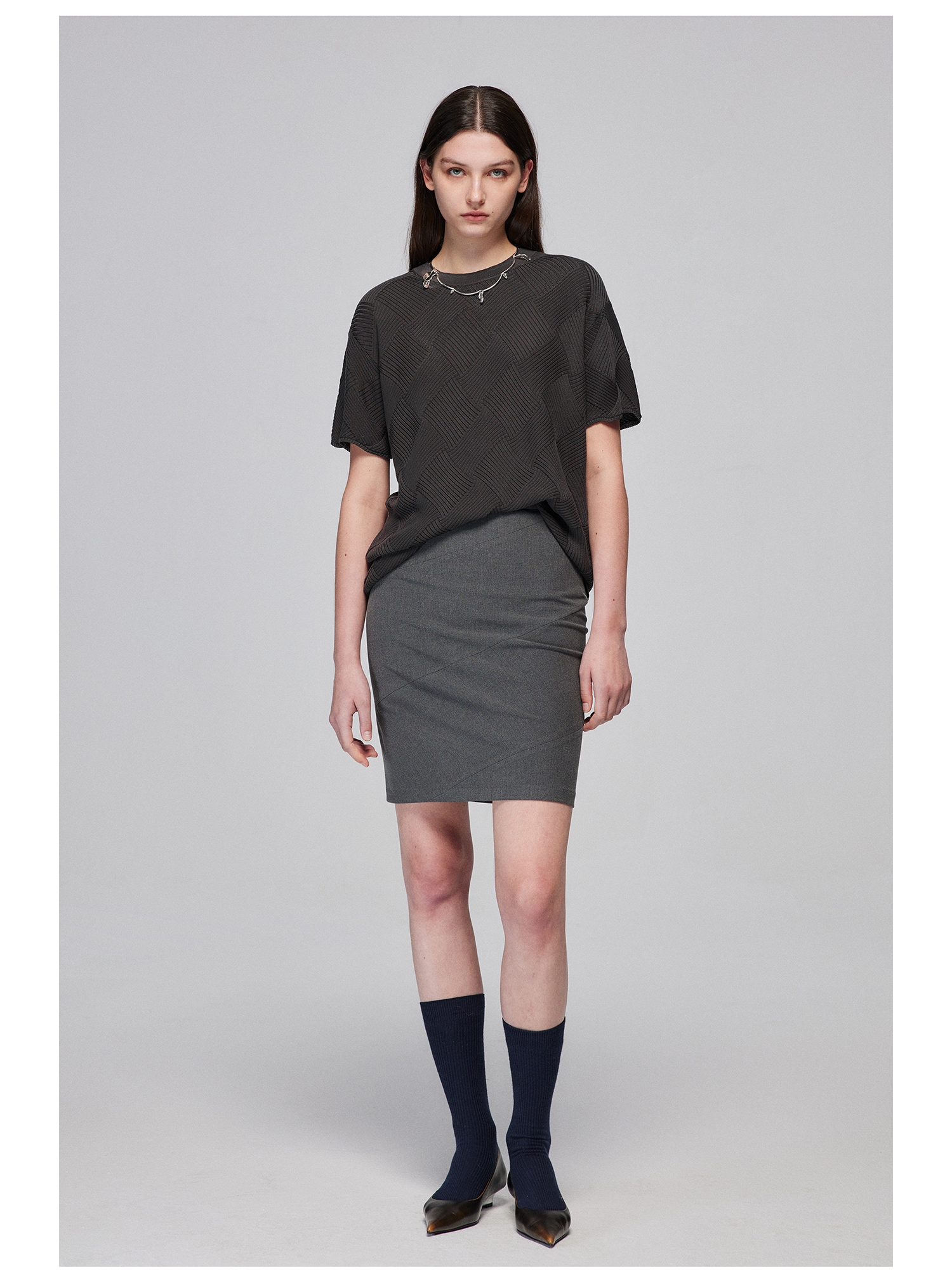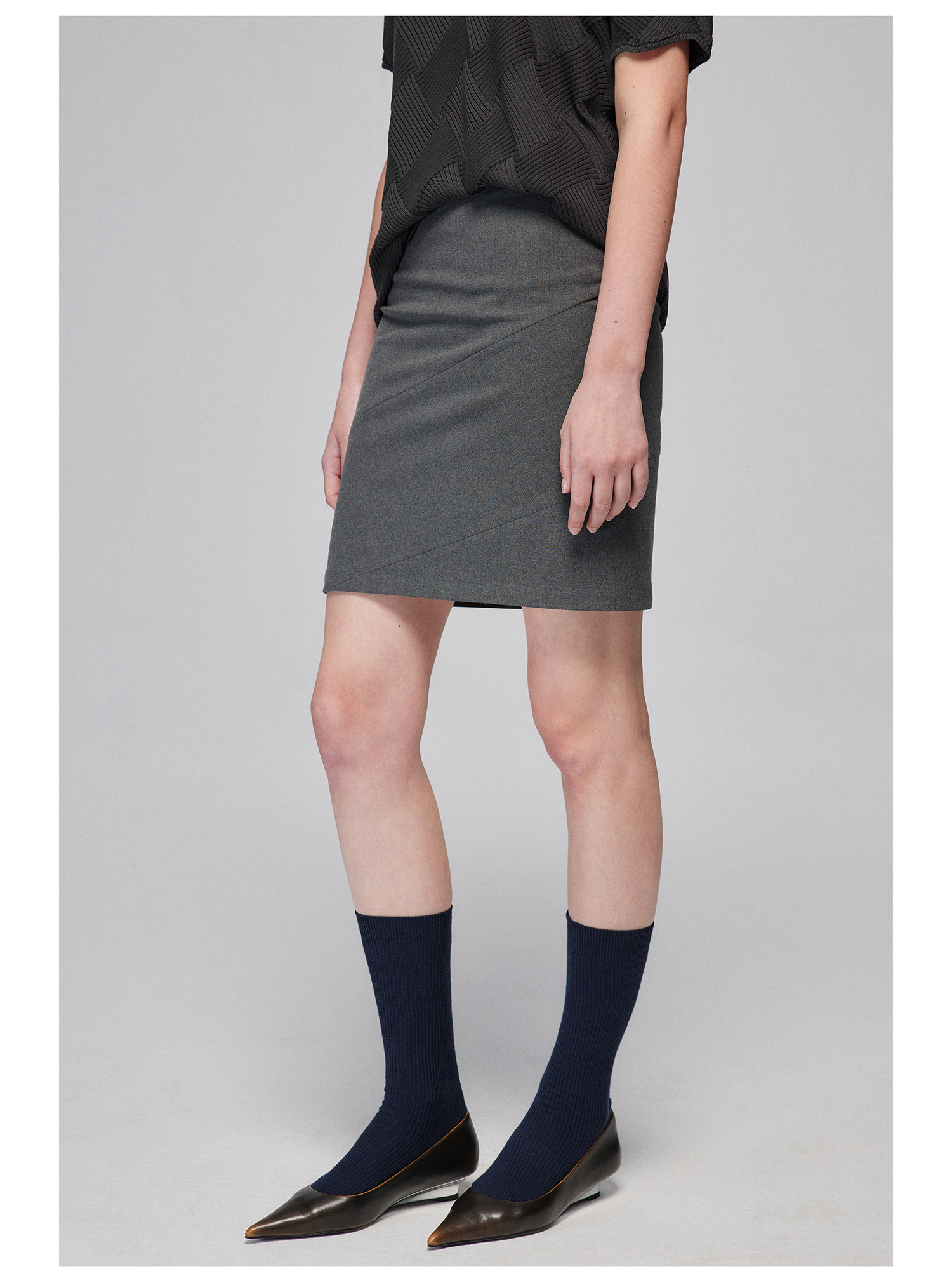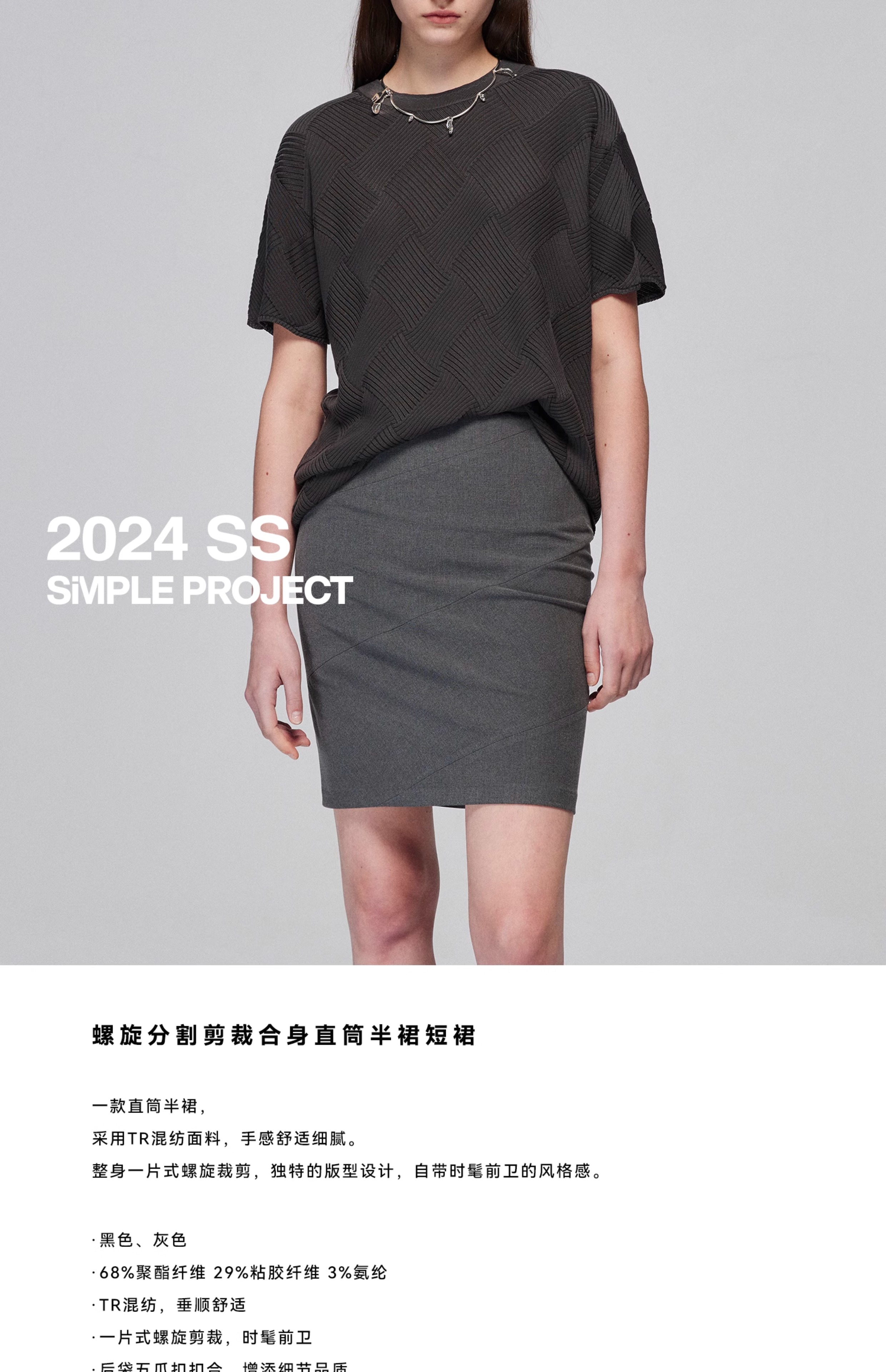 Simple Project/K2462/TR混纺螺旋分割剪裁合身直筒半裙