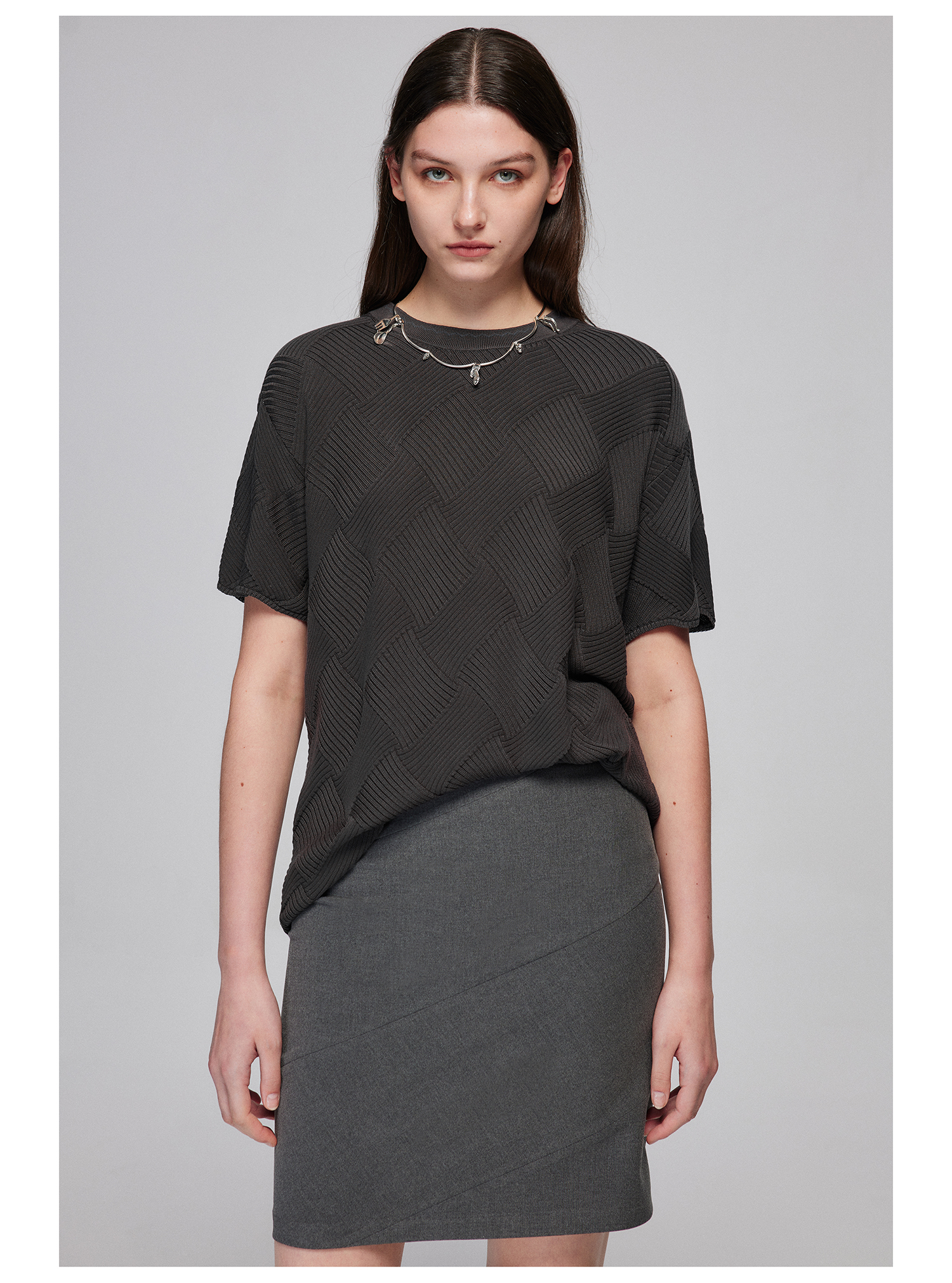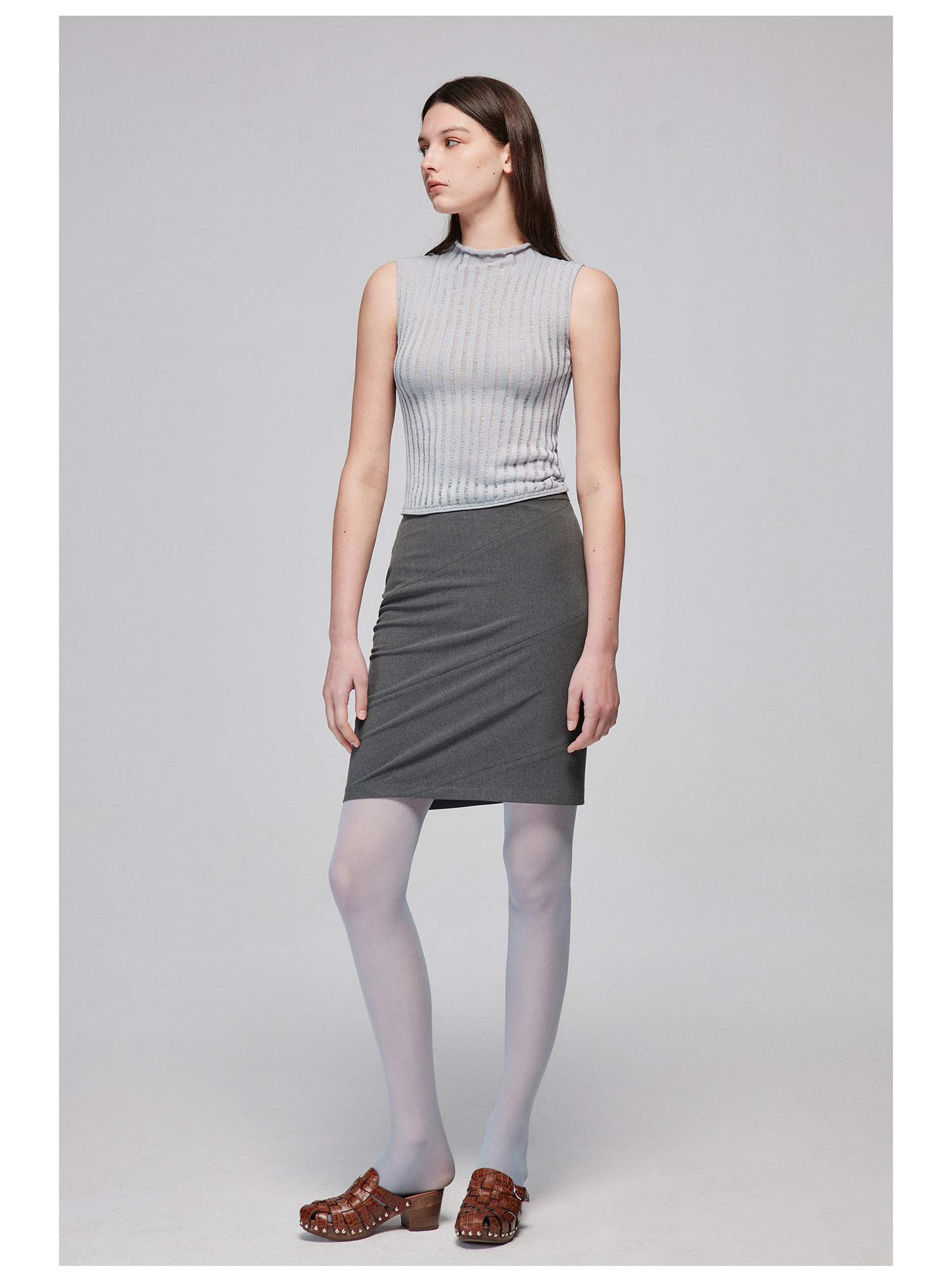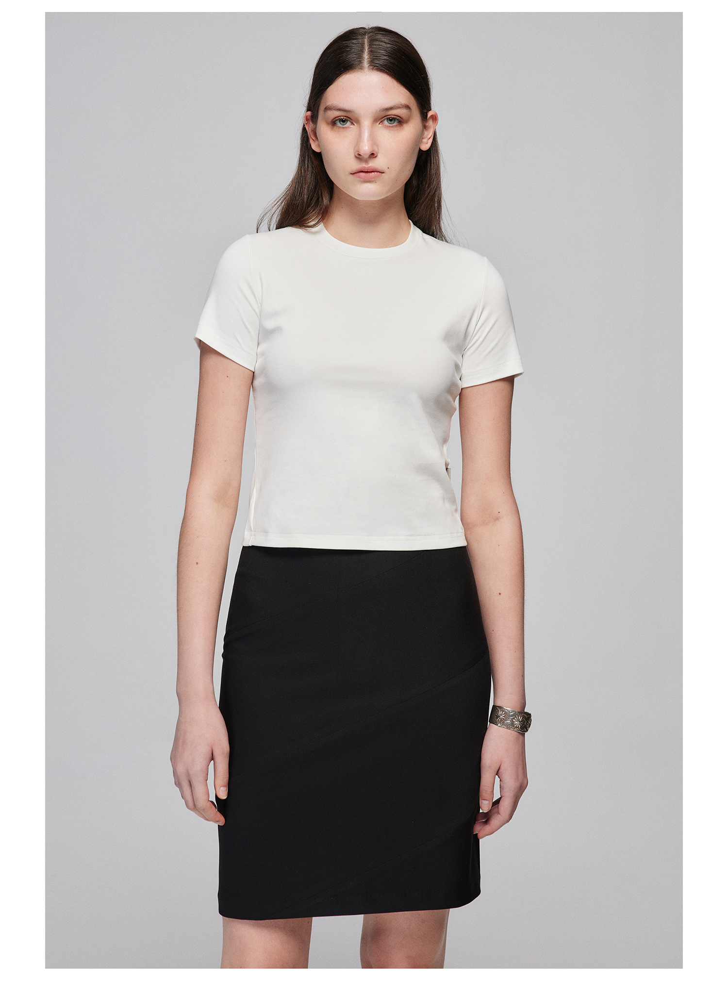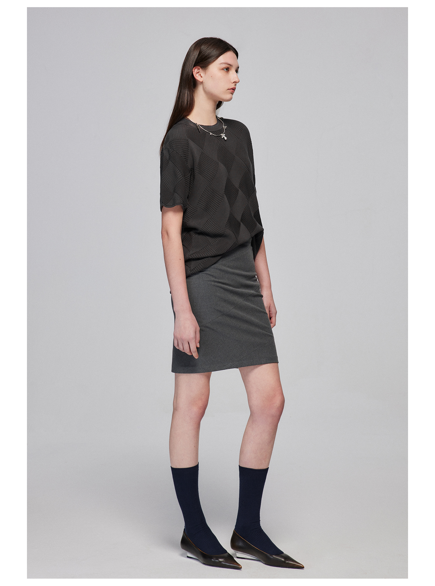 Simple Project/K2462/TR混纺螺旋分割剪裁合身直筒半裙