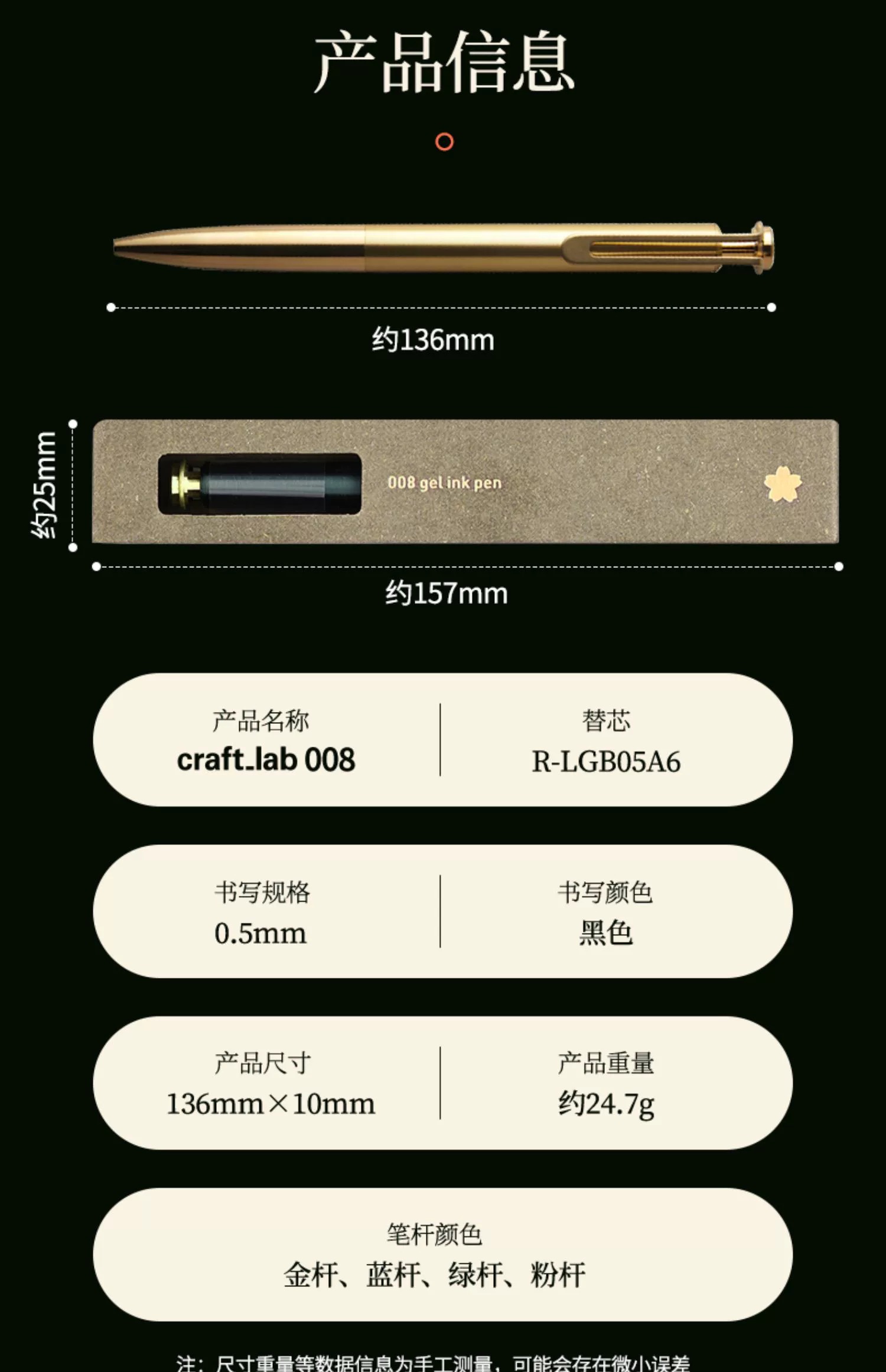 日本SKURA樱花craft_lab 008按压式出芯金属铜杆中性笔签字笔