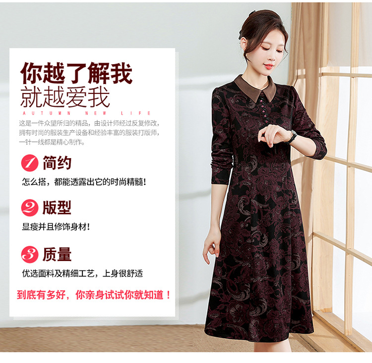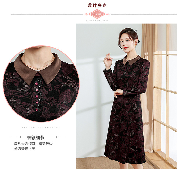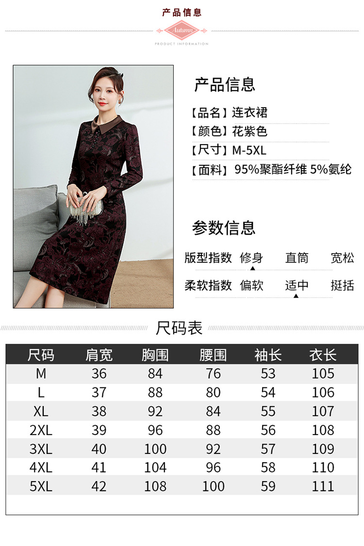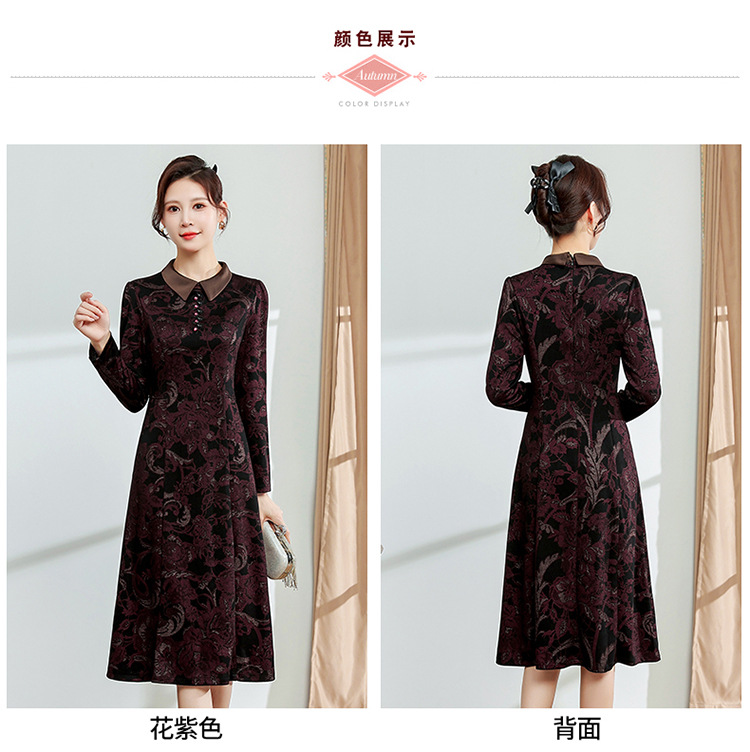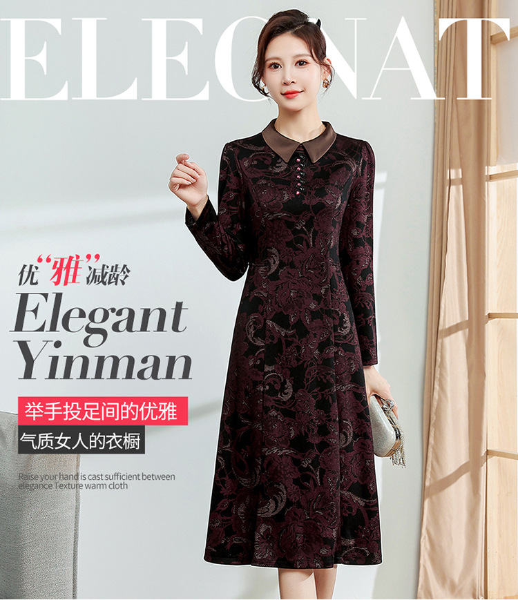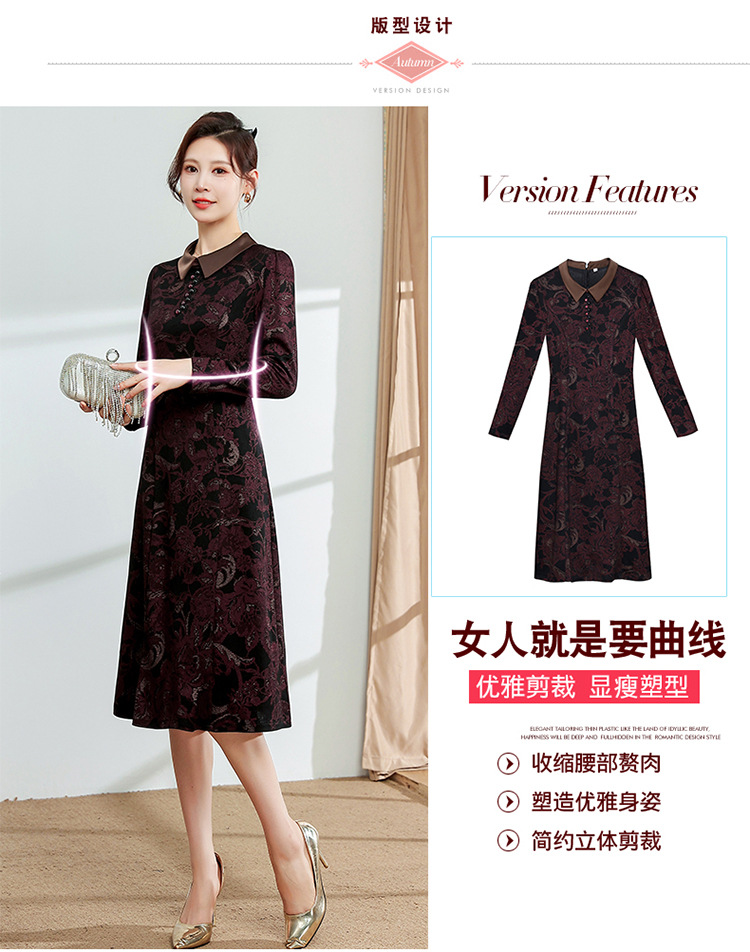 秋季新款,中长款A字裙时尚中老年妈妈装印花连衣裙QYM-YM-XGY239-Y