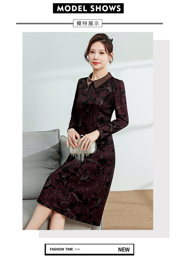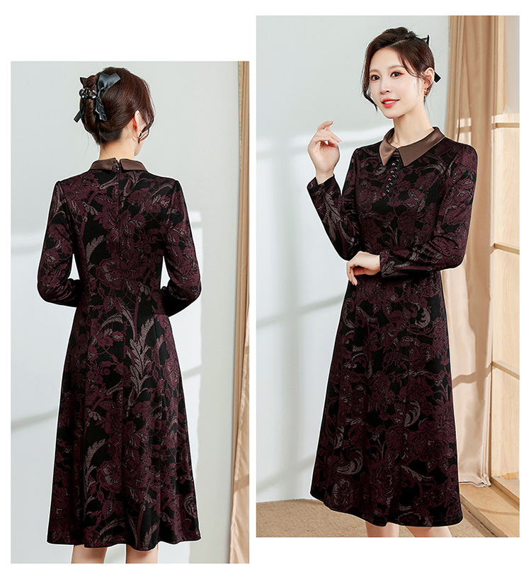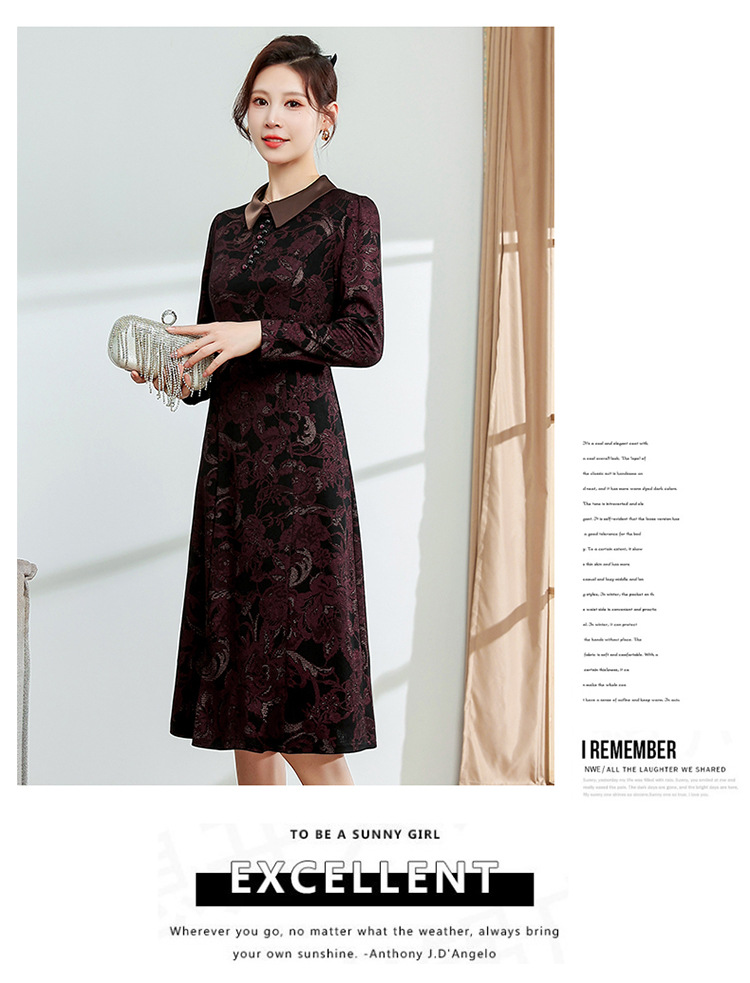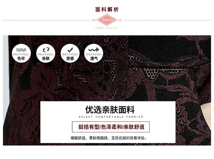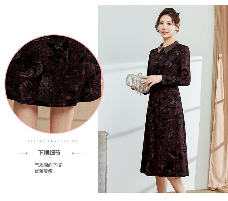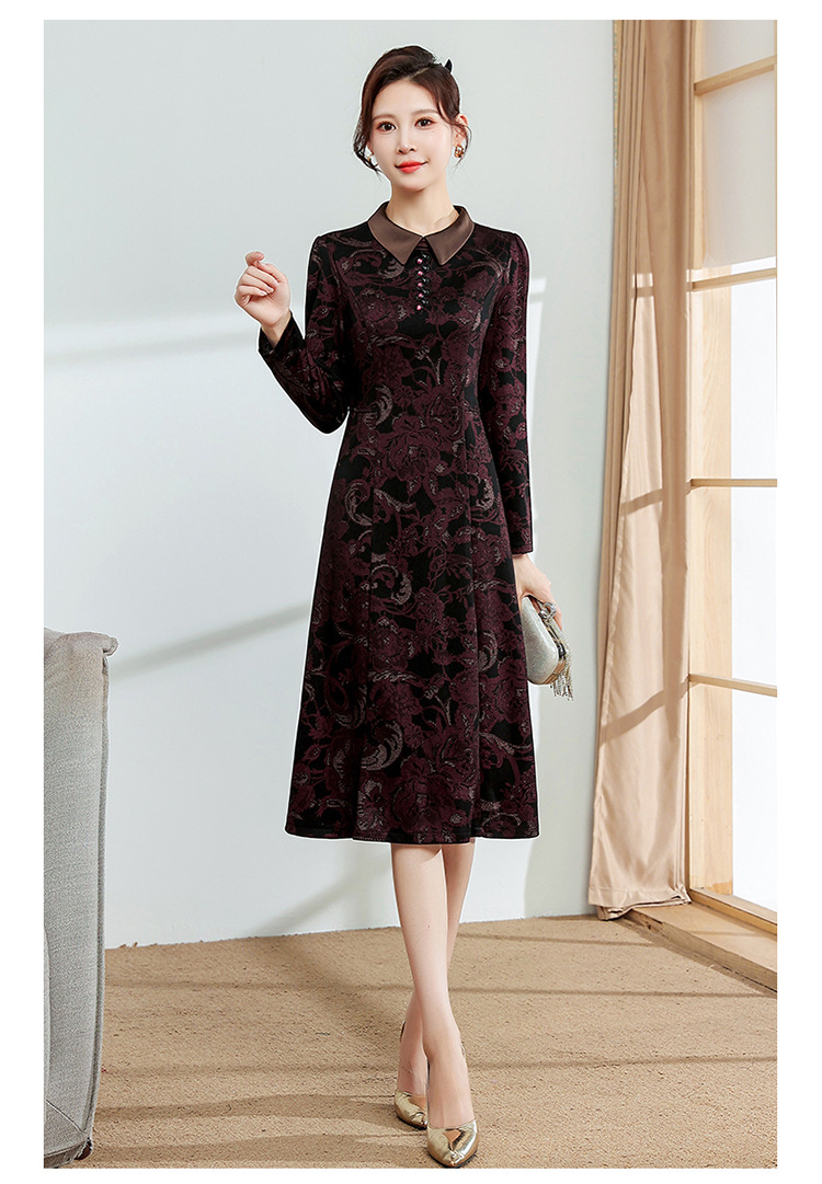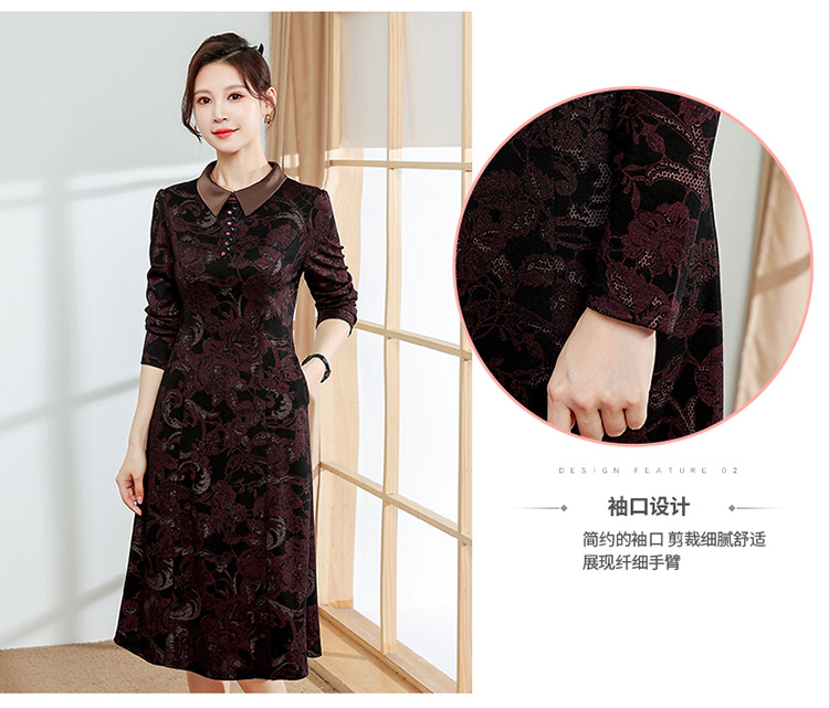 秋季新款,中长款A字裙时尚中老年妈妈装印花连衣裙QYM-YM-XGY239-Y