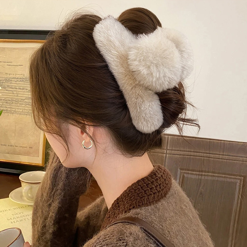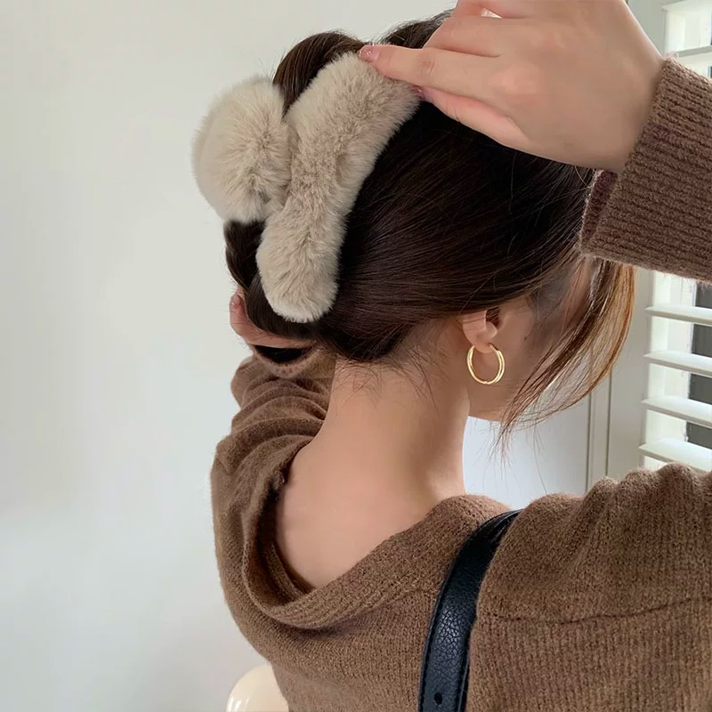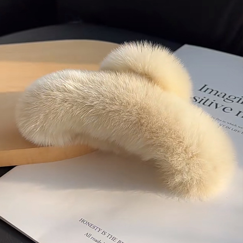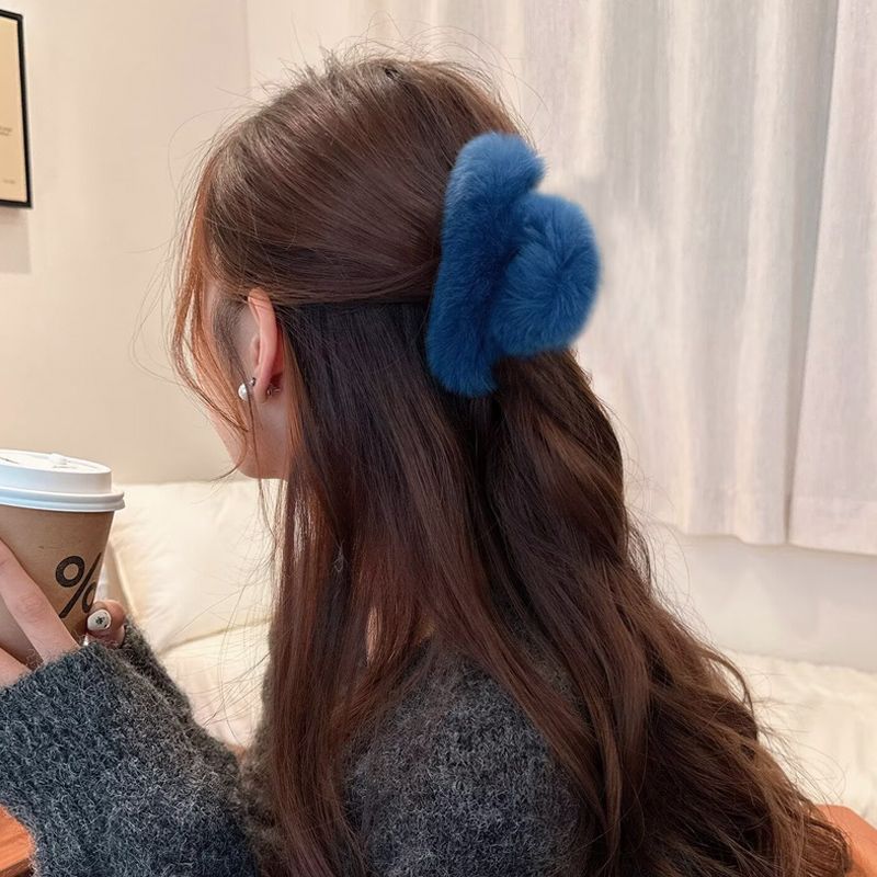 款式2:可爱毛绒真獭兔毛发夹后脑勺气质夹子