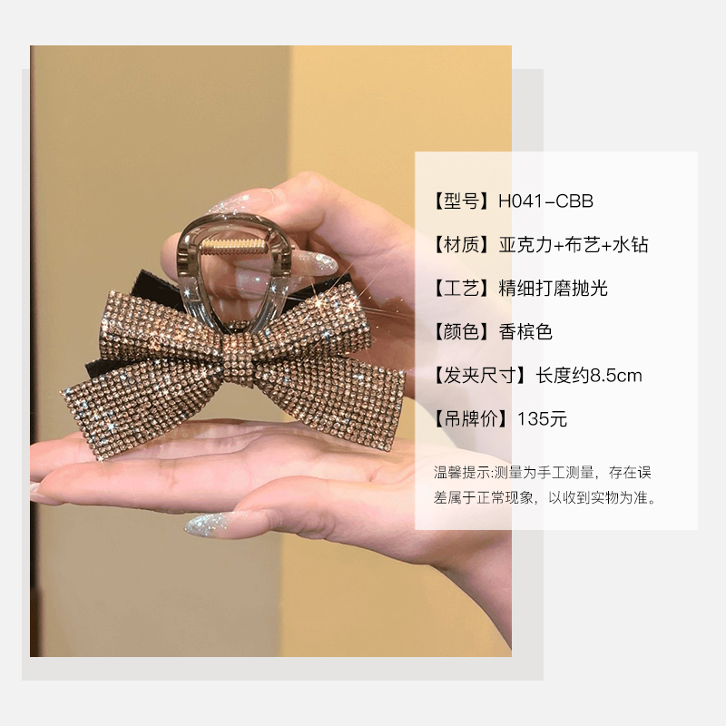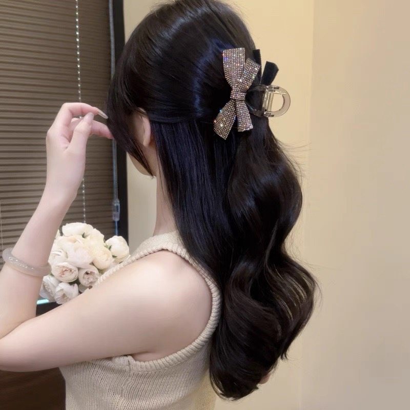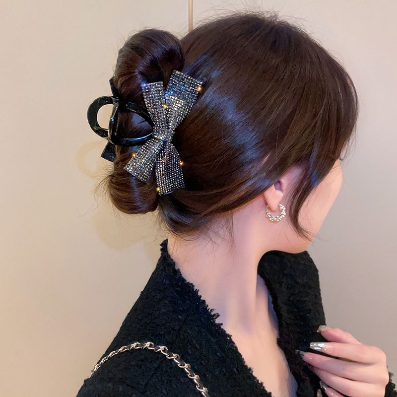 款式3:高级感水钻蝴蝶结发夹女后脑勺盘发抓夹气质鲨鱼夹子