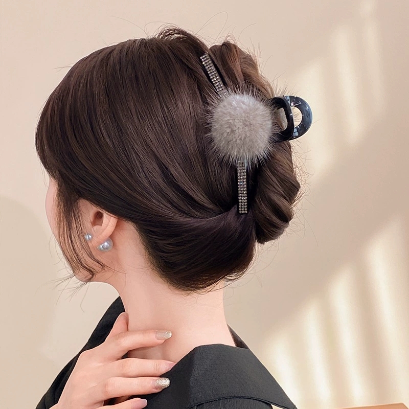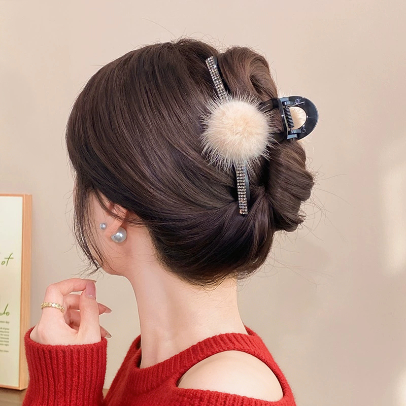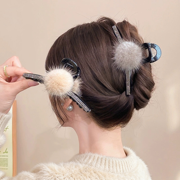 款式1:秋冬新款水貂毛球鲨鱼夹