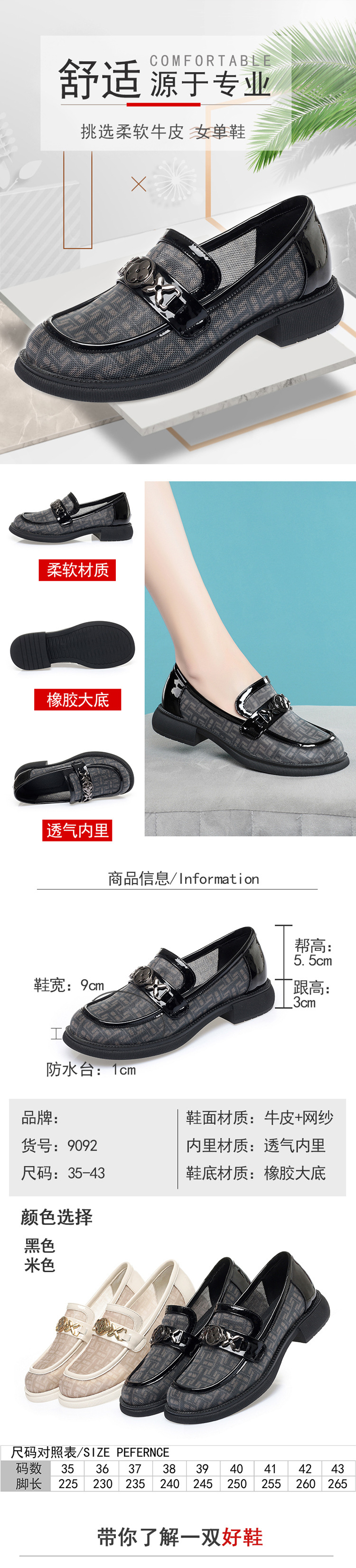 22新款女单皮鞋乐福鞋软底软面驾车郊游鞋大码打孔透气 KQ-AT9092