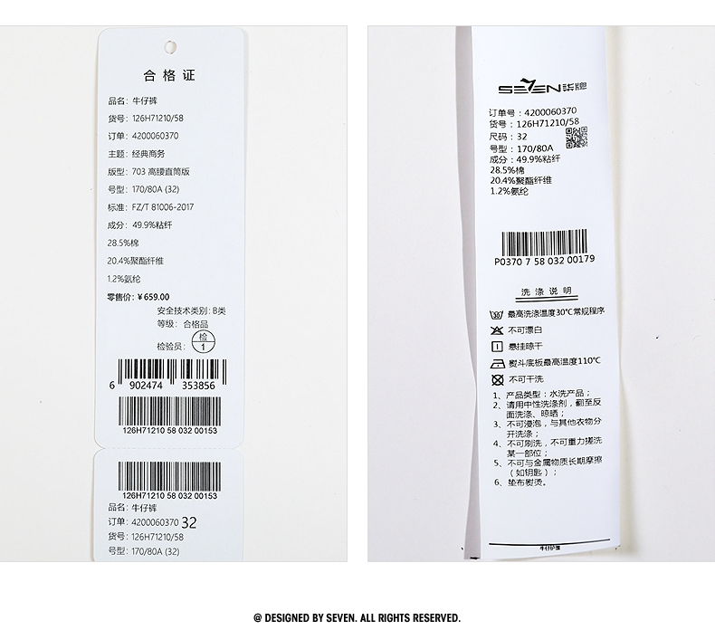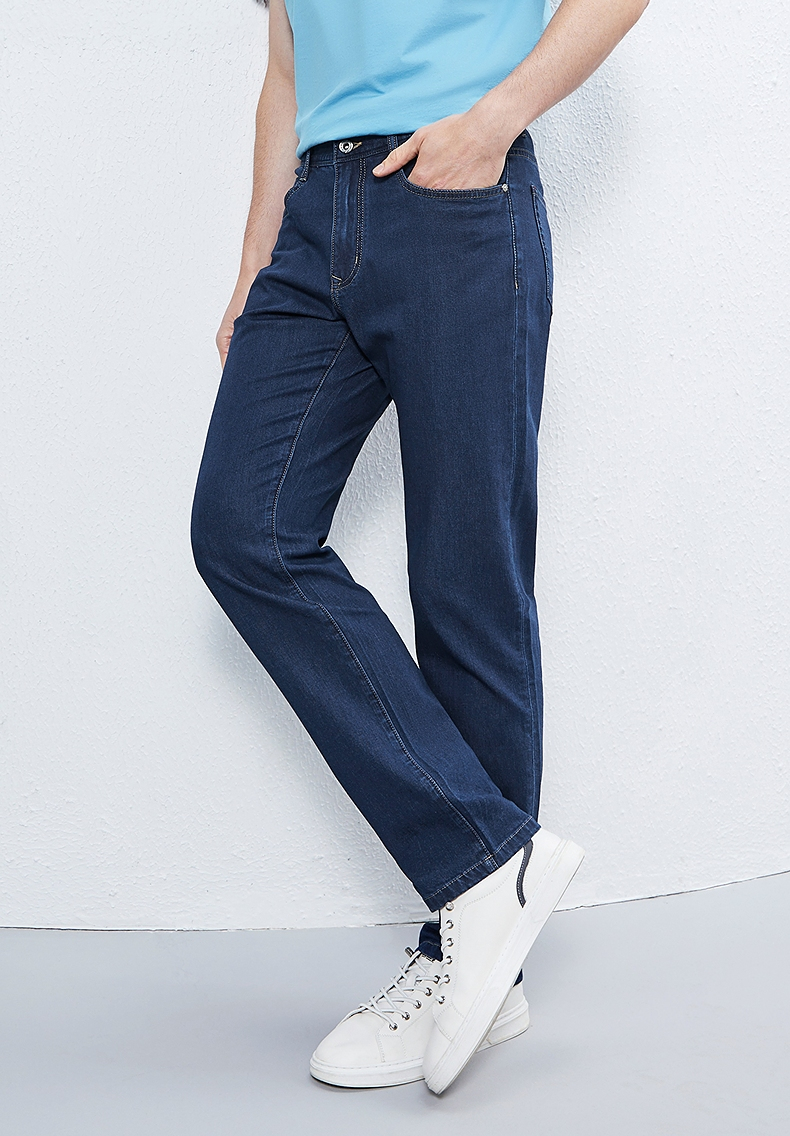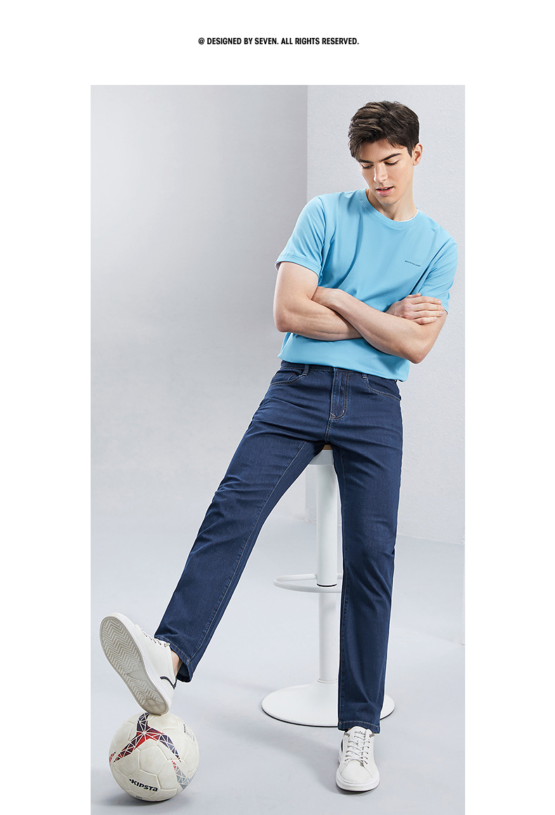 【瞬间凉感】柒牌裤子牛仔裤男2024夏季新款含薄荷纤维直筒长裤子 126H71210