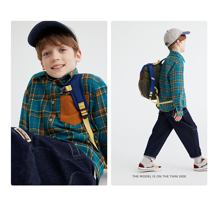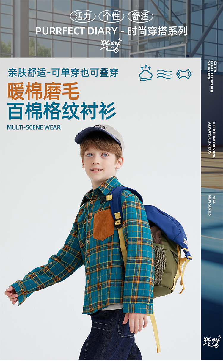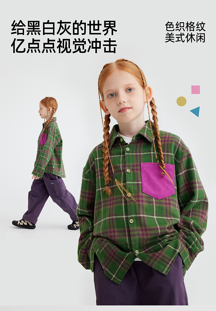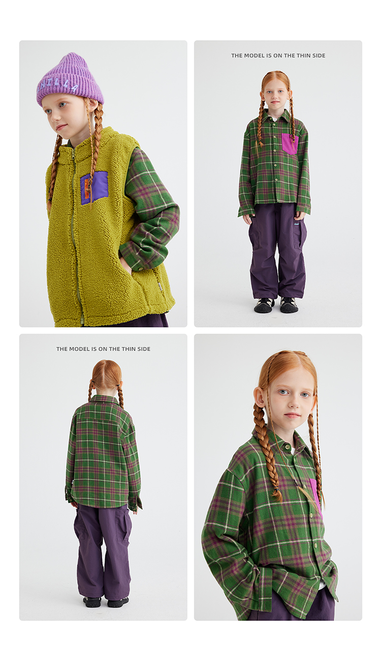【咕噜日记】【磨毛时尚撞色休闲衬衫】儿童美式休闲格纹衬衫 PQCS2402