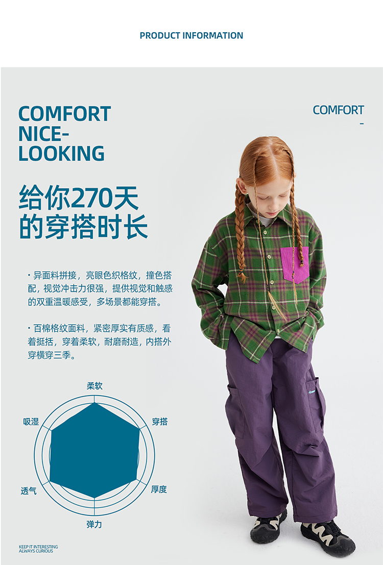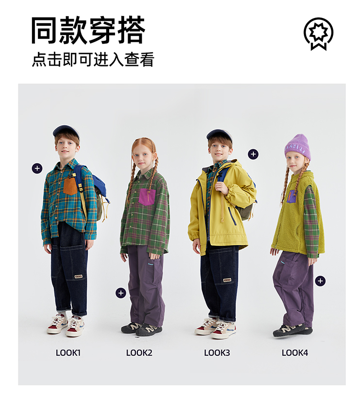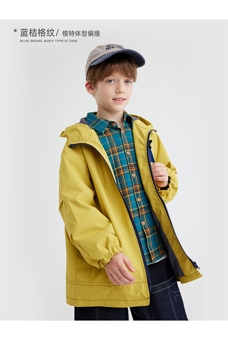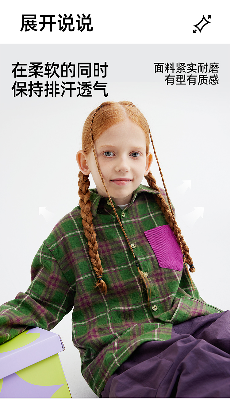 【咕噜日记】【磨毛时尚撞色休闲衬衫】儿童美式休闲格纹衬衫 PQCS2402