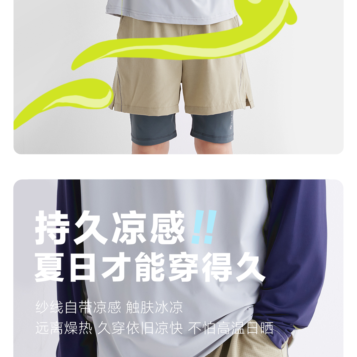【凉风裤】【咕噜日记】童装儿童运动短裤男童凉感裤子中大童假两件裤PXK2506