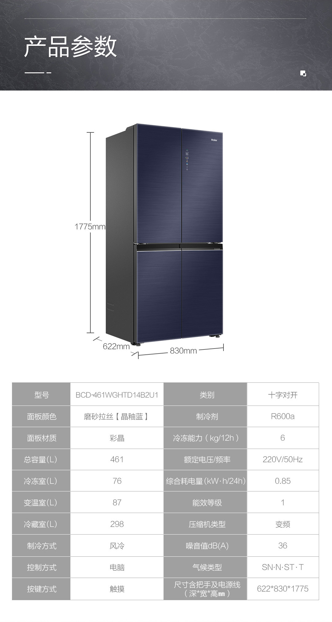 海尔(Haier)冰箱 BCD-461WGHTD14B2U1