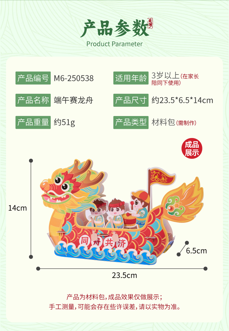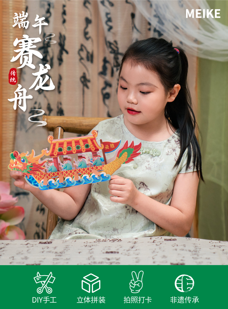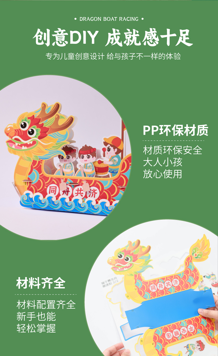 端午节礼物手工diy赛龙舟儿童制作材料包幼儿园非遗龙头船玩具