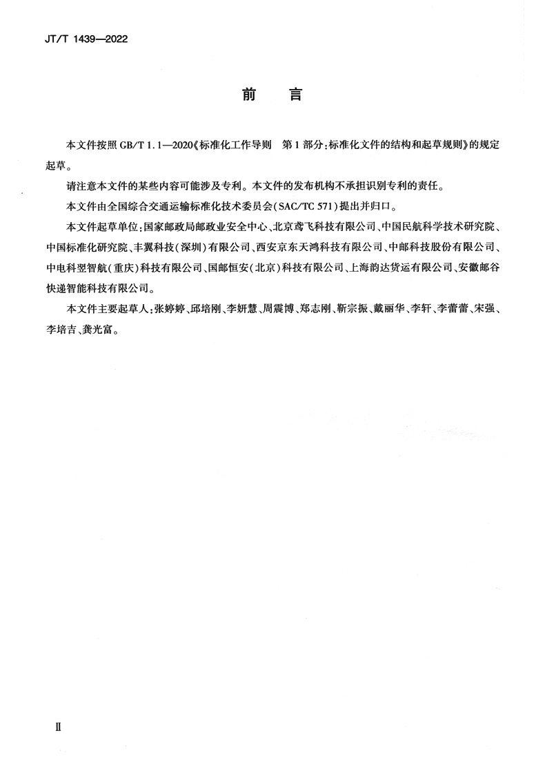 书名:邮政快递无人机监管信息交互规范(JT/T 1439—2022)
