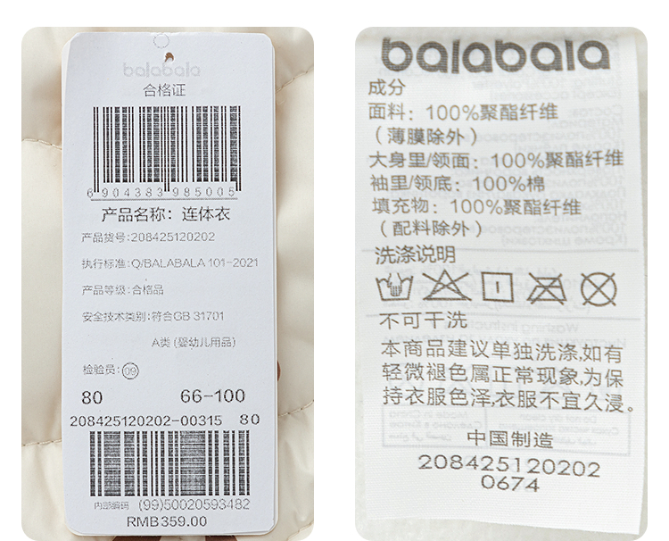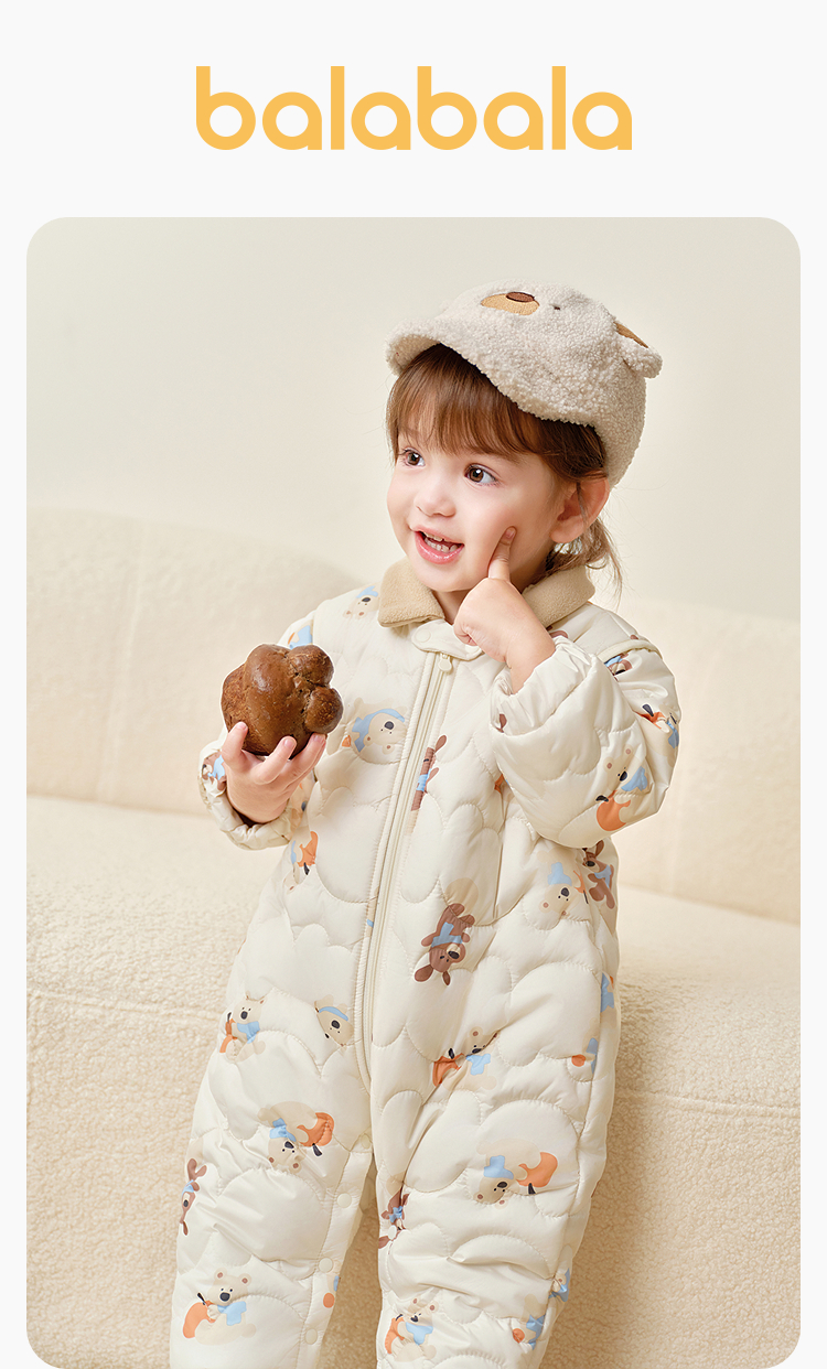 巴拉巴拉balaOne宝宝连体衣婴儿衣服2025新款冬装加绒哈衣爬服萌