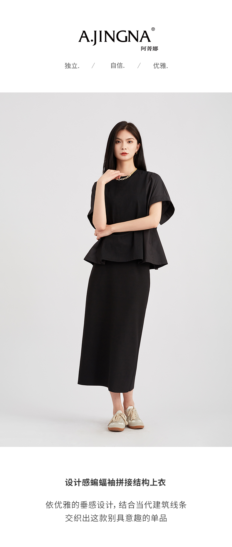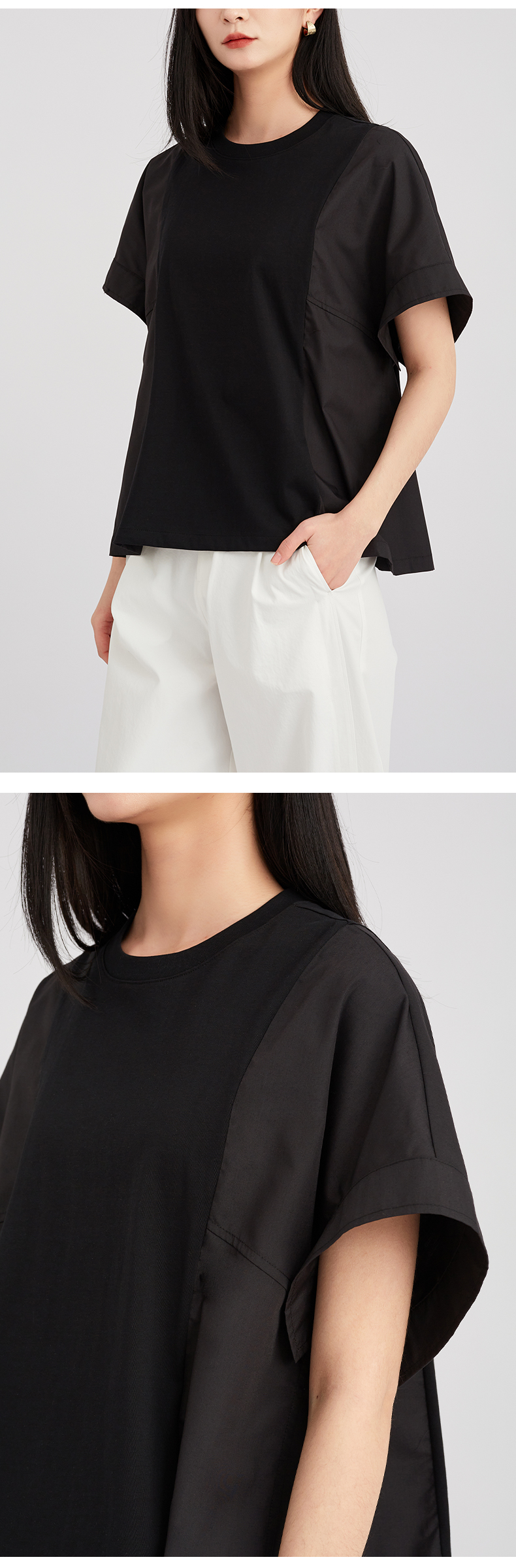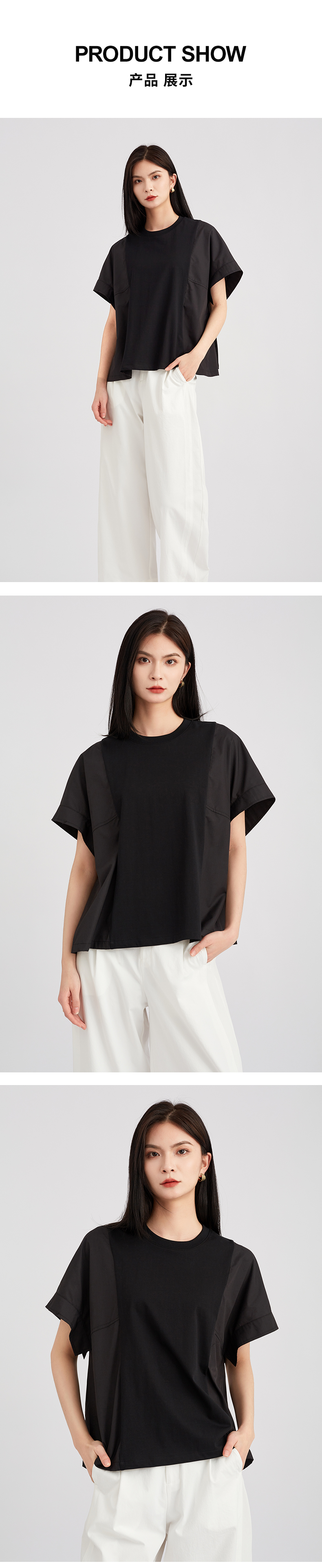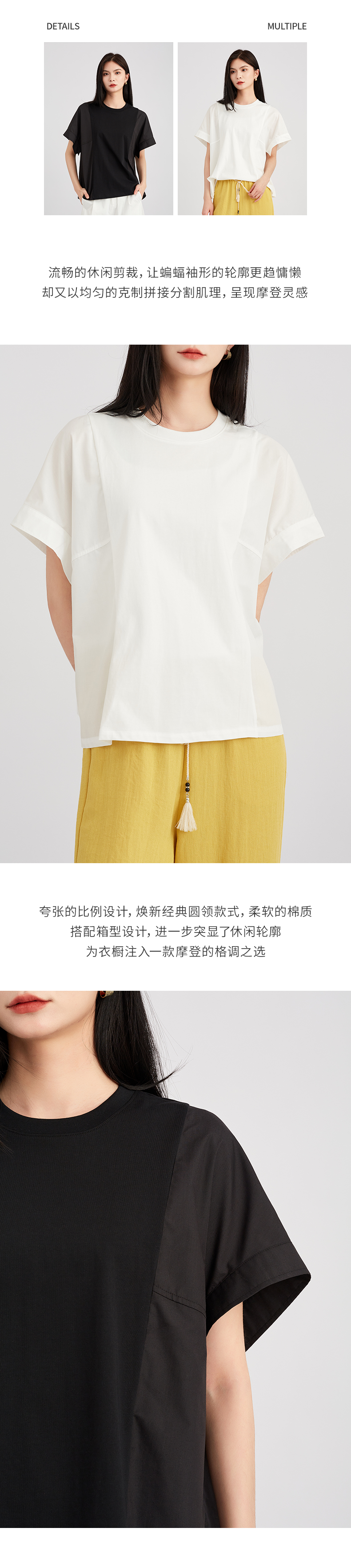 【意趣单品】阿菁娜设计感蝙蝠袖拼接结构上衣F30C302028
