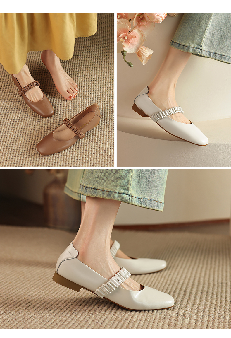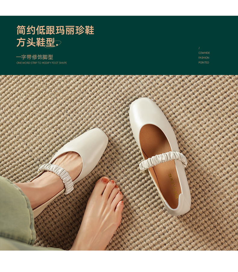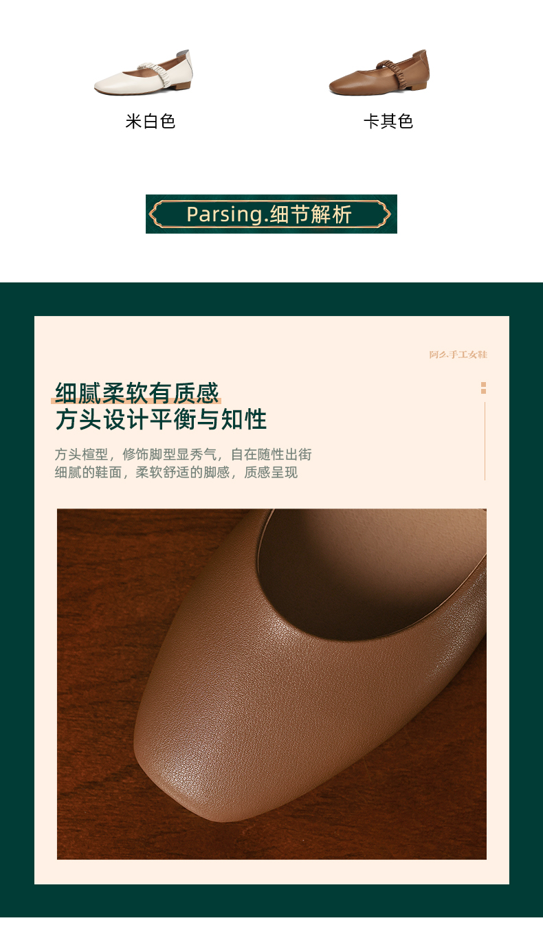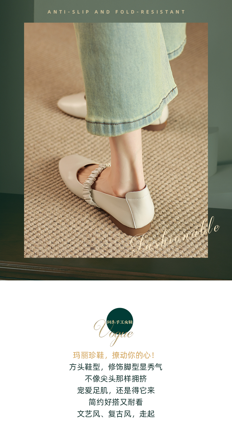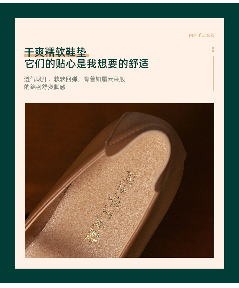 阿么手工女鞋一字带软底软面浅口单鞋女低跟1.8CM温柔淑女风百搭