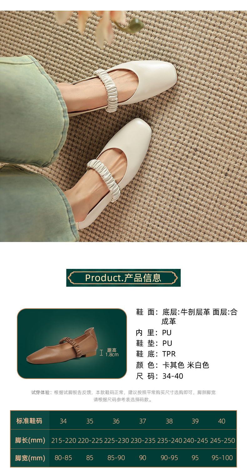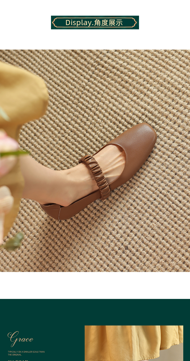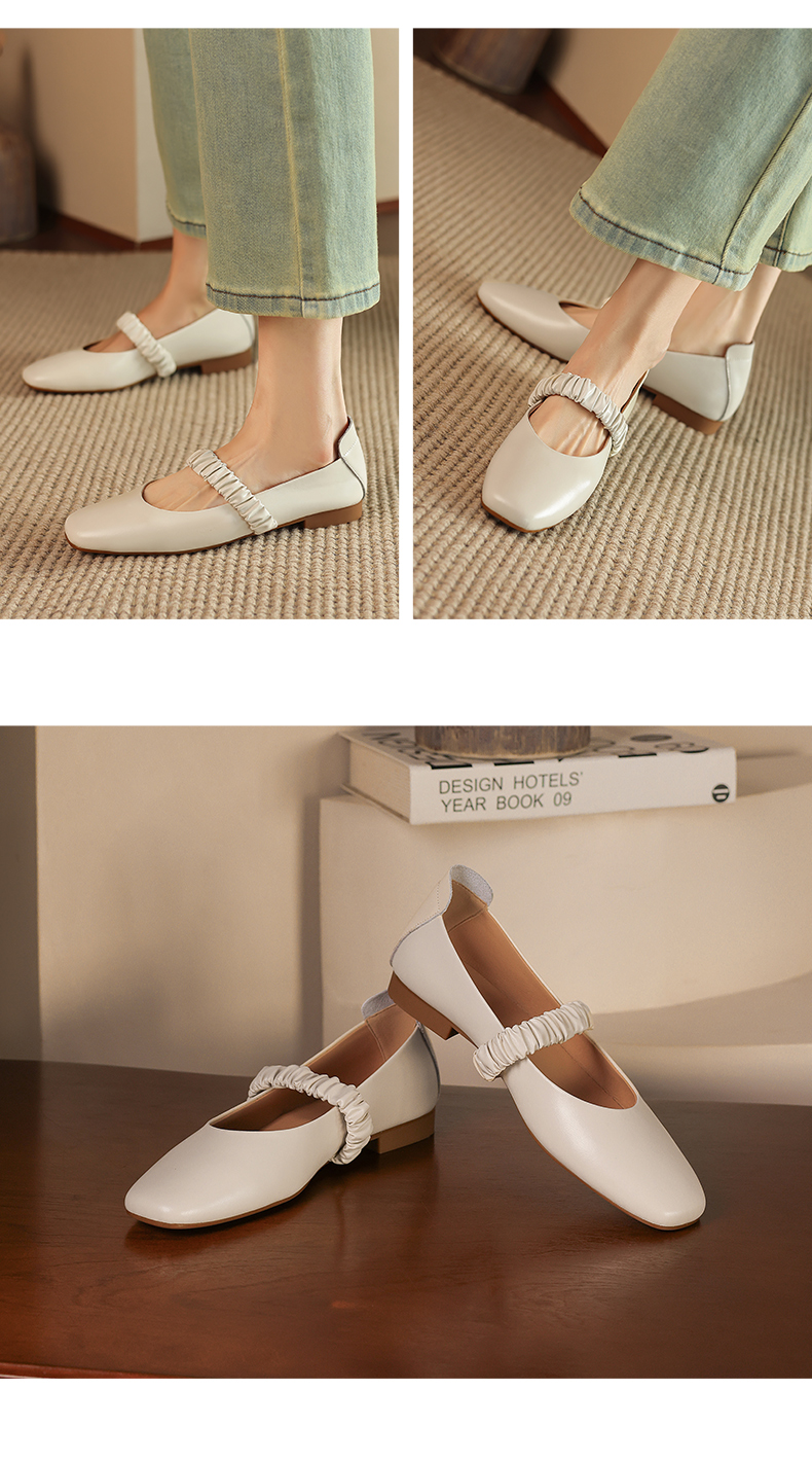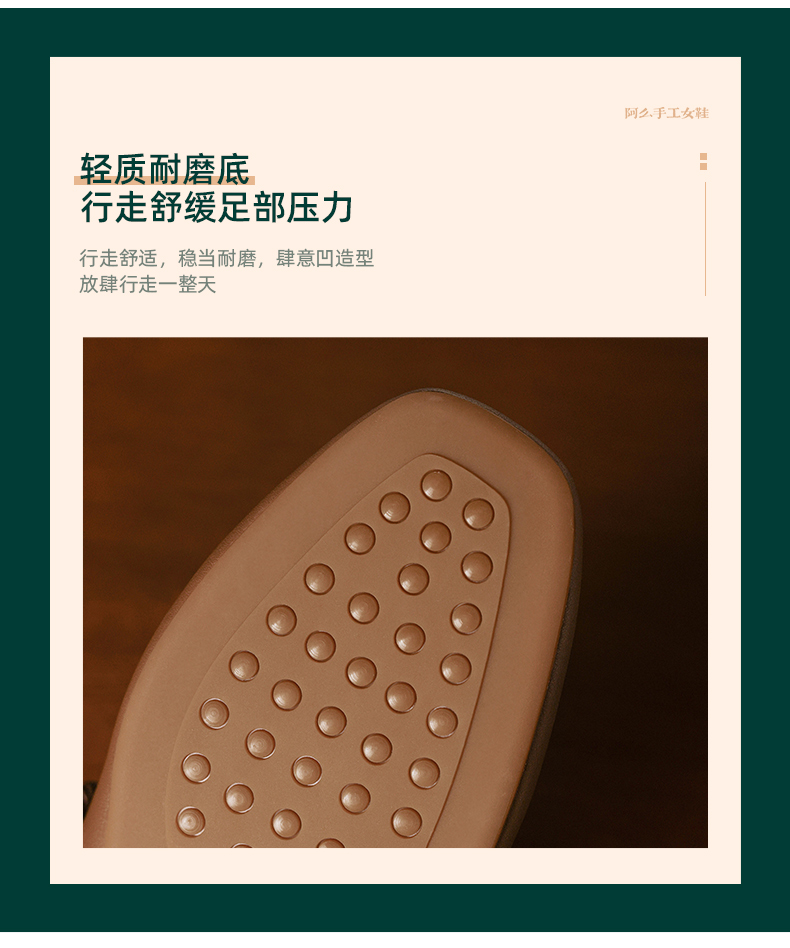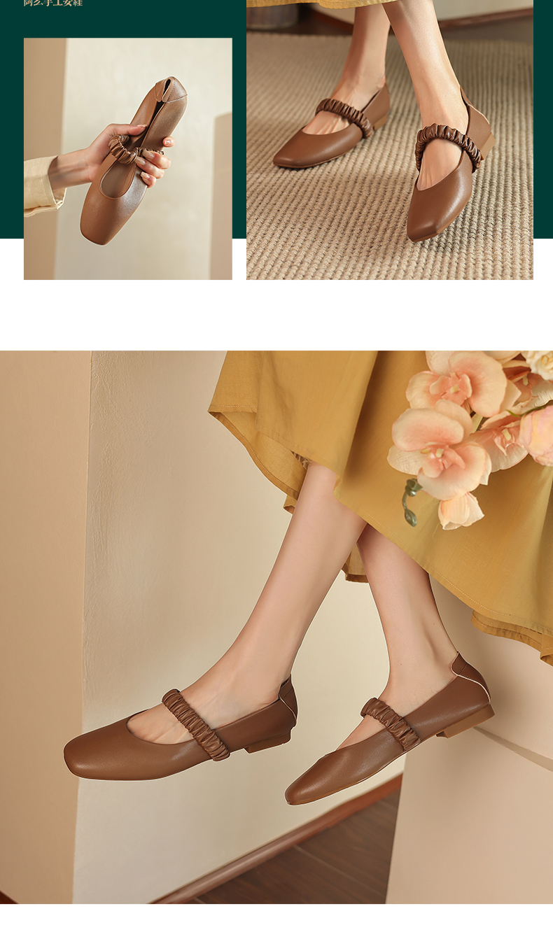 阿么手工女鞋一字带软底软面浅口单鞋女低跟1.8CM温柔淑女风百搭