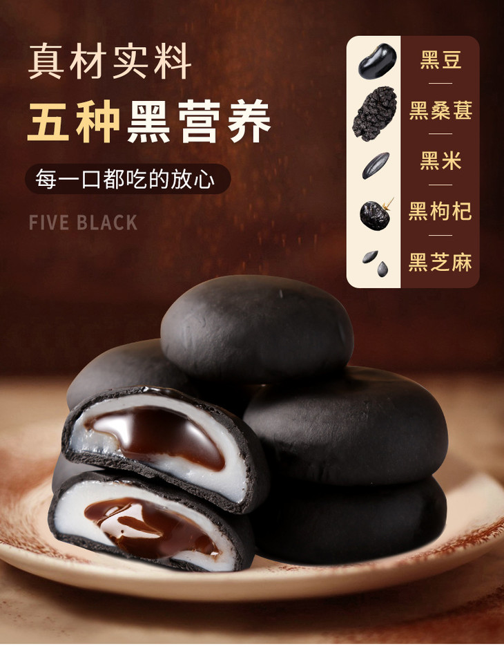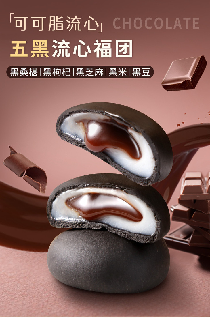 【营养好吃会流心!网红爆款五黑巧克力流心福团】五种黑营养口感软糯QQ弹弹麻薯夹层 爆浆雪媚娘不单独添加蔗糖饱腹早餐糕点小零食健康好吃